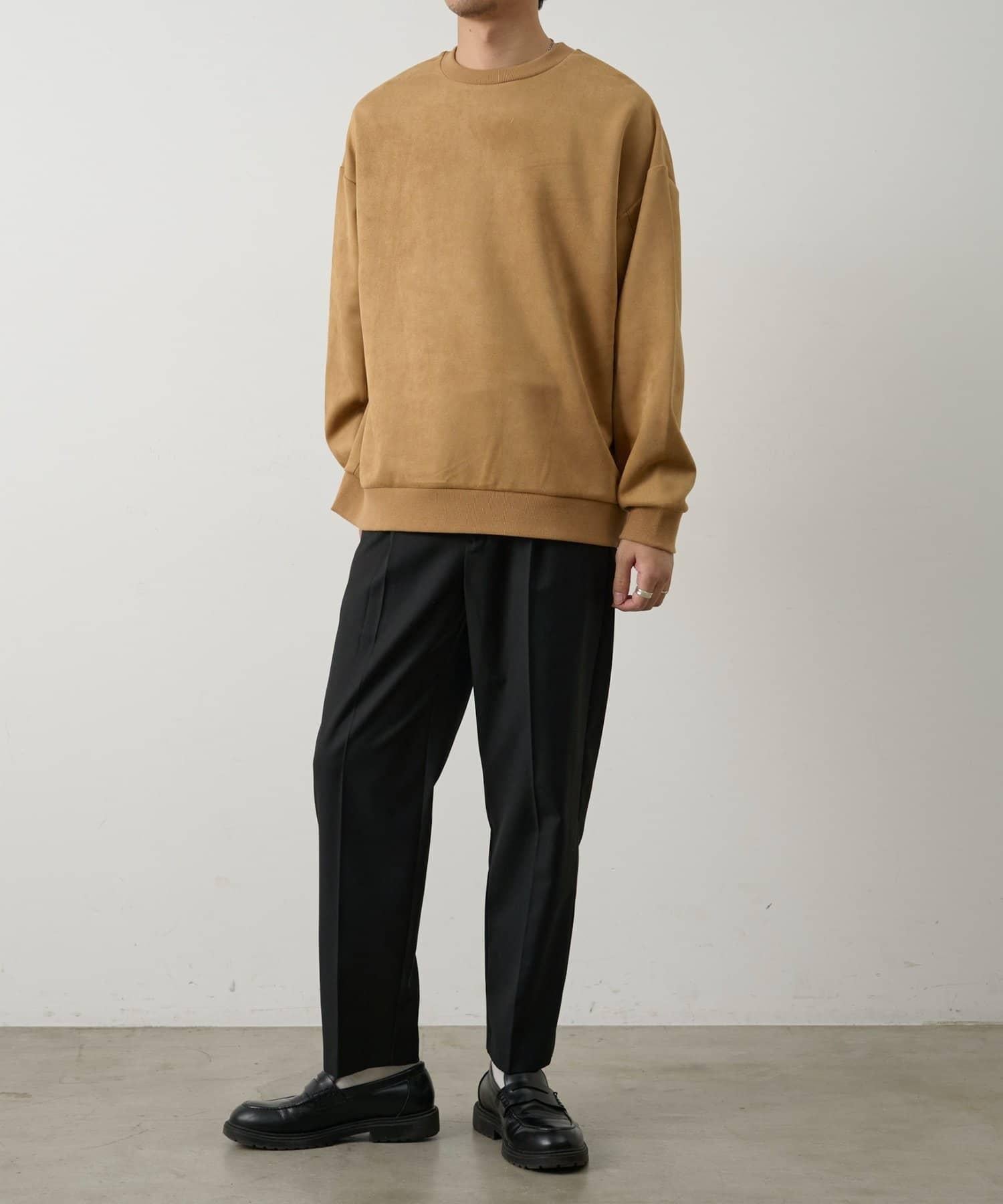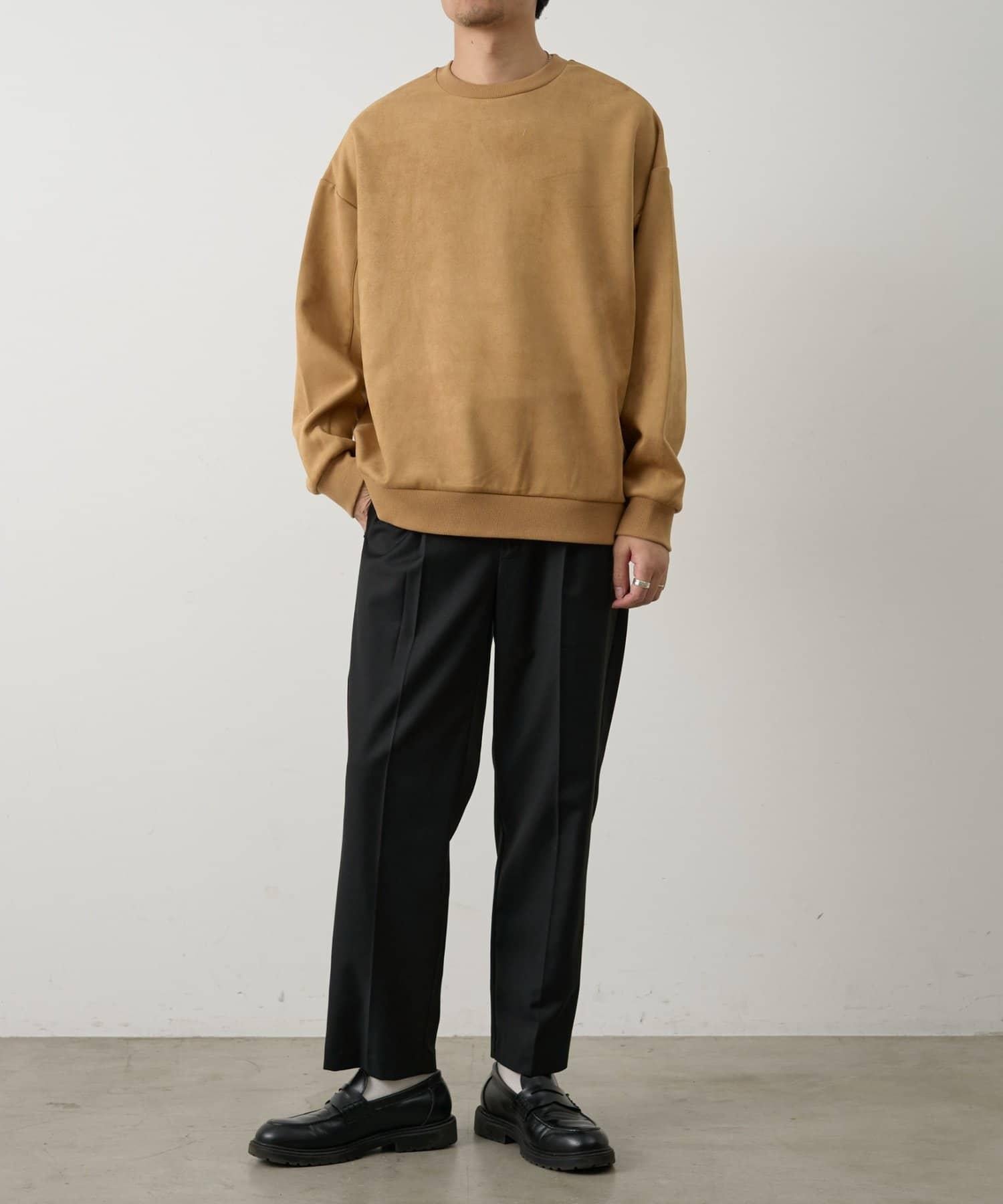合成麂皮絨套頭衫可搭配多種下裝。