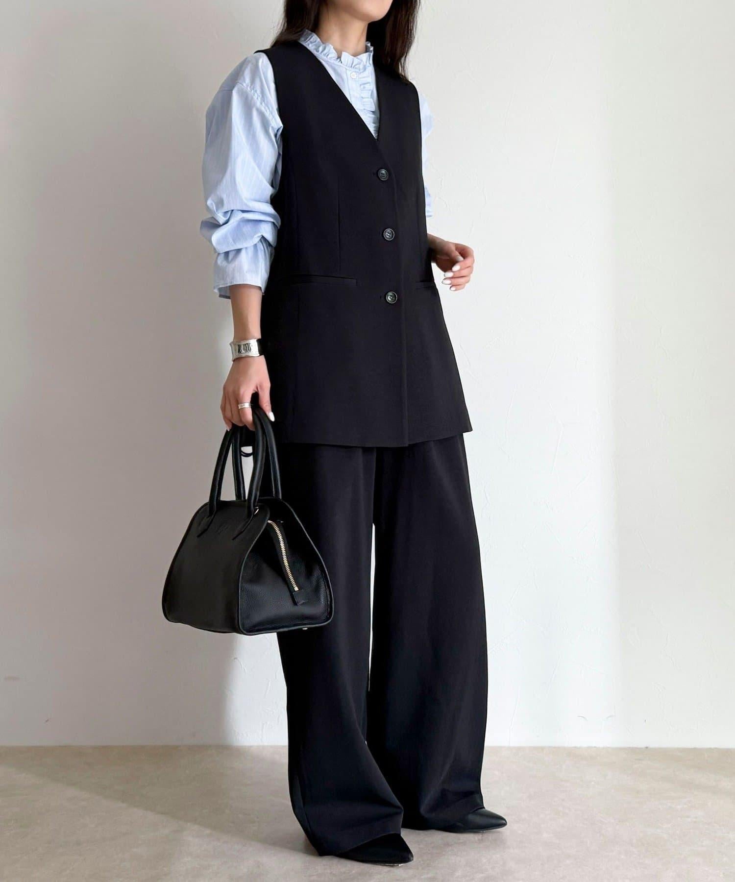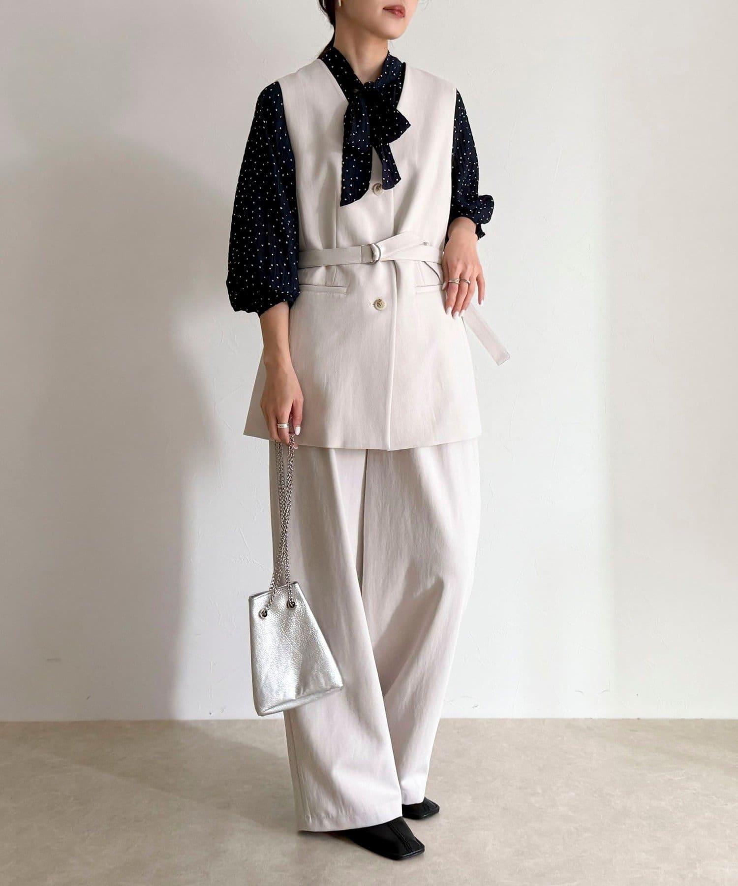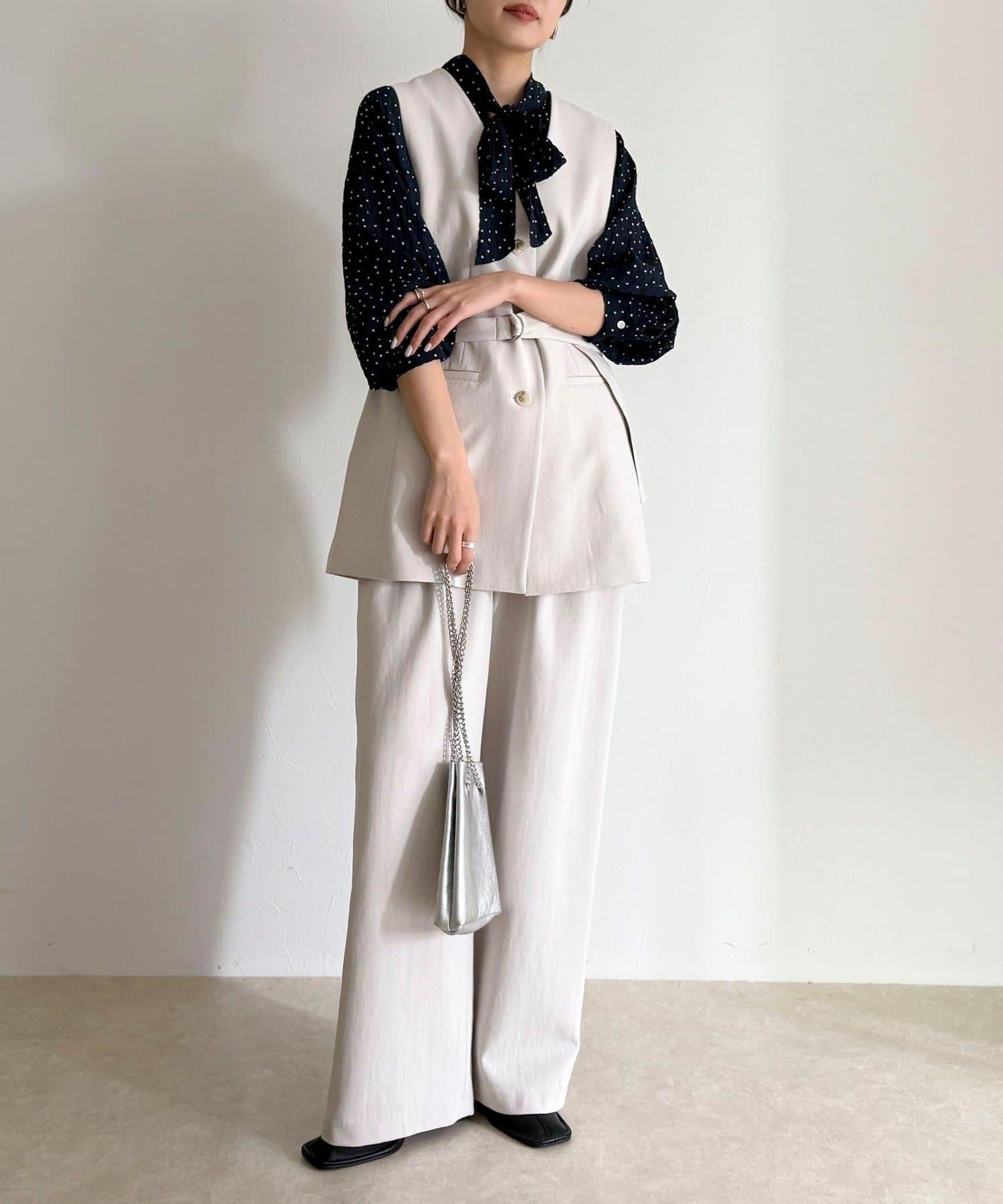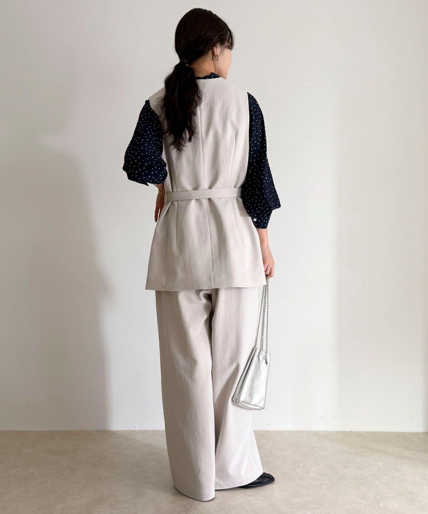 6-0021-1-29-004] 粉質斜紋布半寬鬆長褲