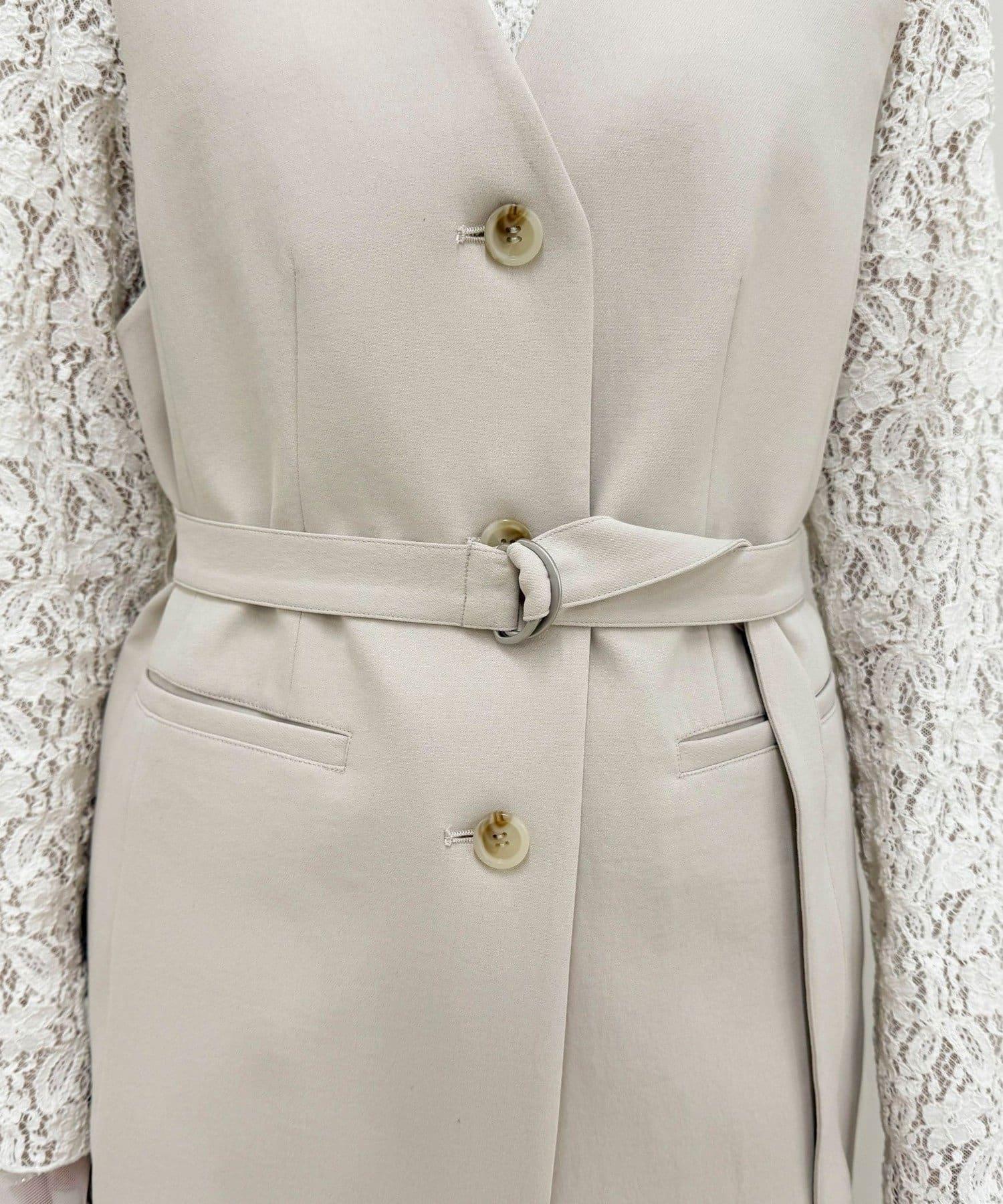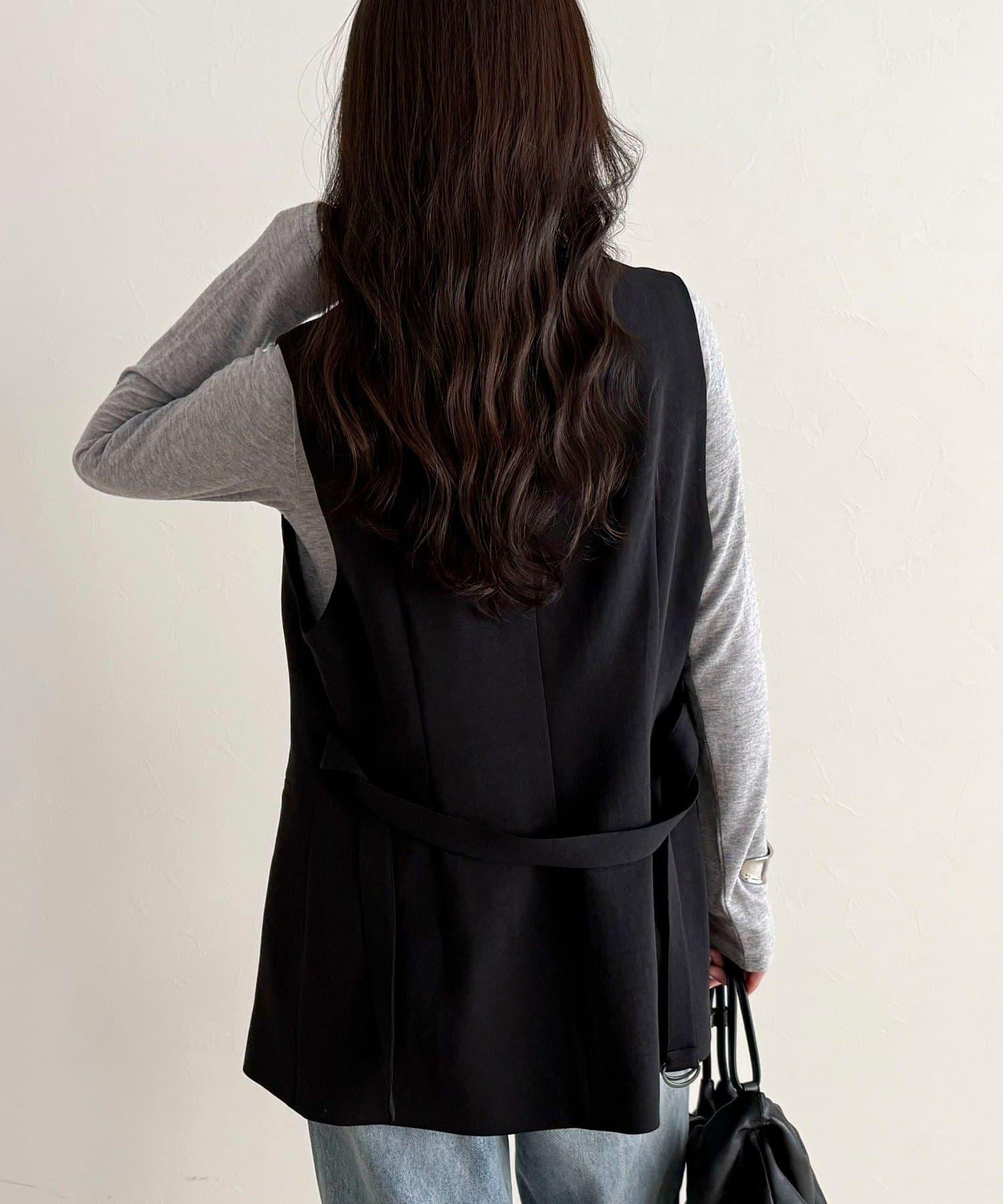 可成套搭配 柔滑斜紋 帶腰帶 馬甲