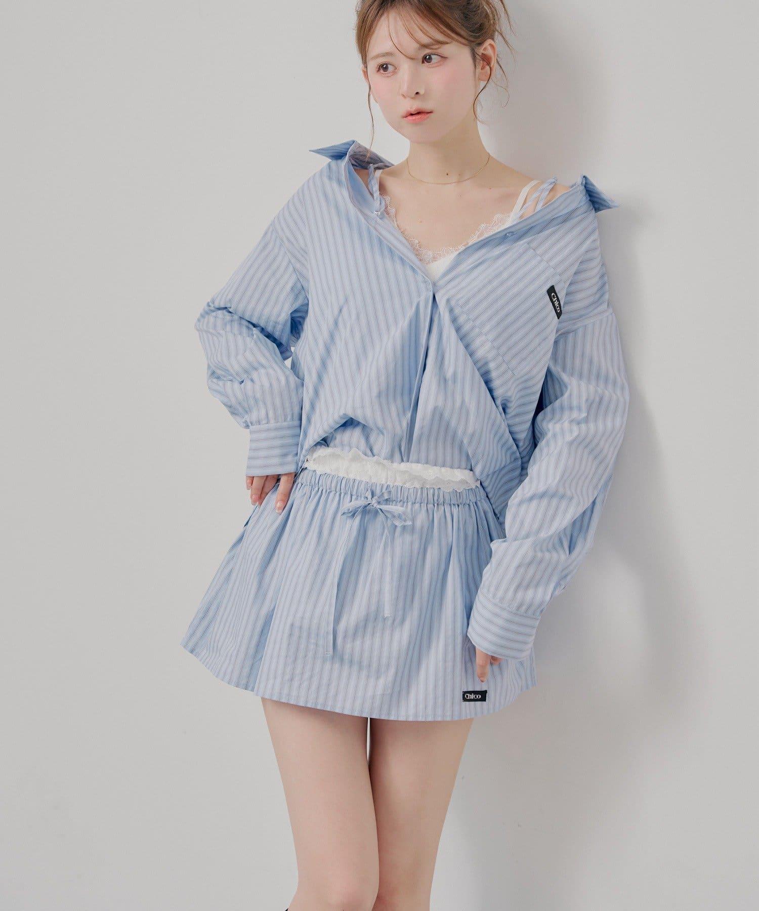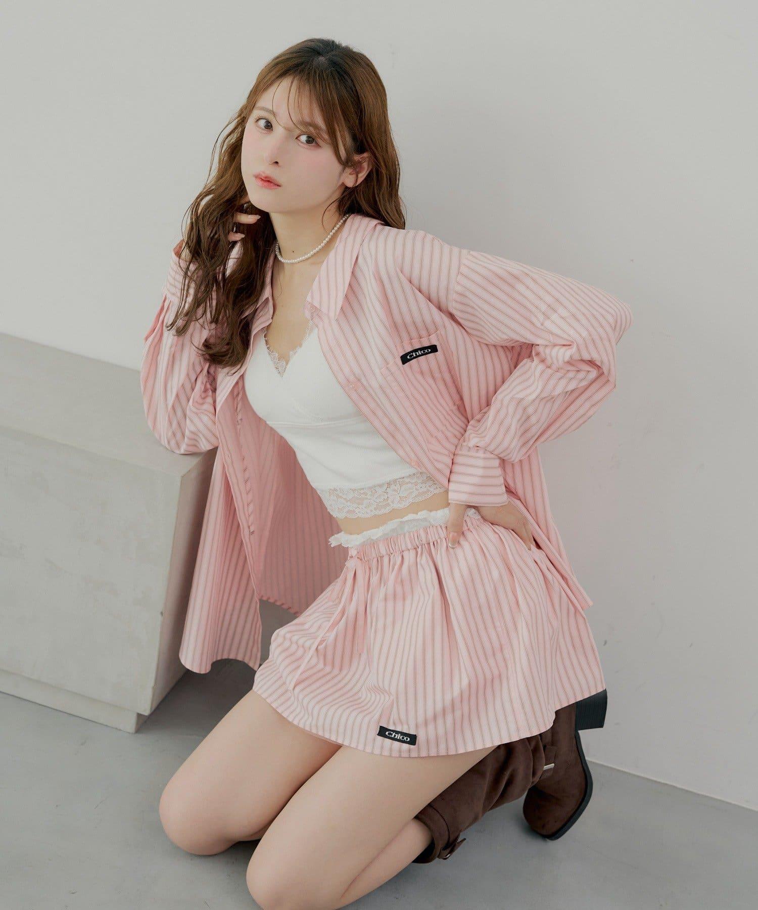 搭配同材質的雙向寬鬆襯衫,打造可愛造型。
