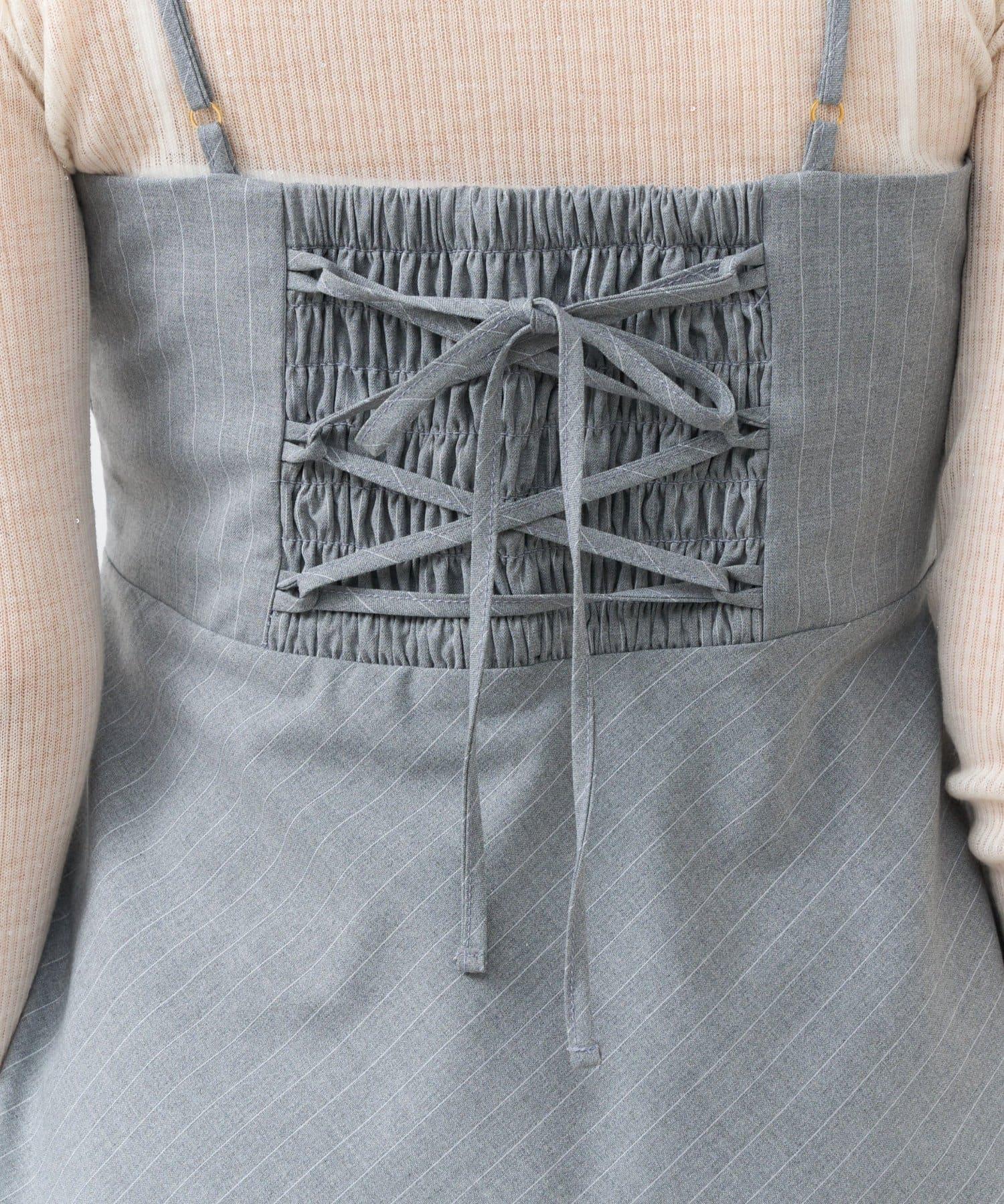 【可成套穿搭・顯瘦搭配】條紋後繫帶吊帶