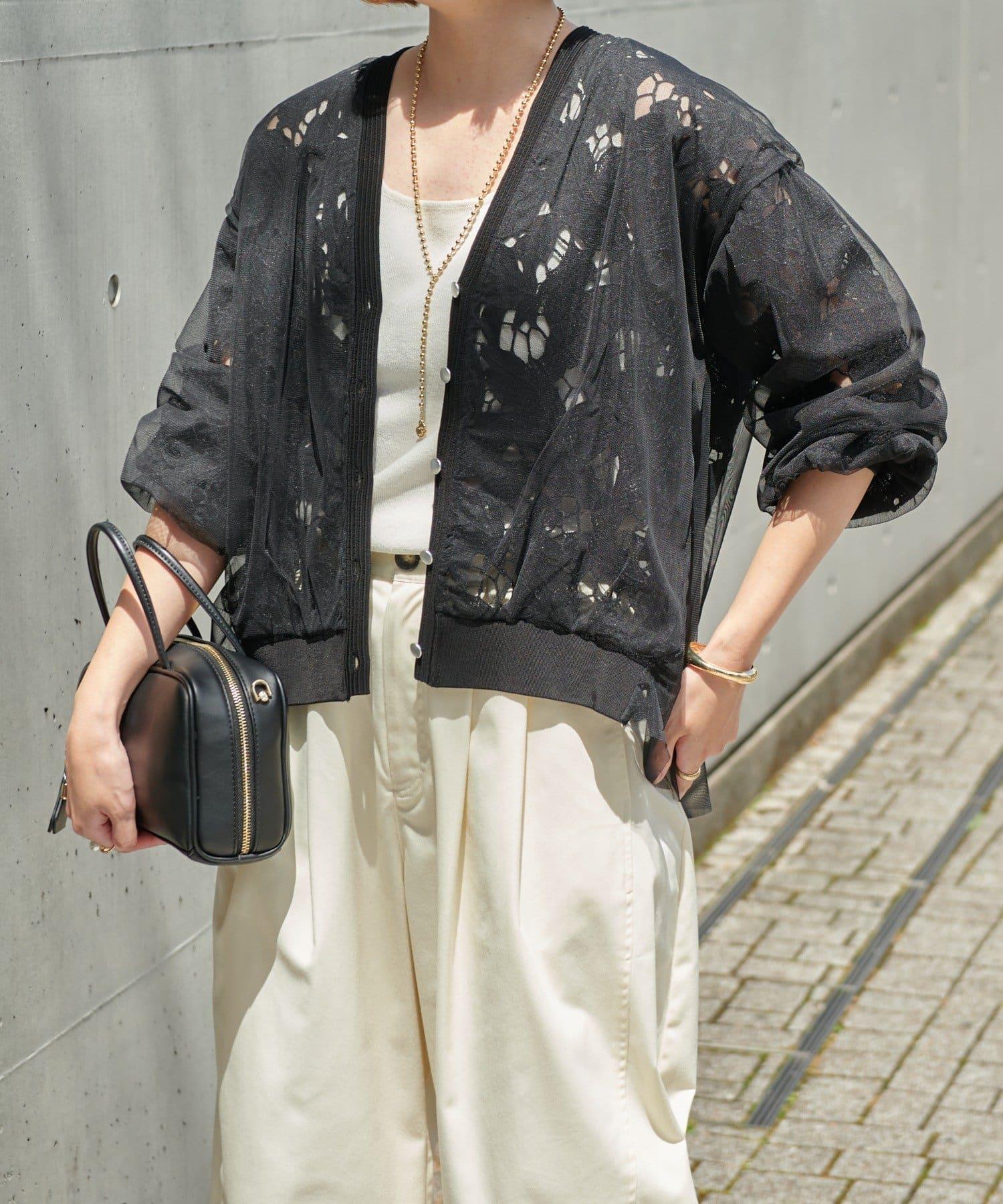 這款開襟羊毛衫具有透明、寬鬆的感覺,給人一種成熟、女性化的風格。