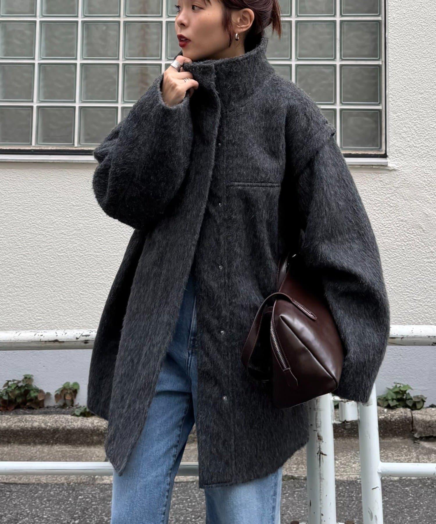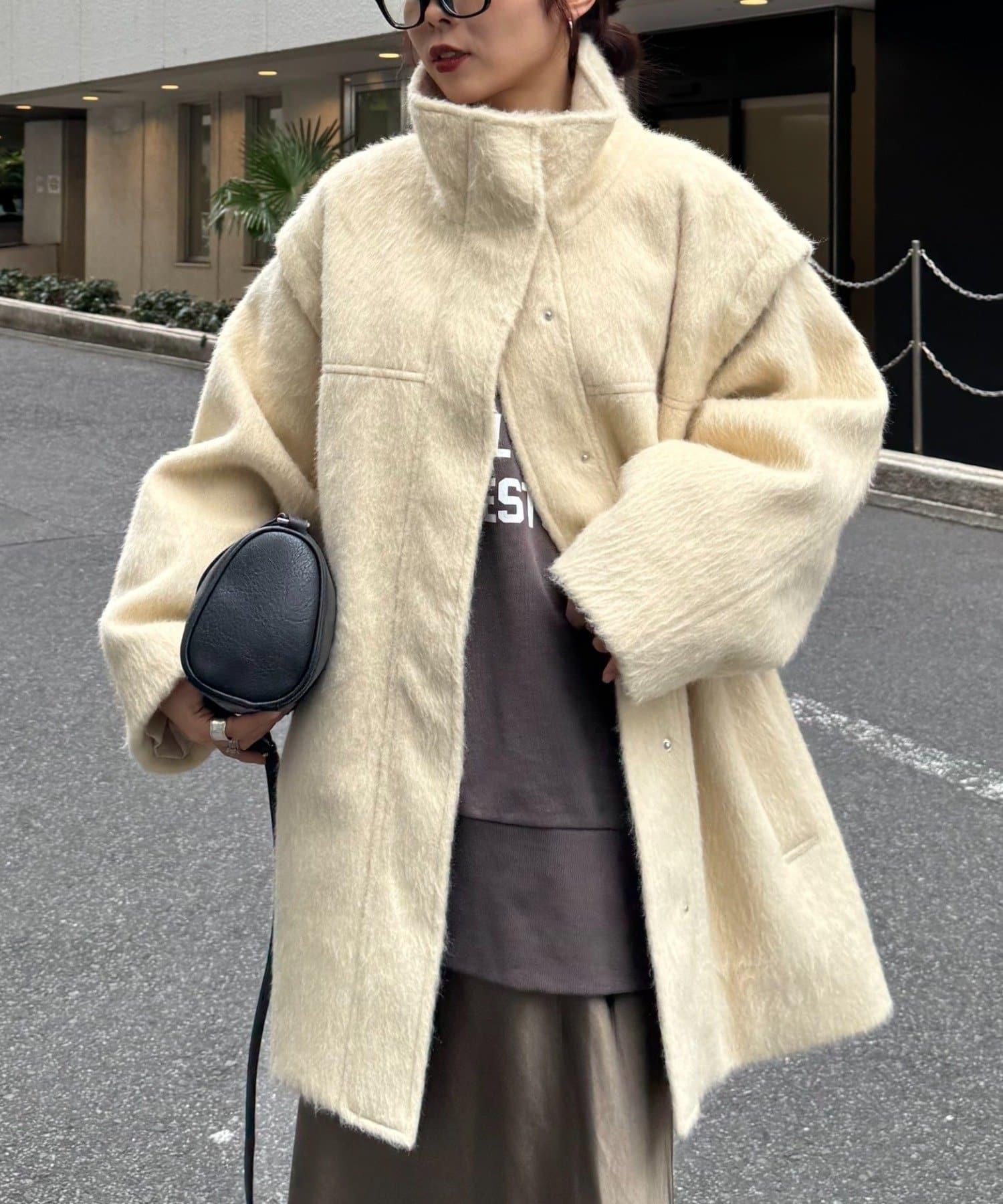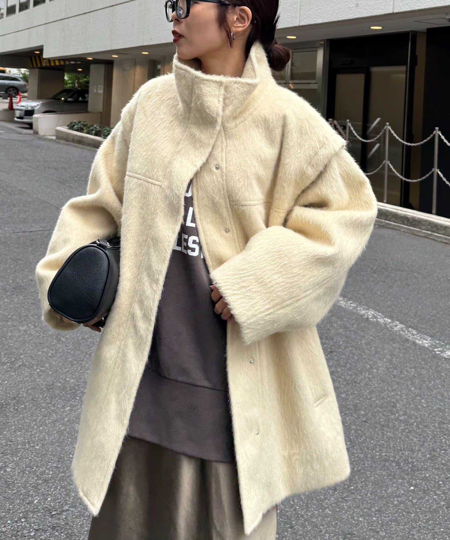 寬大的立領讓臉部看起來乾淨利落,高度也讓頸部保持溫暖。