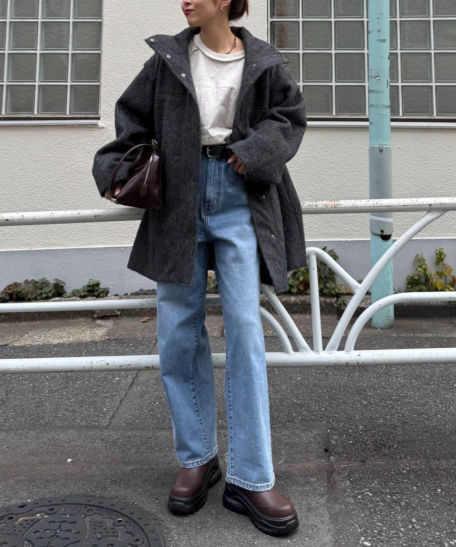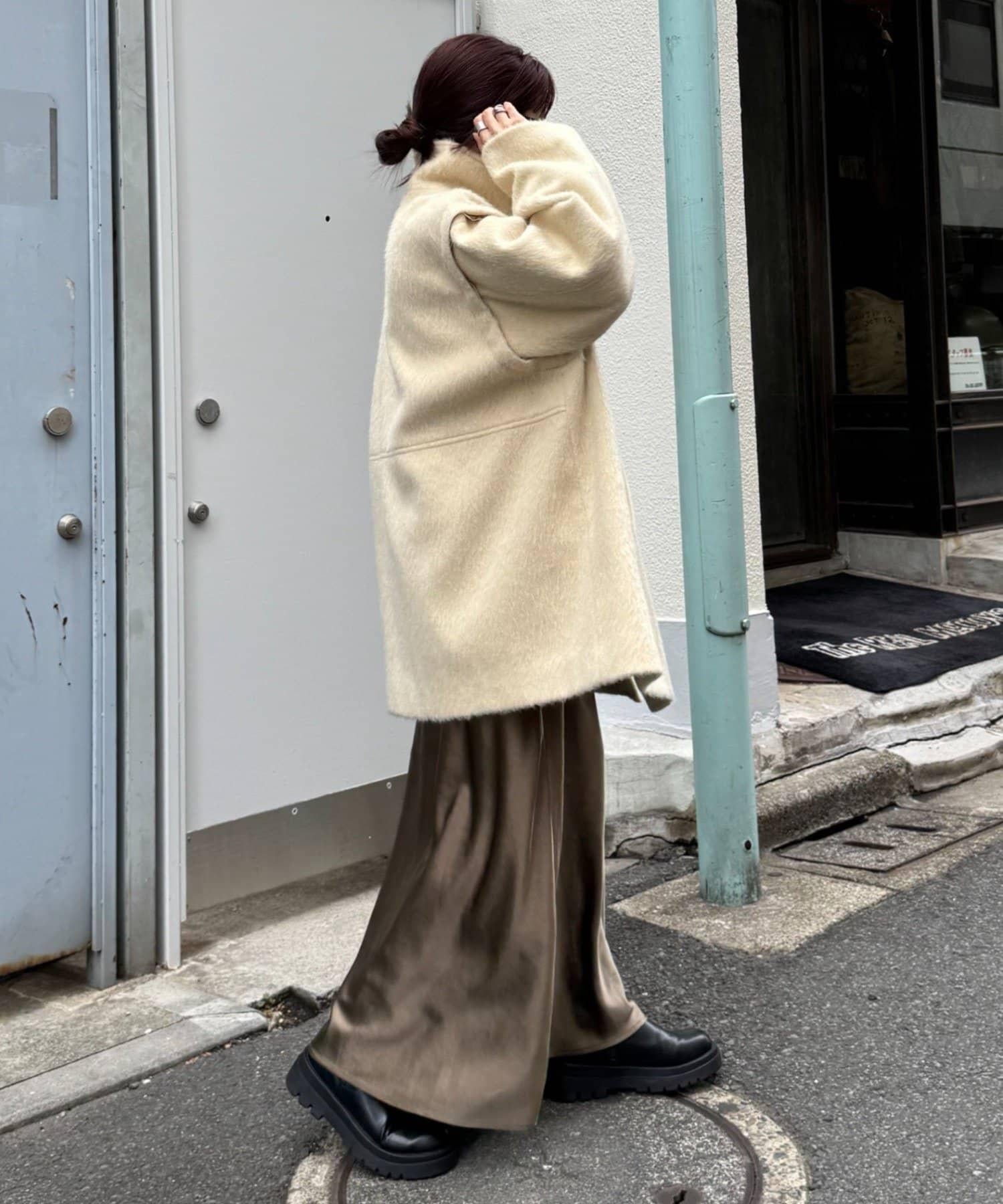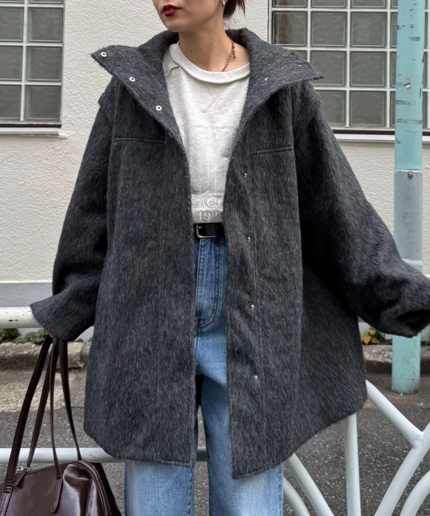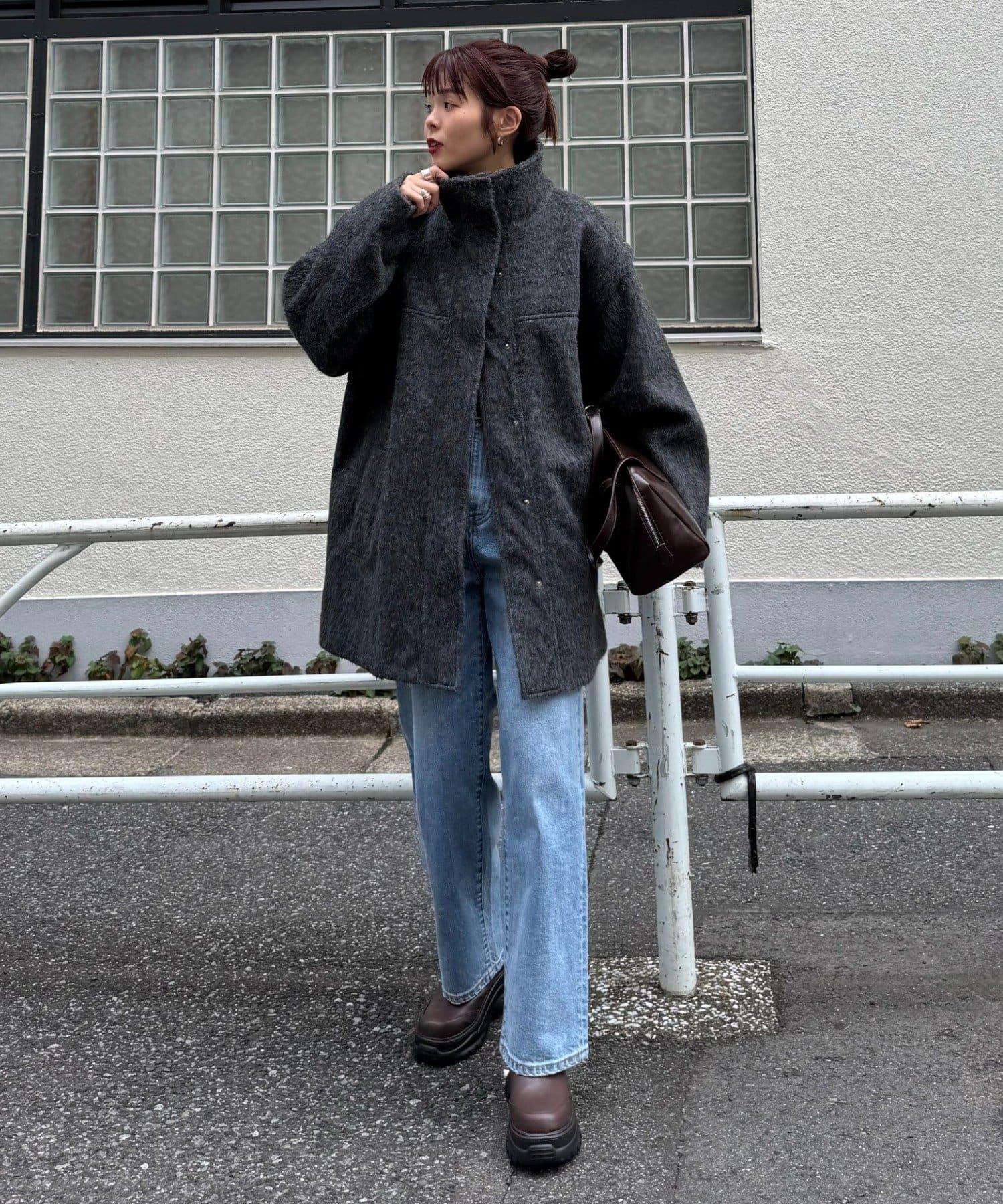 寬大的立領讓臉部看起來乾淨利落,高度也讓頸部保持溫暖。