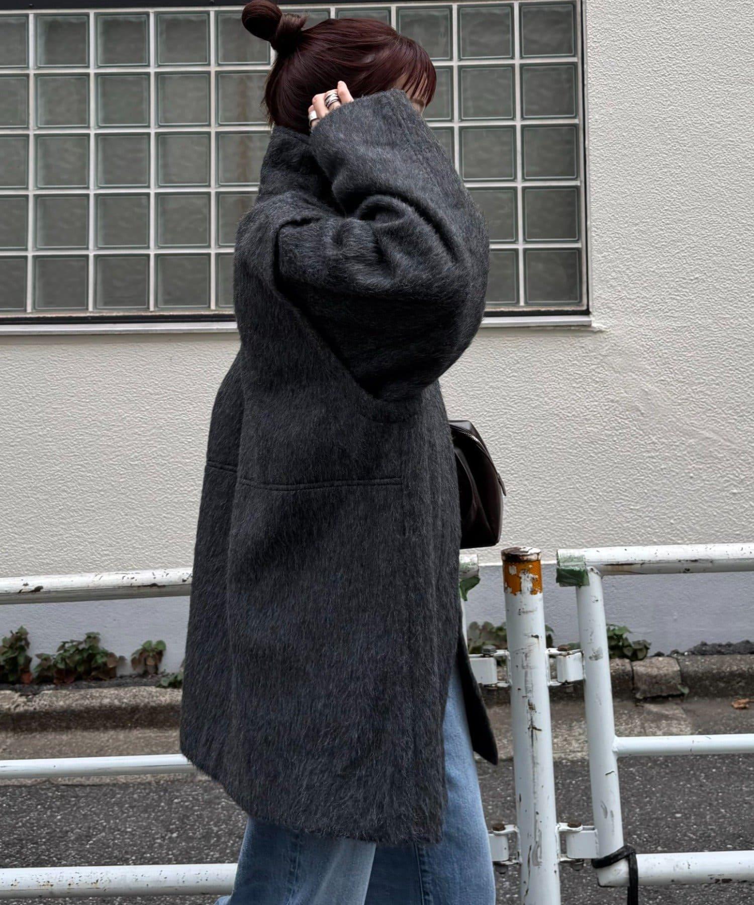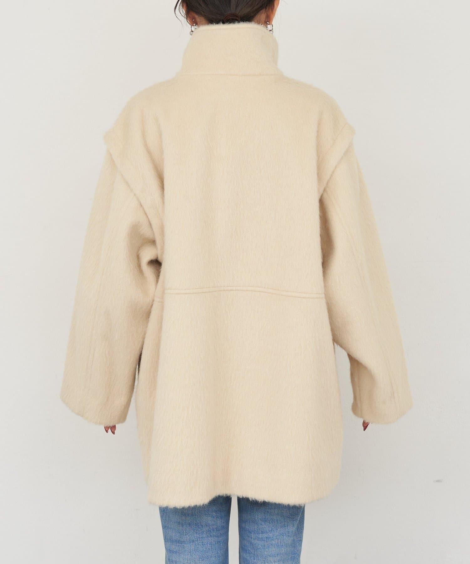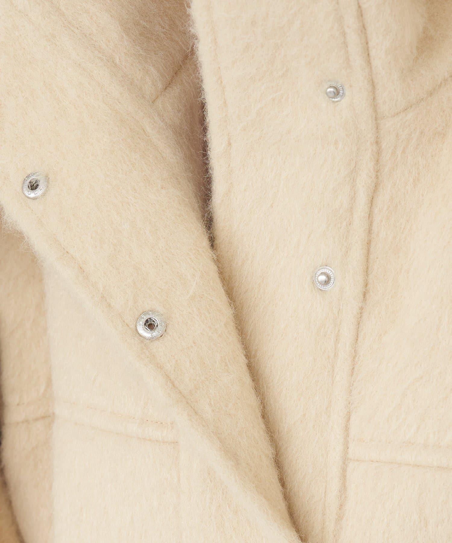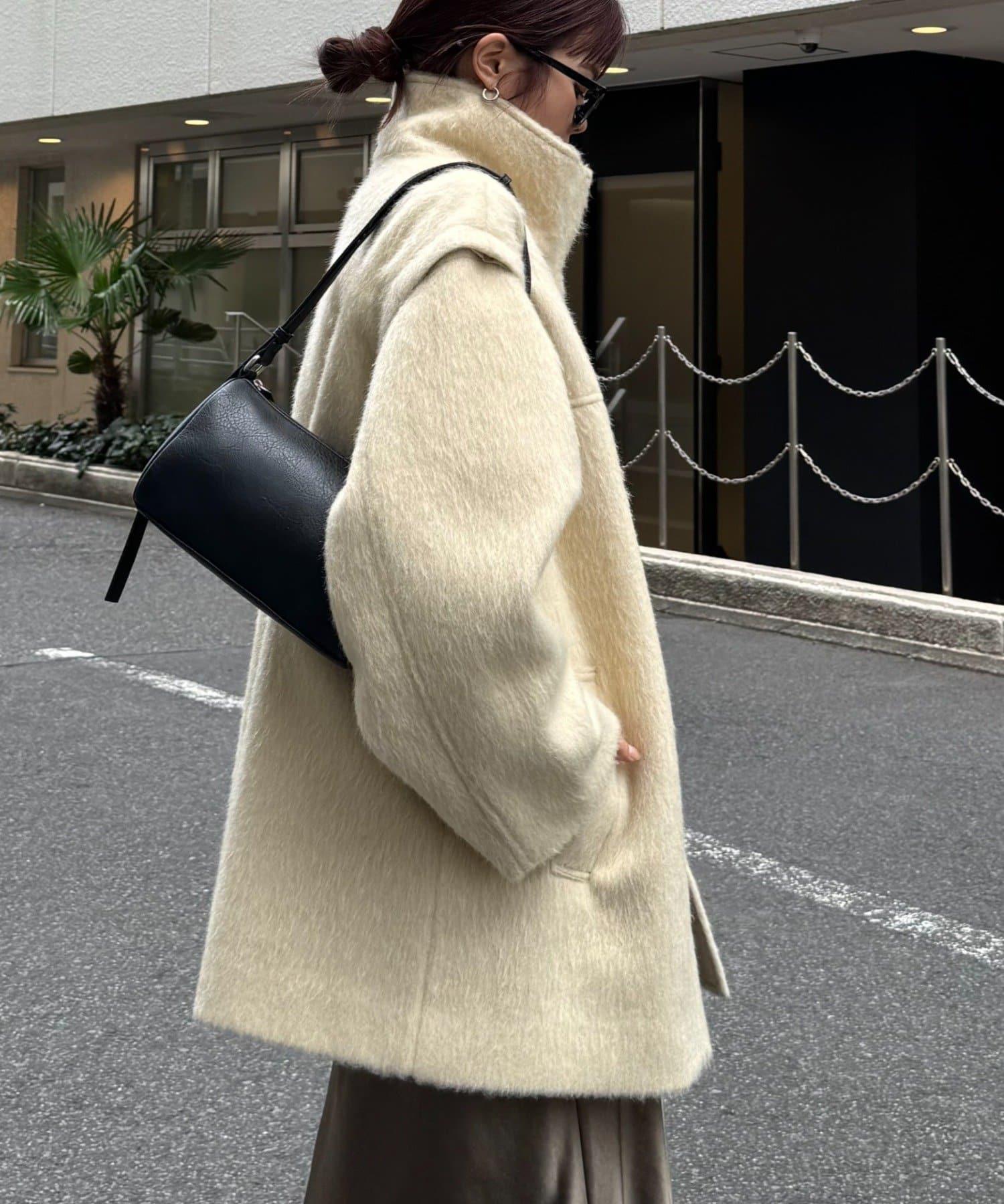 立領半身大衣,採用適度優雅的短絨毛面料製成。