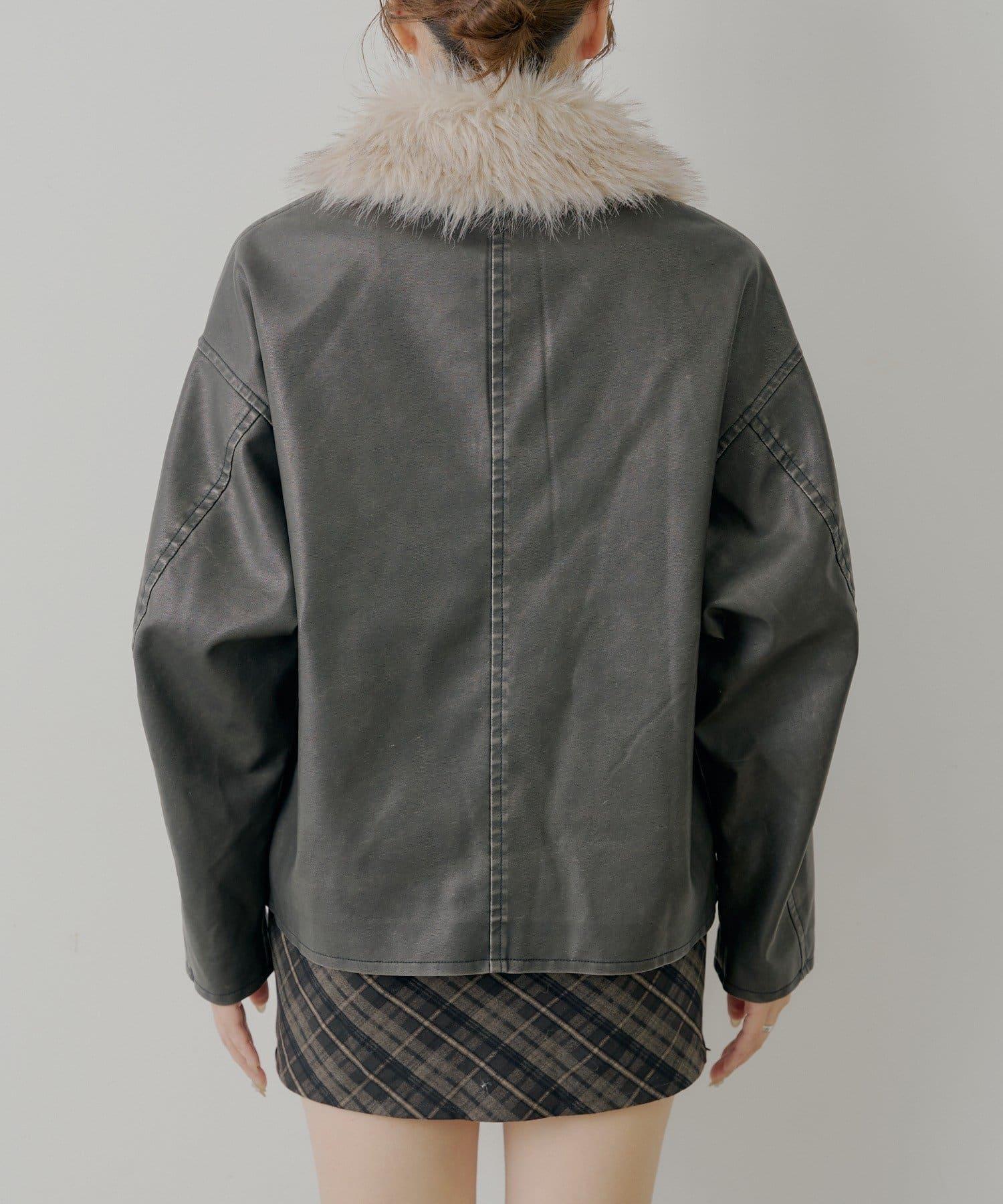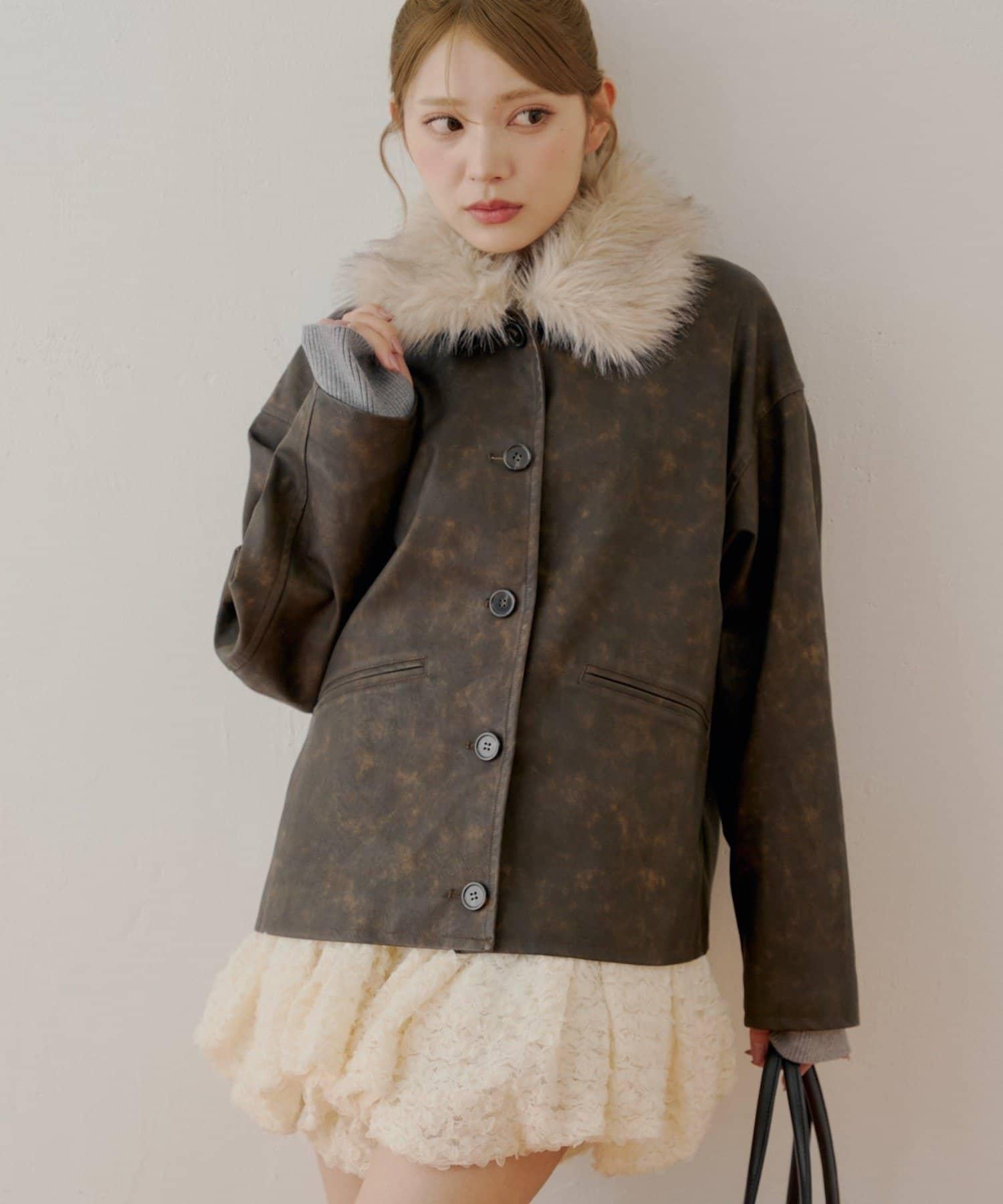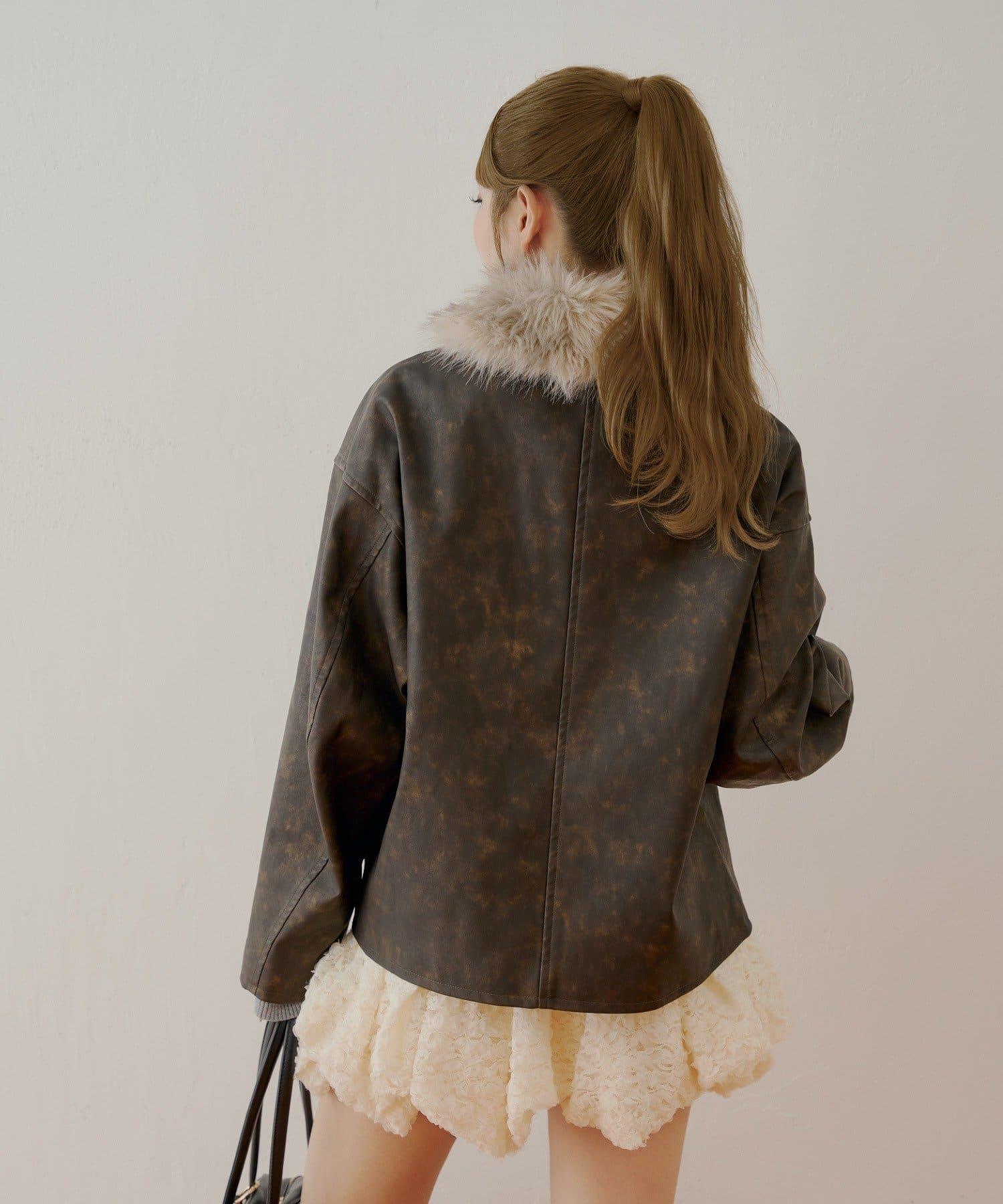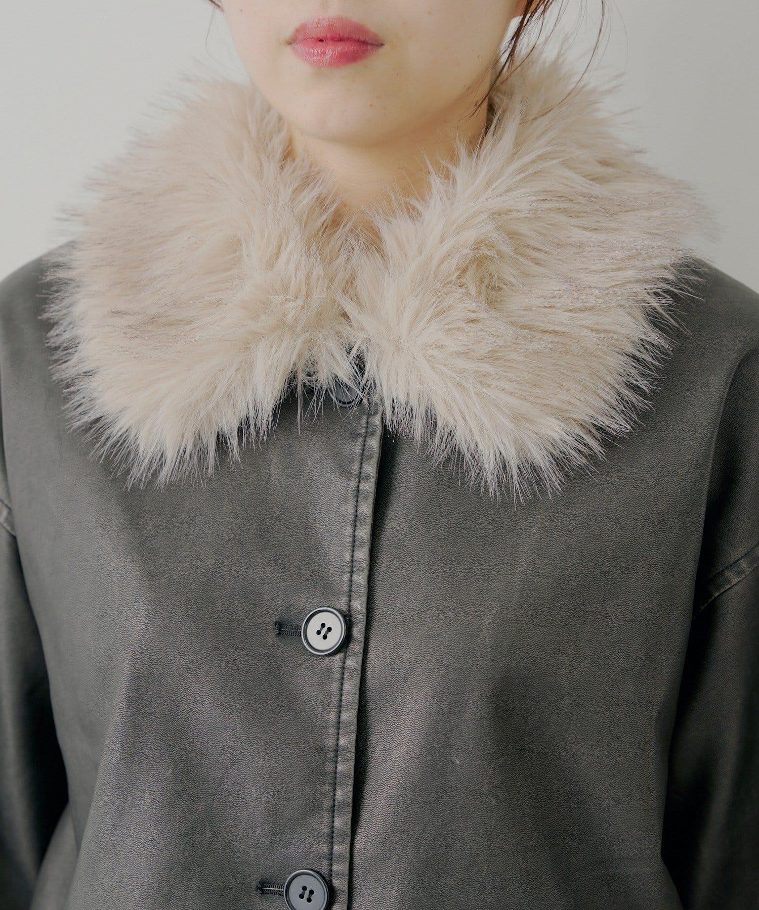 皮革寬鬆襯衫夾克,配以柔軟蓬鬆的毛領。