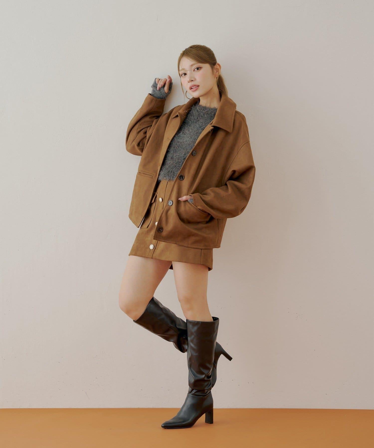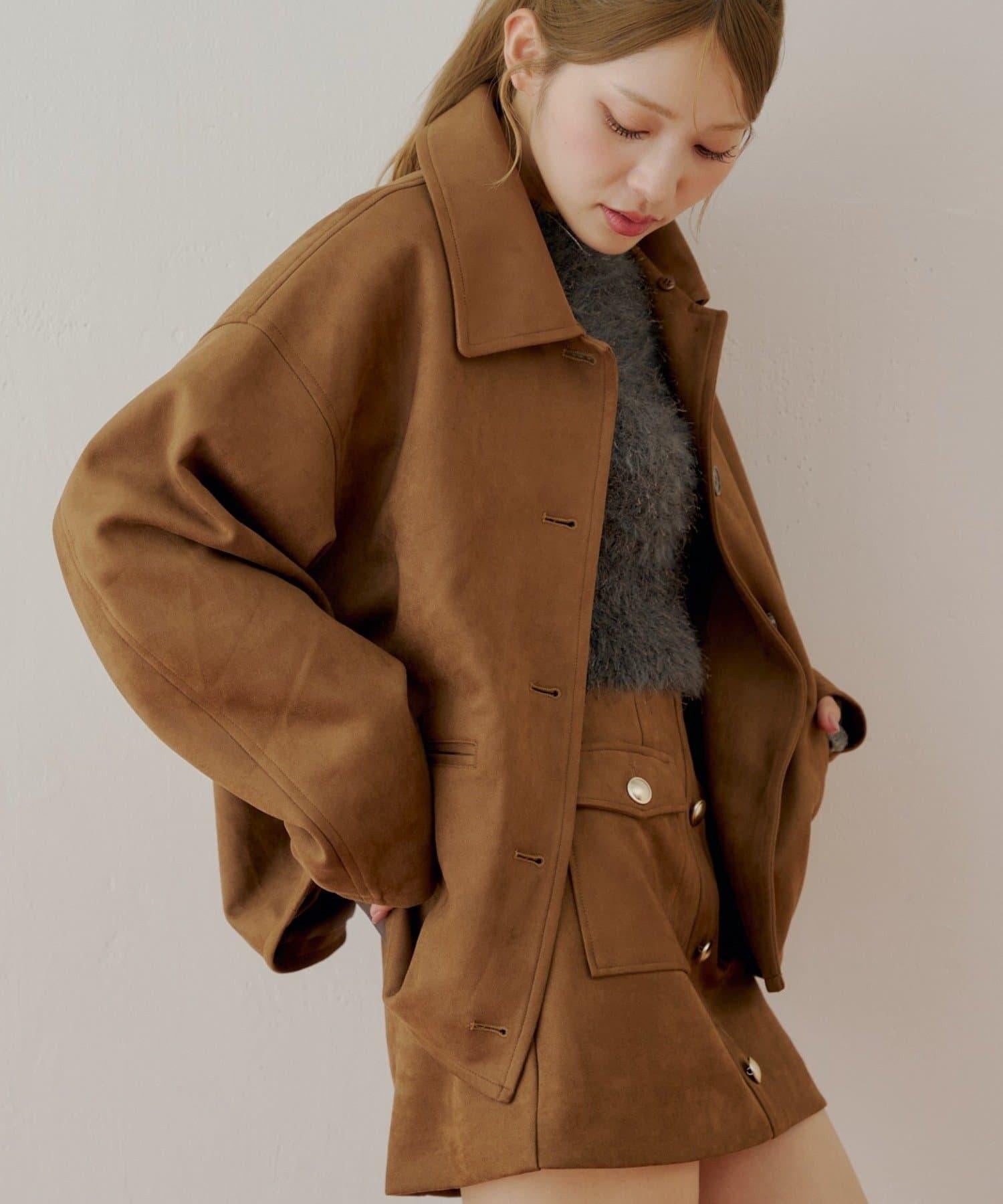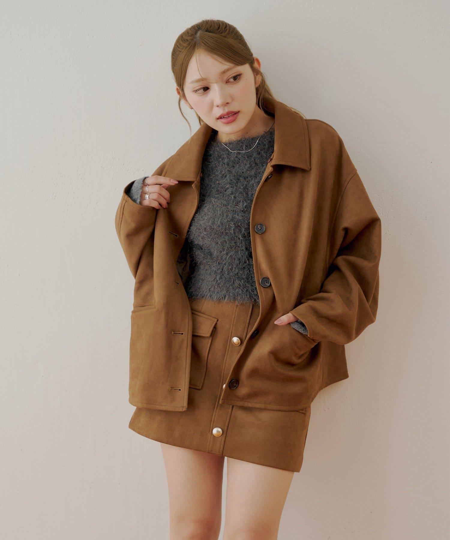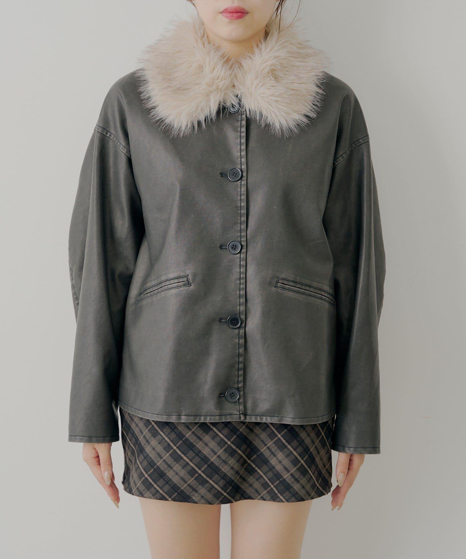 皮革寬鬆襯衫夾克,配以柔軟蓬鬆的毛領。