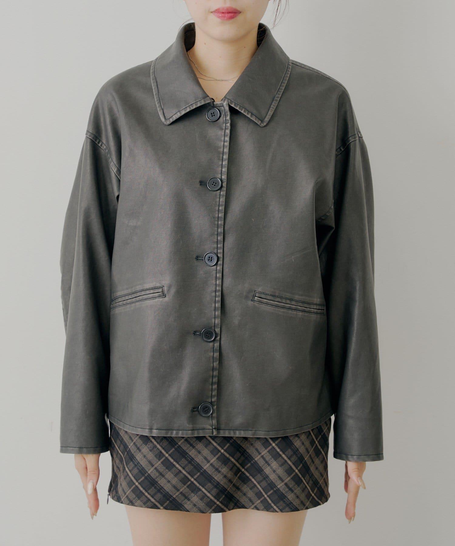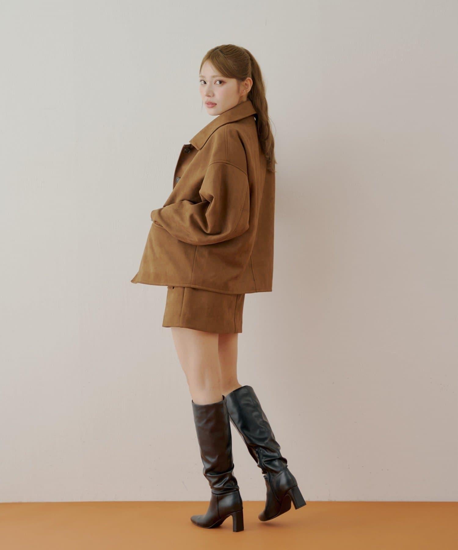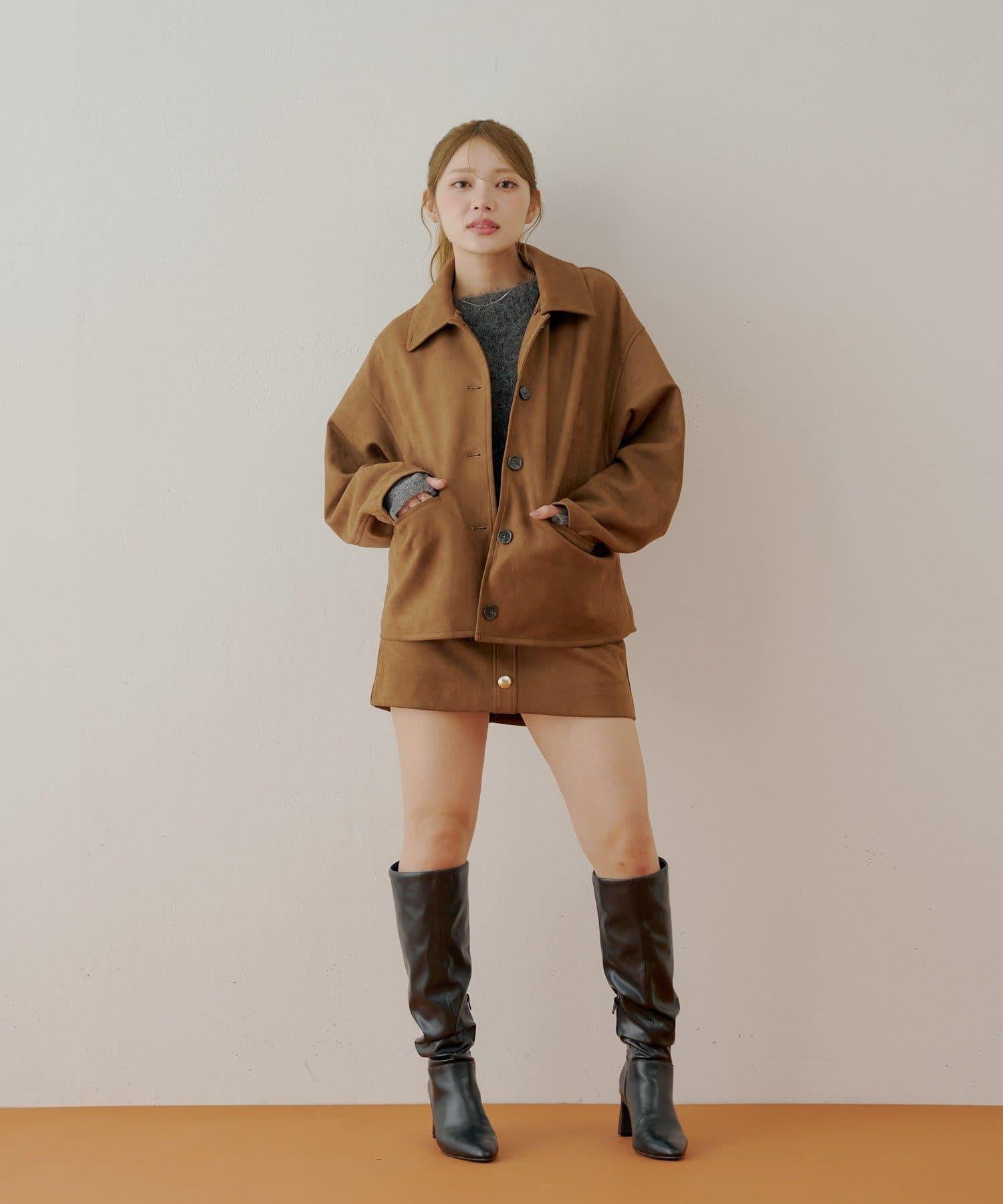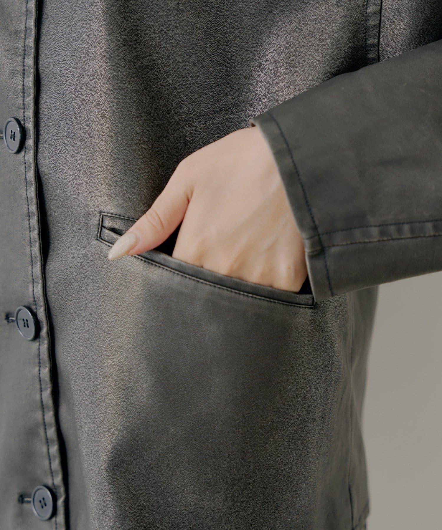 皮革寬鬆襯衫夾克,配以柔軟蓬鬆的毛領。