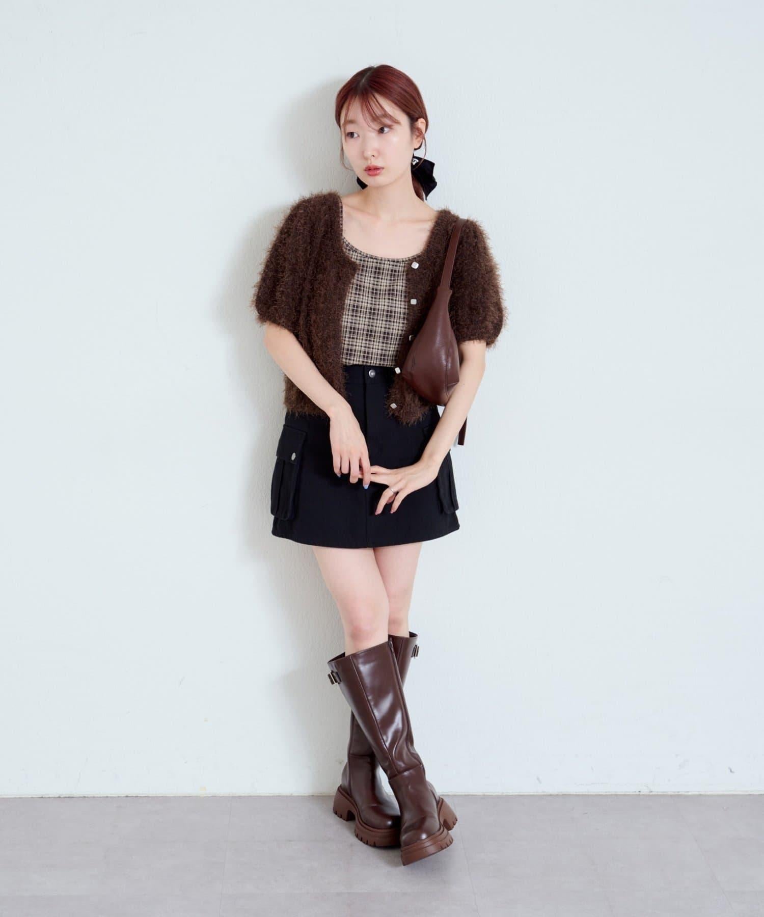 腳上的短皮靴恰到好處地增加了厚重感,而銀色耳環作為配飾則增添了一絲優雅。
