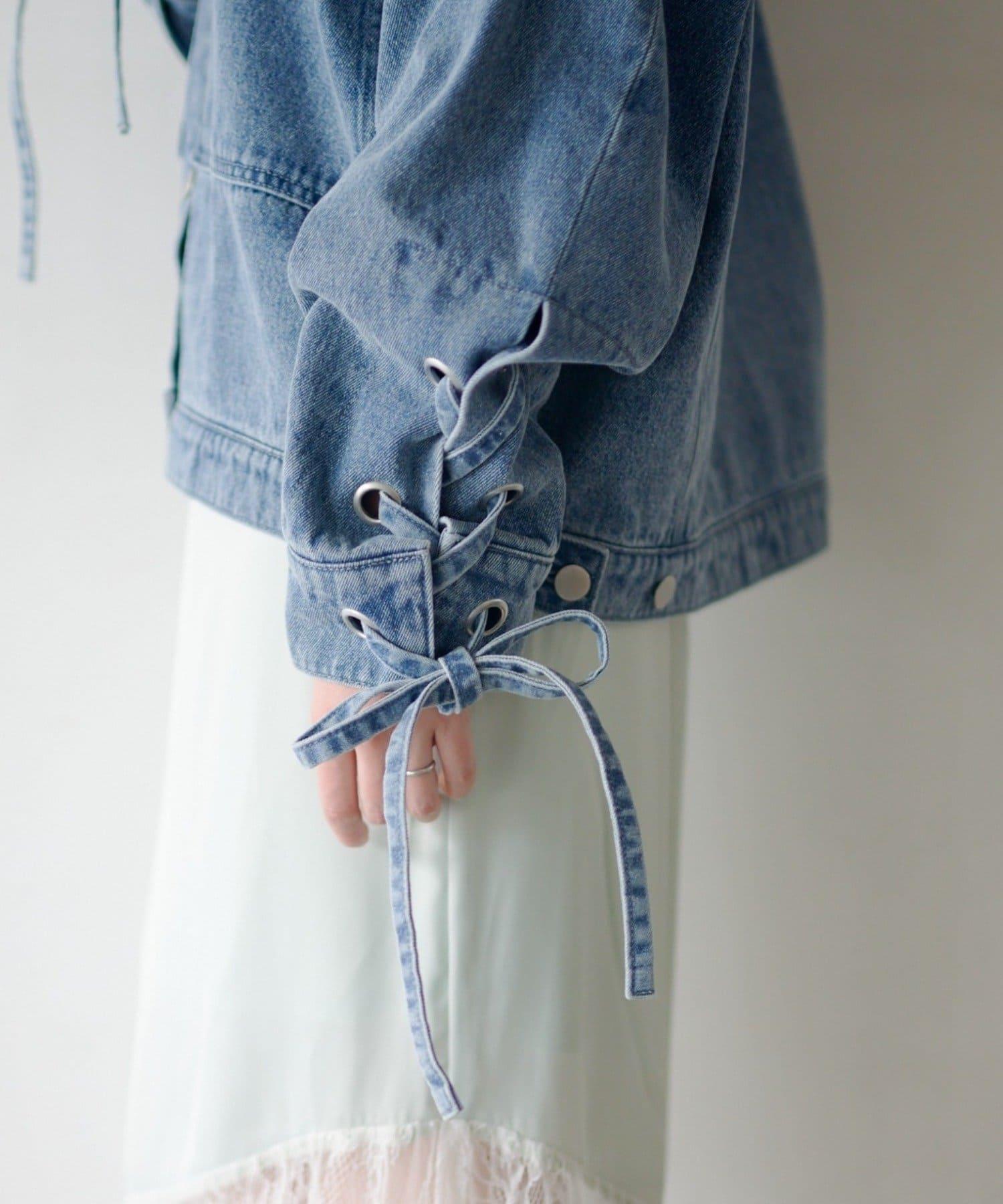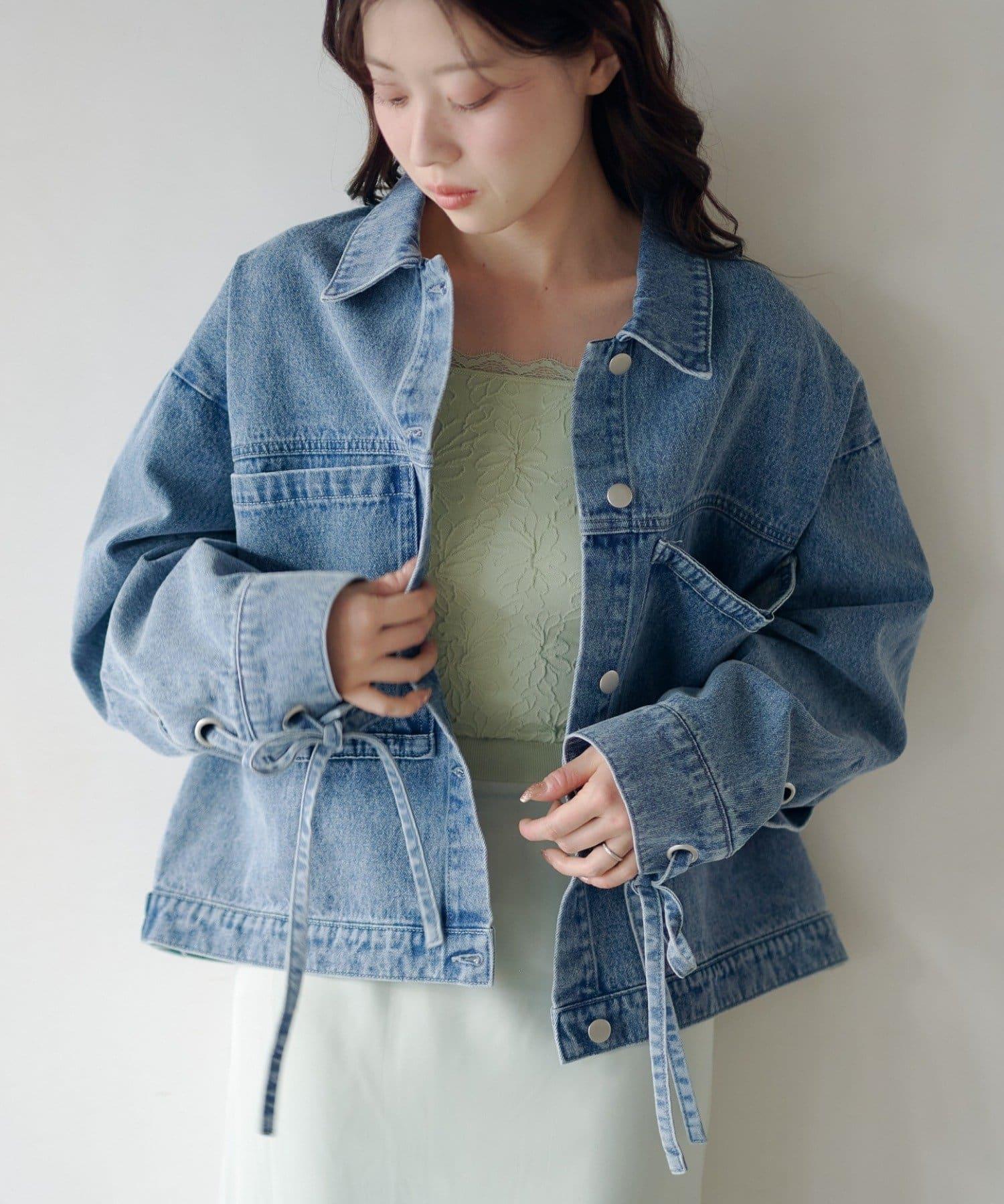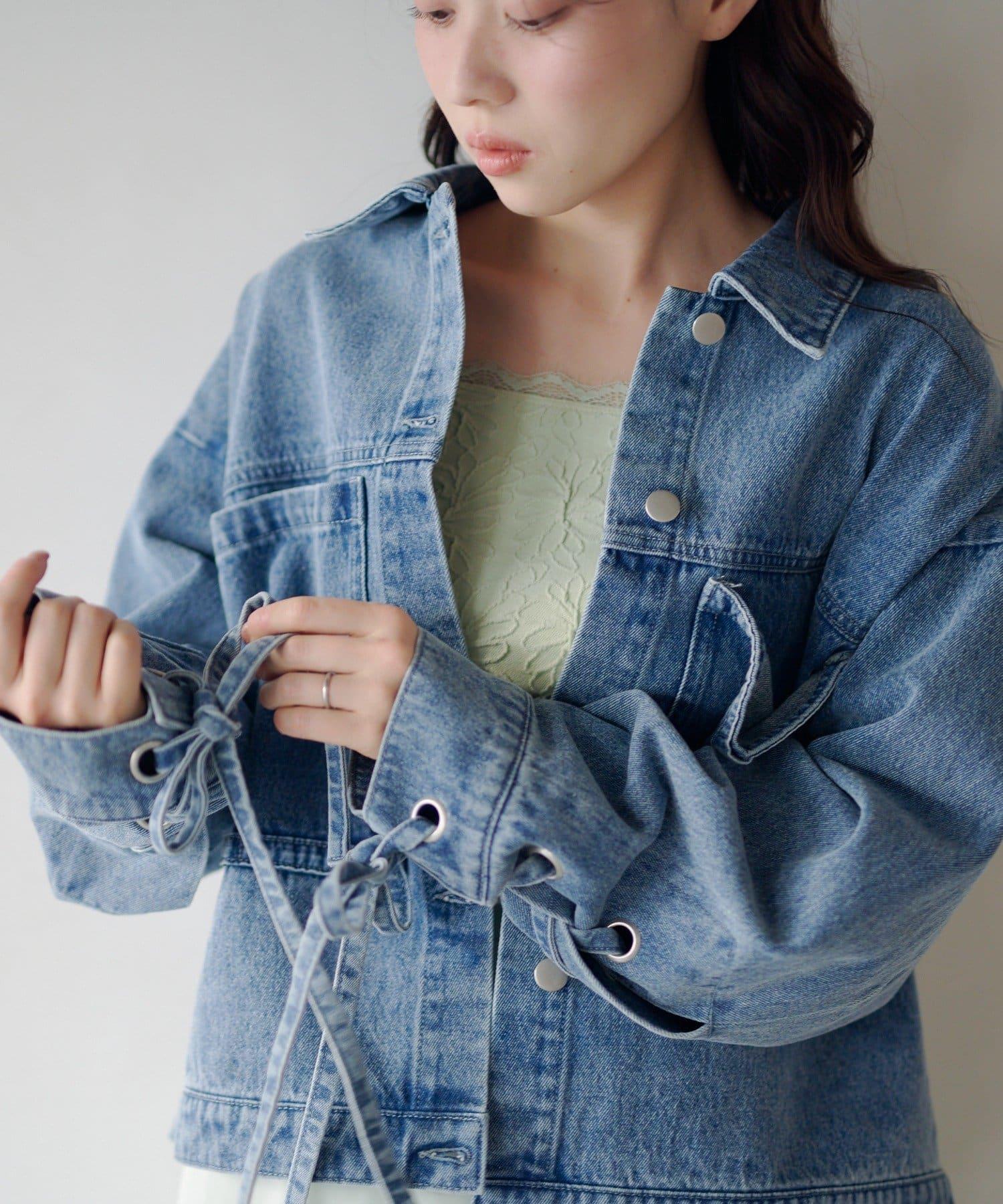 柔軟的絲帶為牛仔布的休閒風格增添了女性氣息。