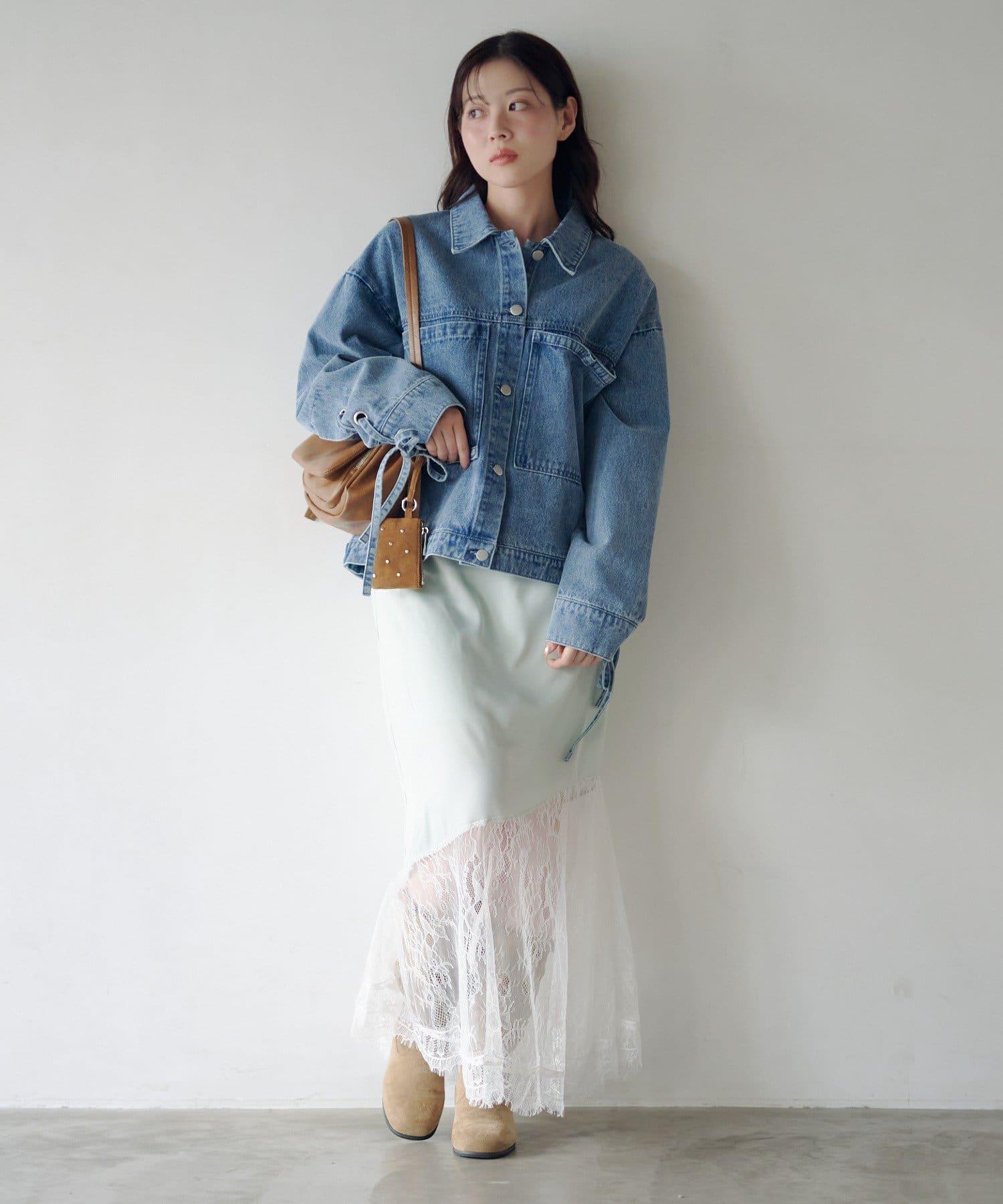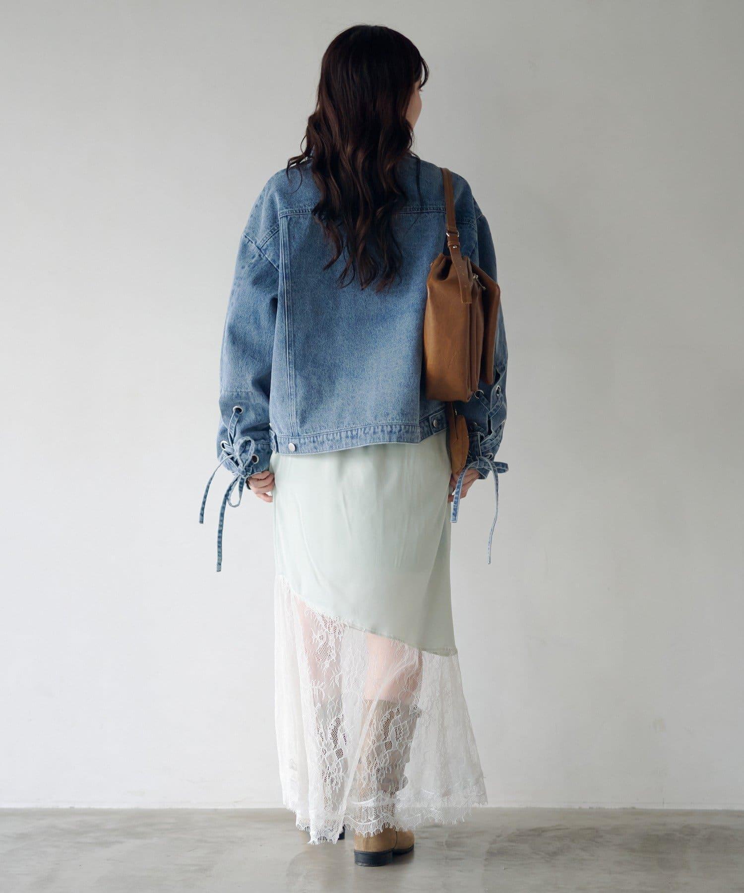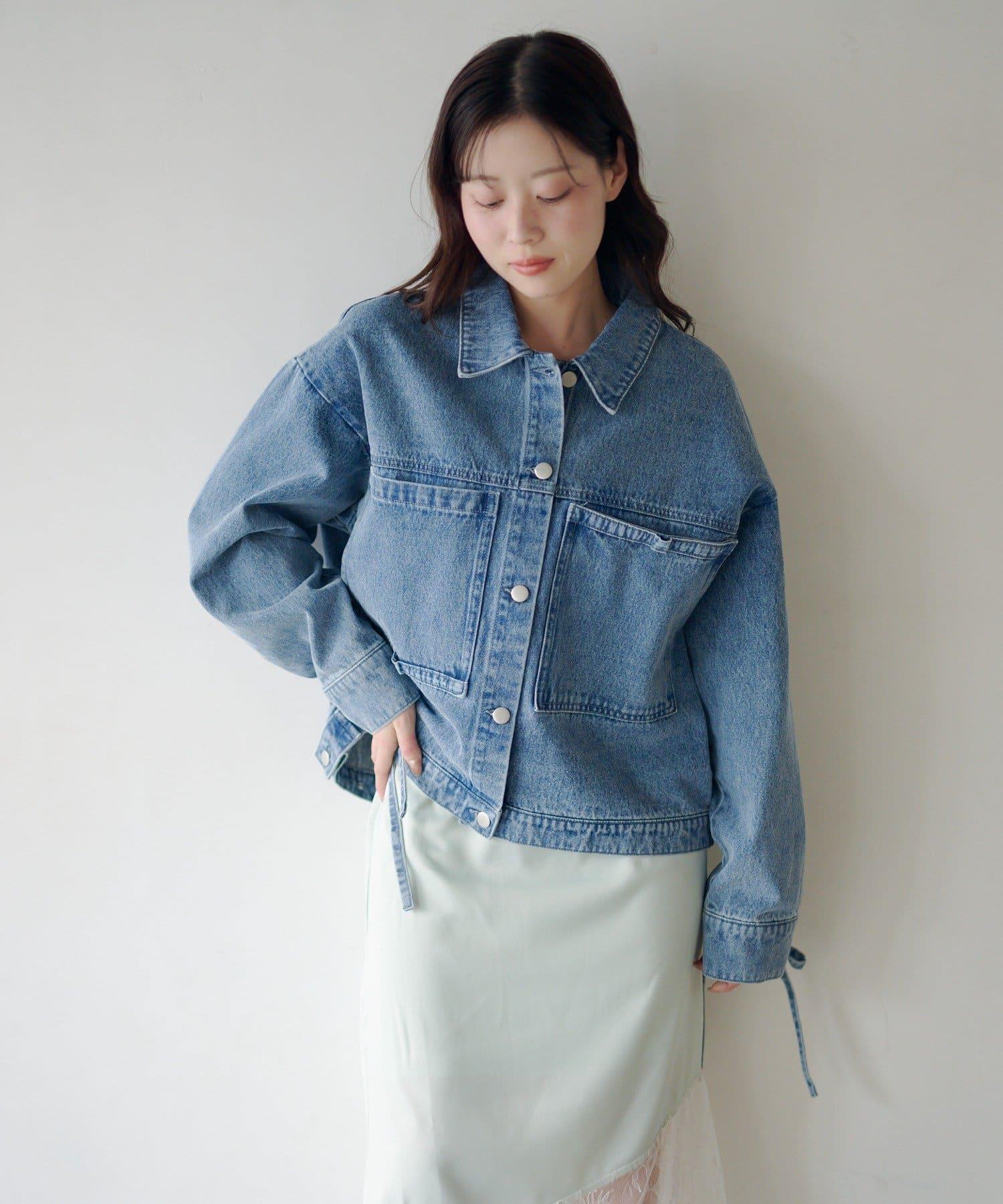 柔軟的絲帶為牛仔布的休閒風格增添了女性氣息。