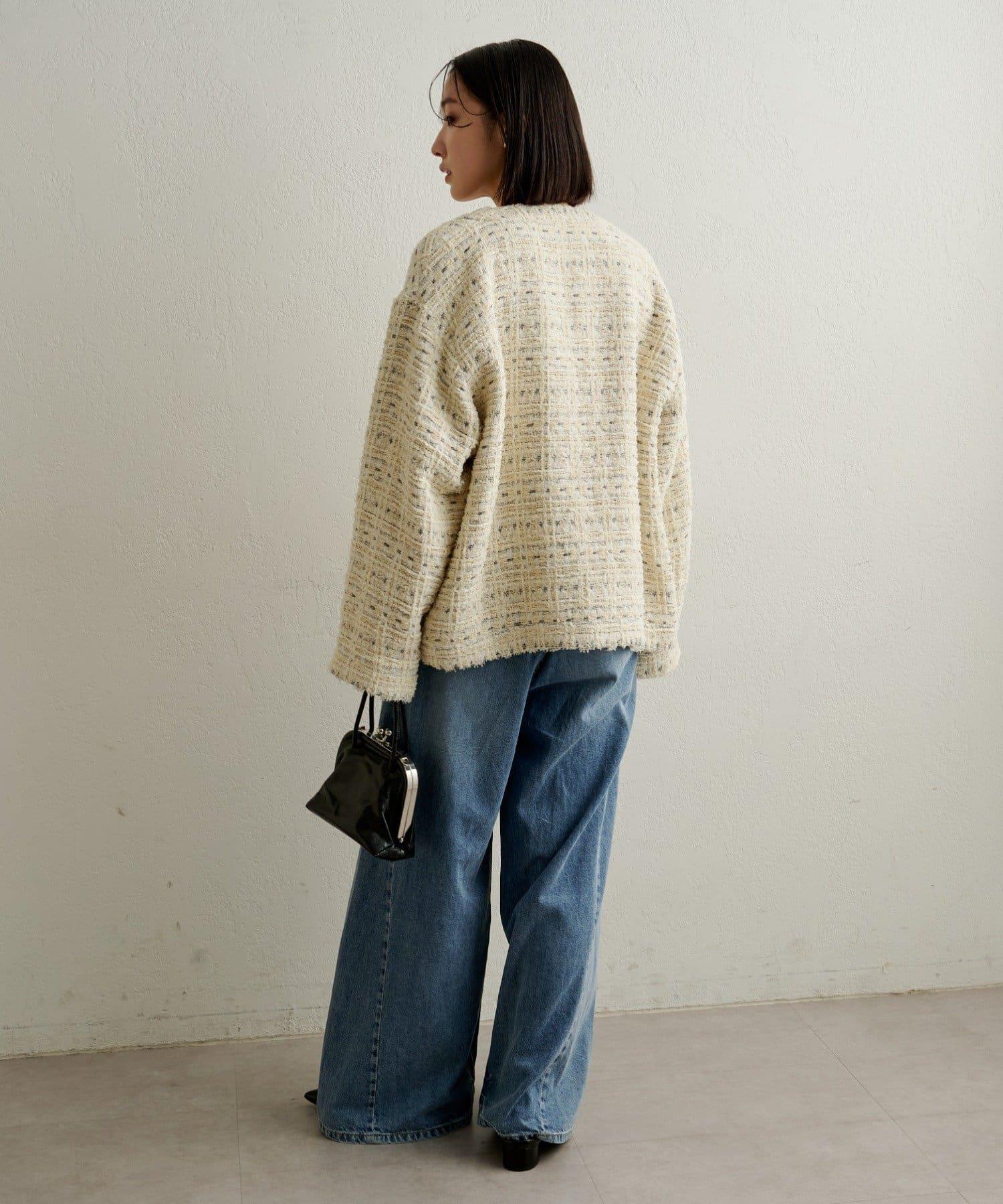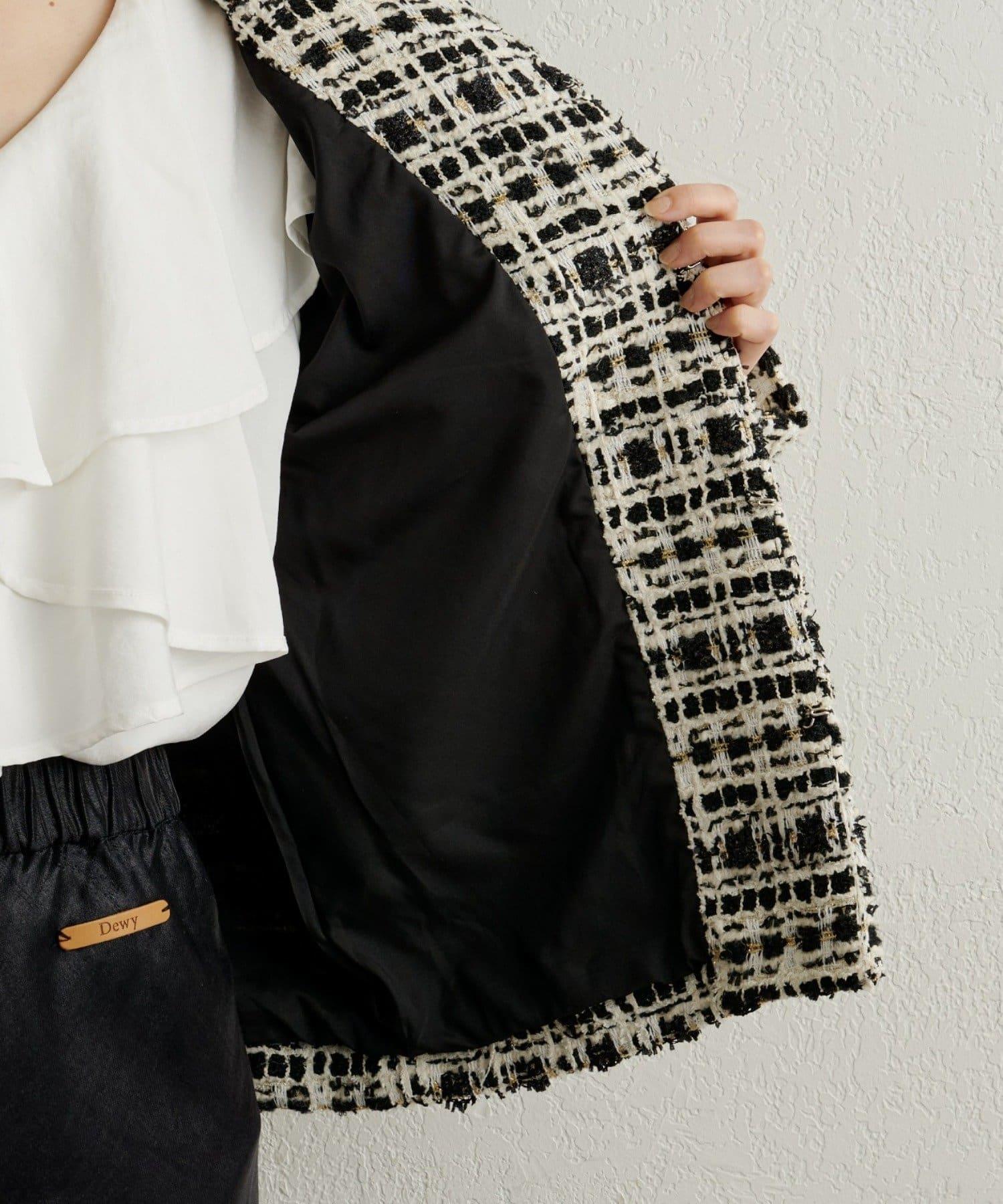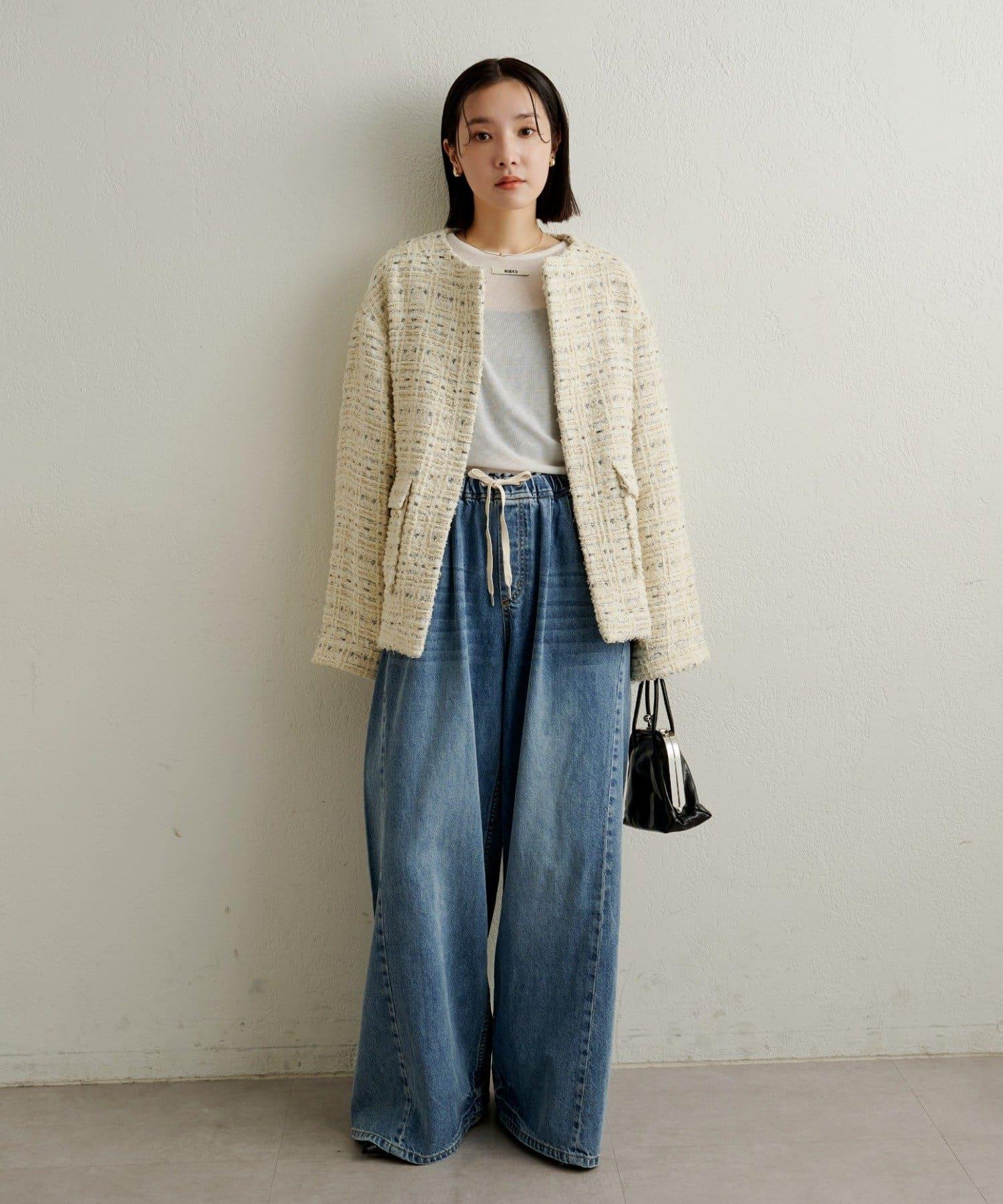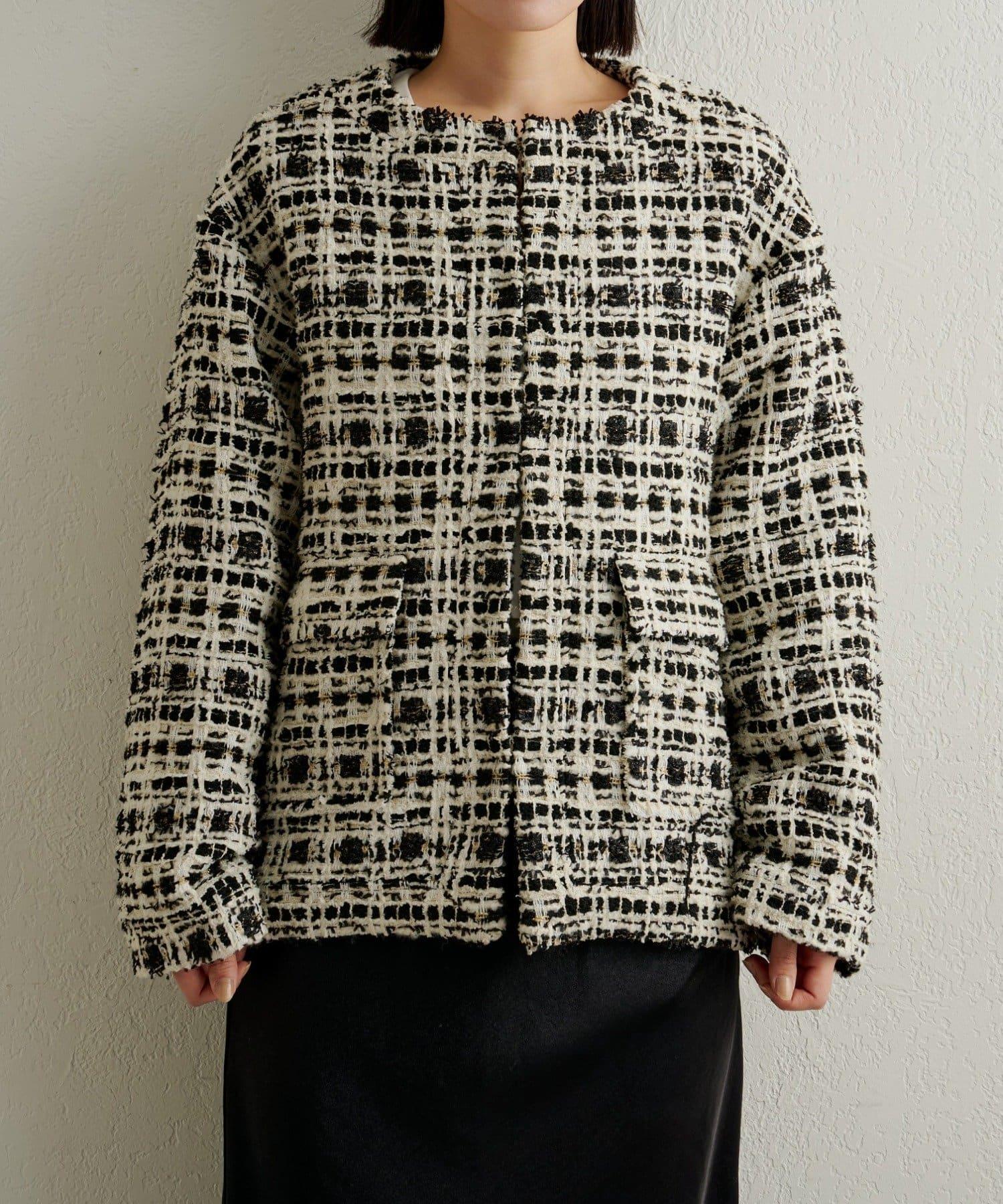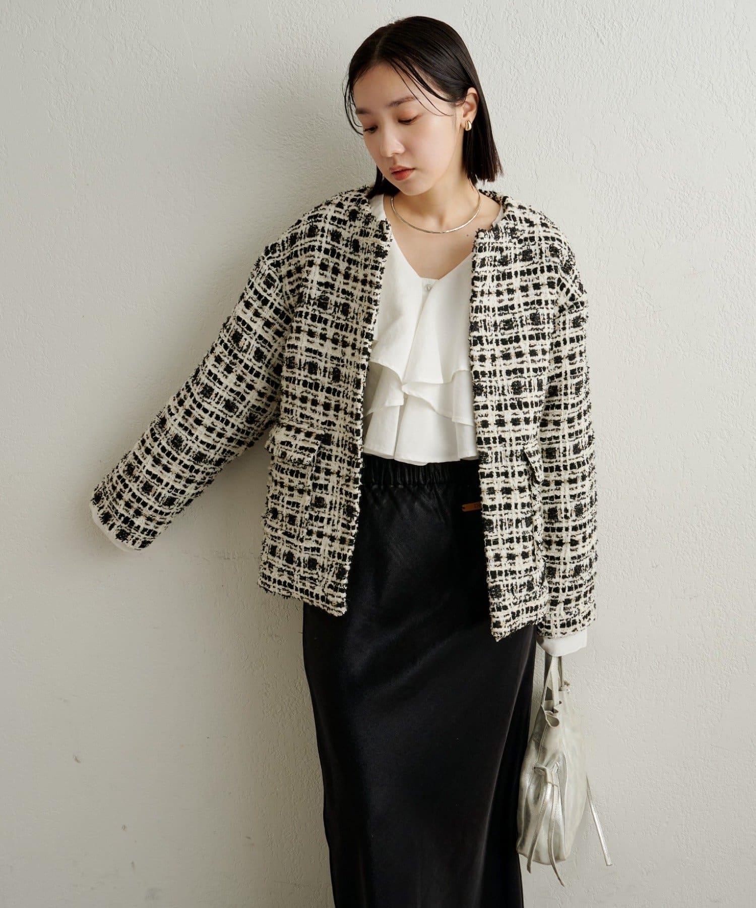 精緻編織的無領斜紋軟呢外套極具吸引力