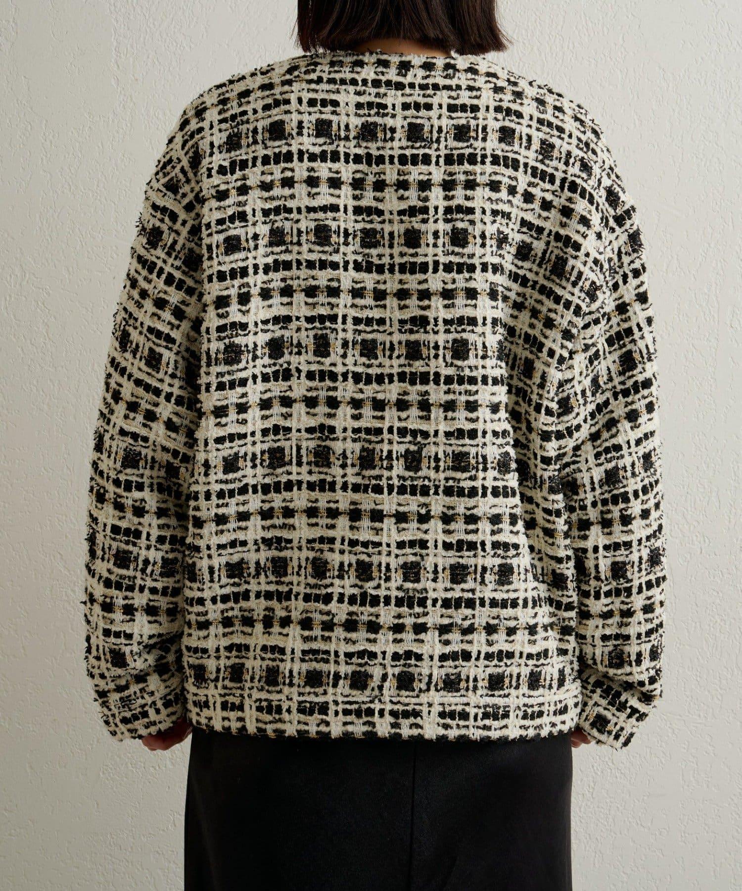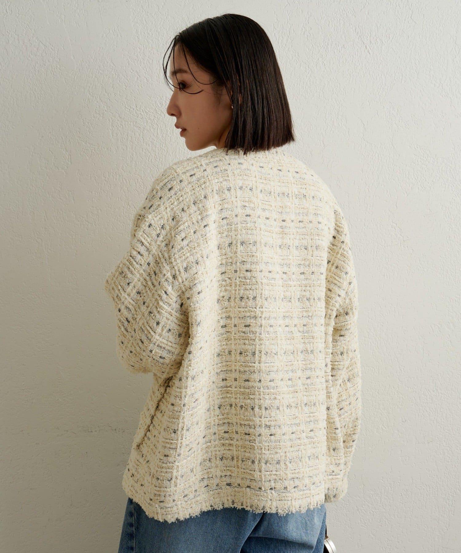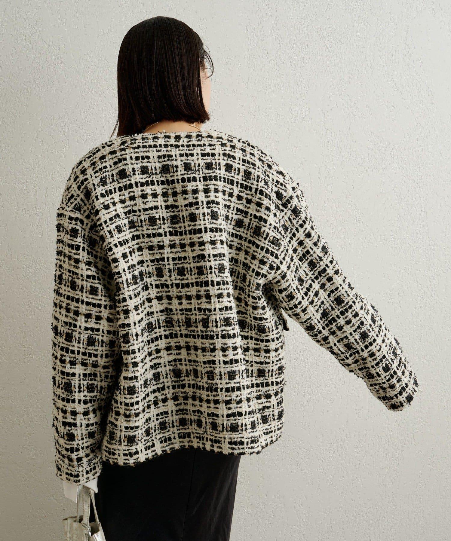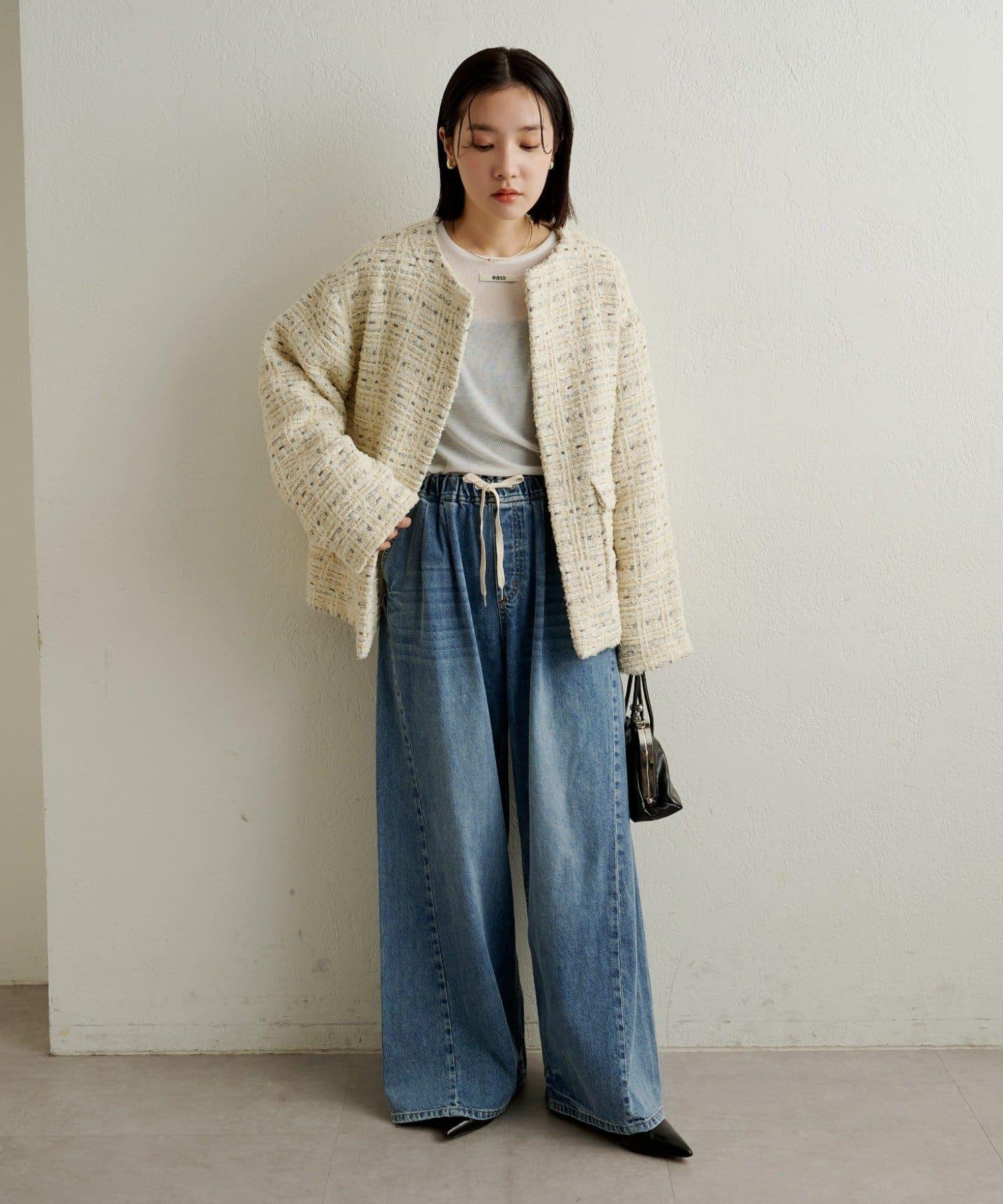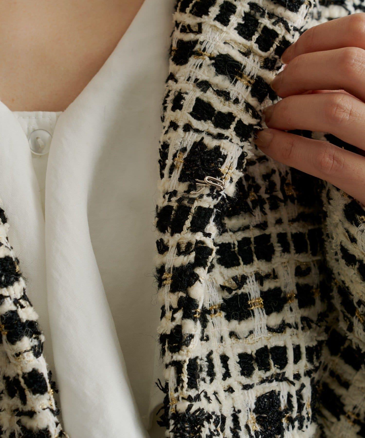 精緻編織的無領斜紋軟呢外套極具吸引力