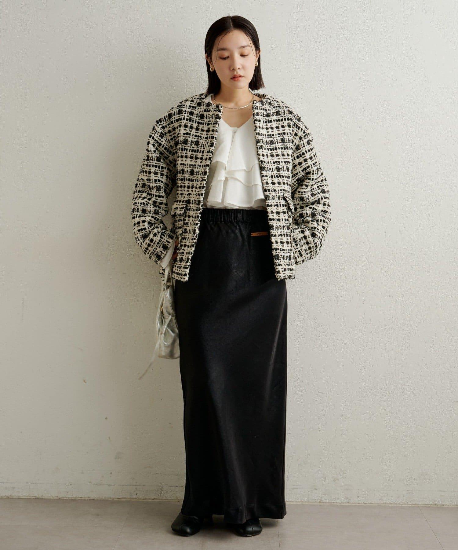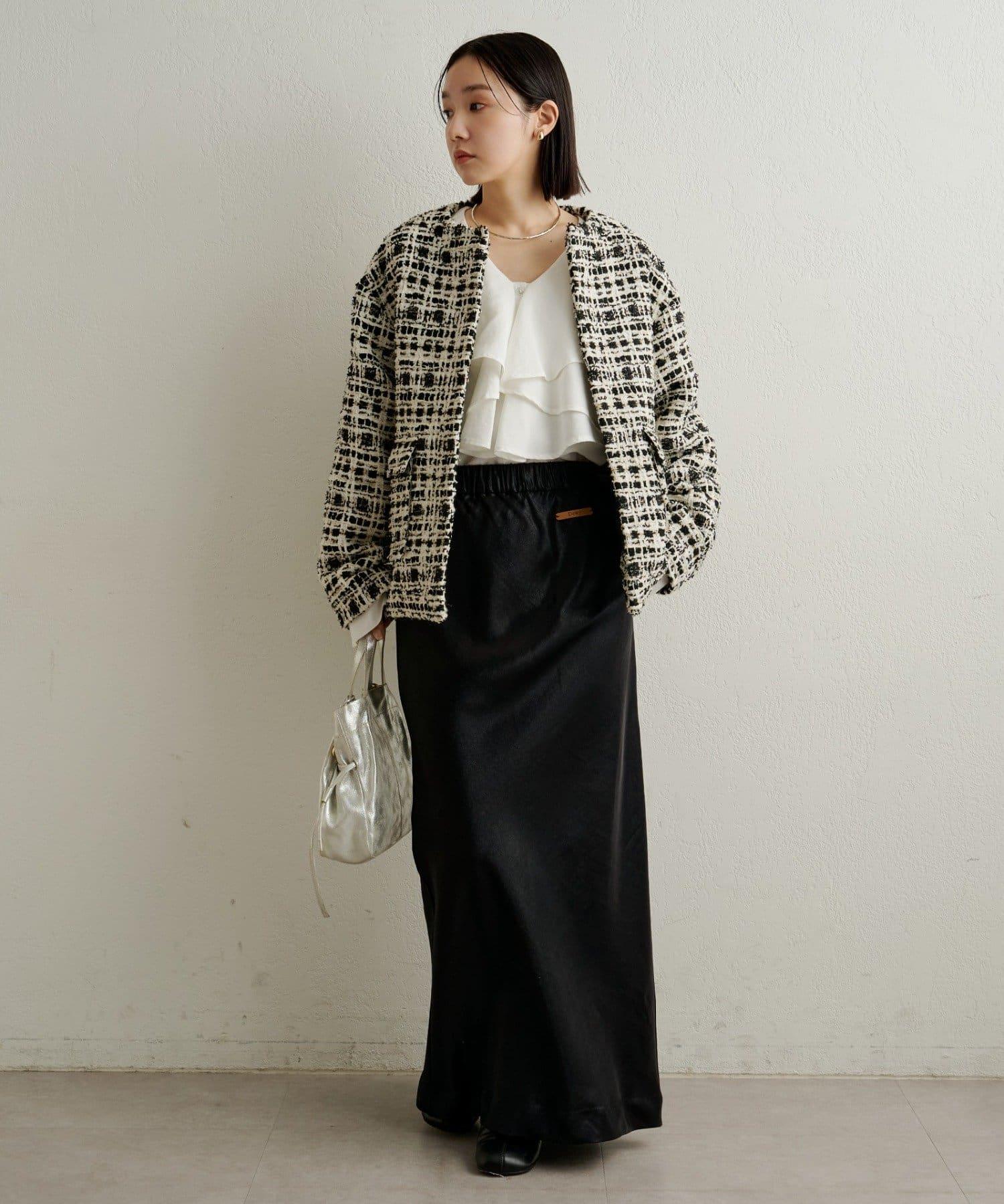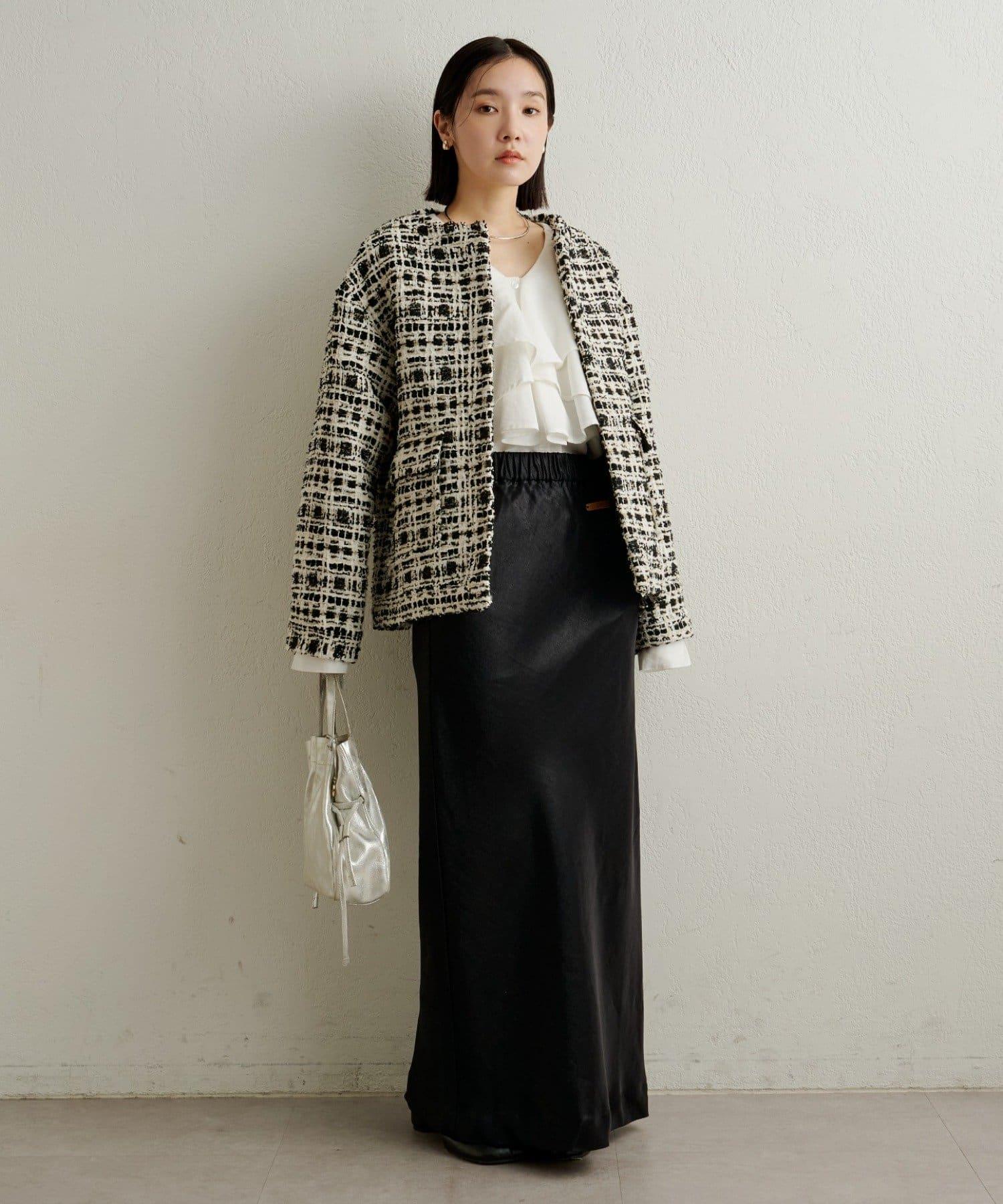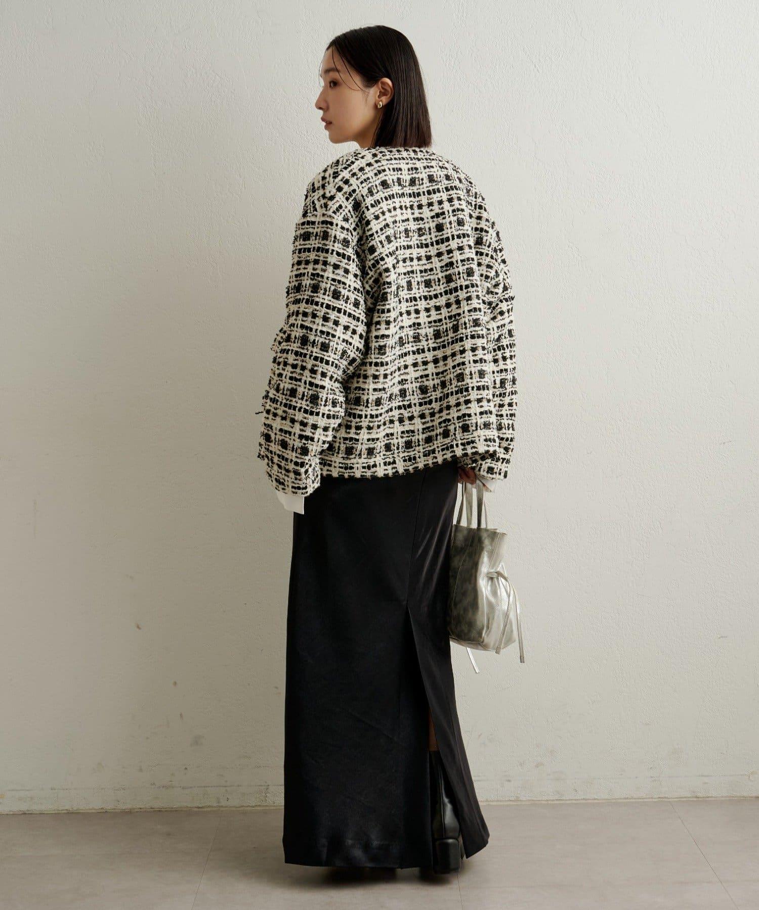 可與同材質的 "粗花呢裹身裙 "搭配作為套裙。