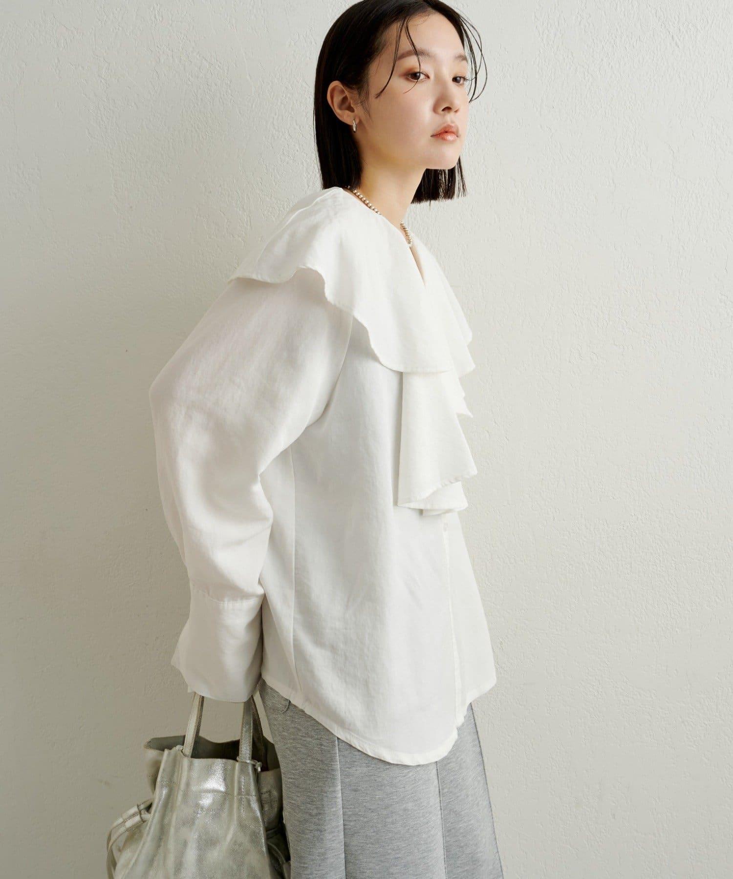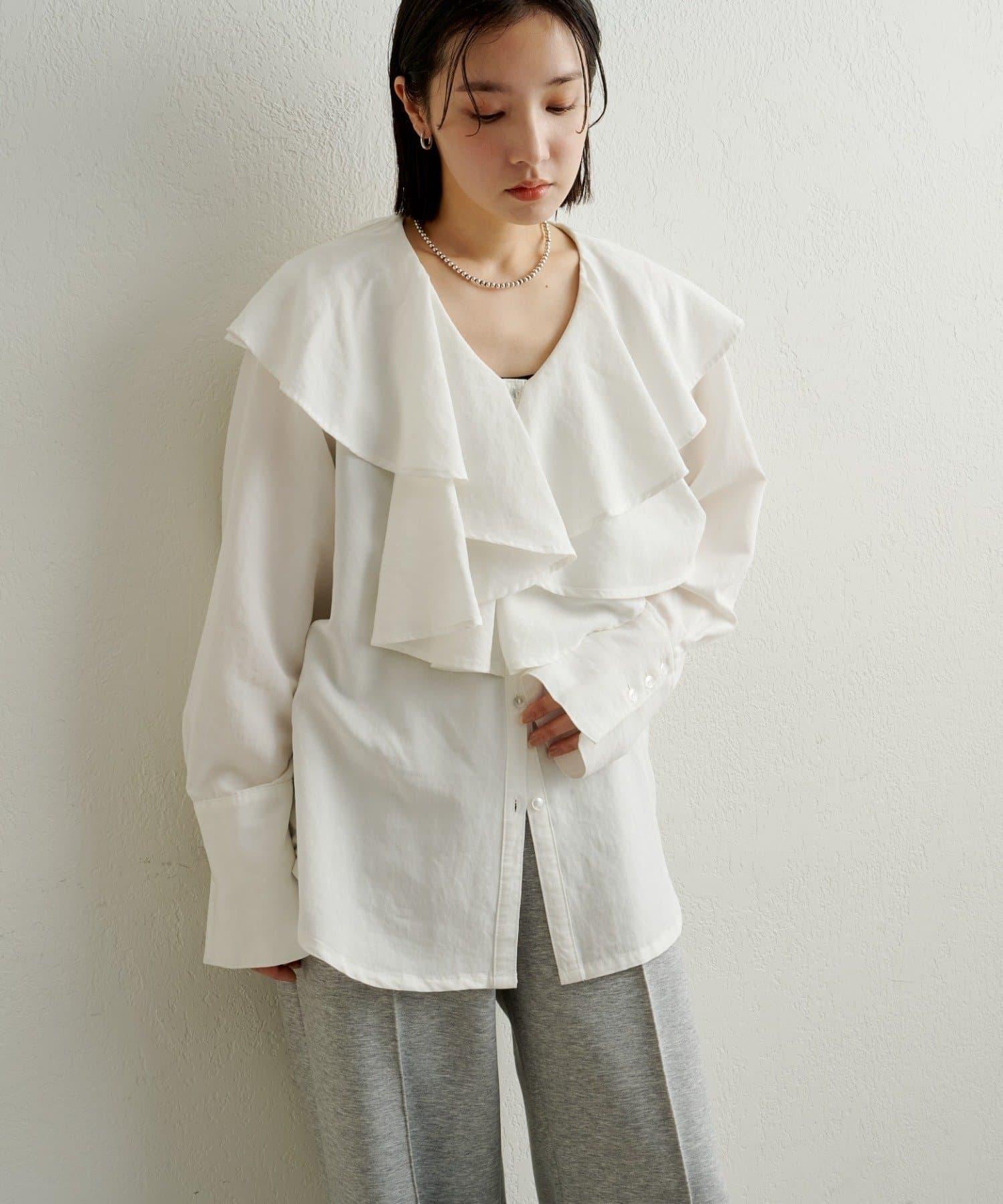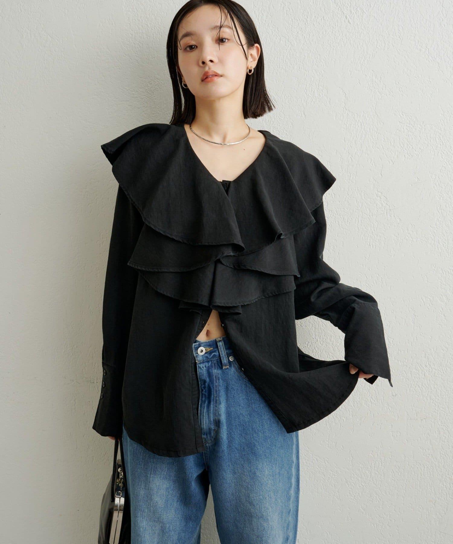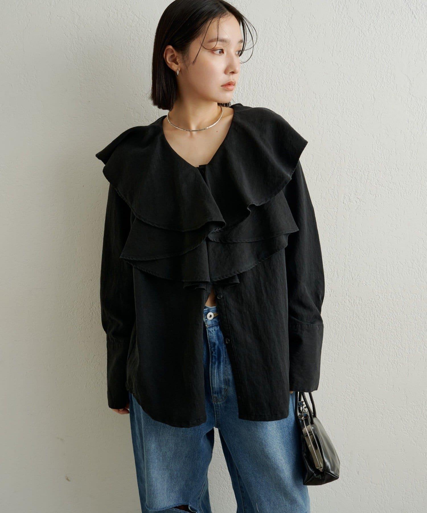 只有一件單品!褶邊襯衫,佔據中心位置。