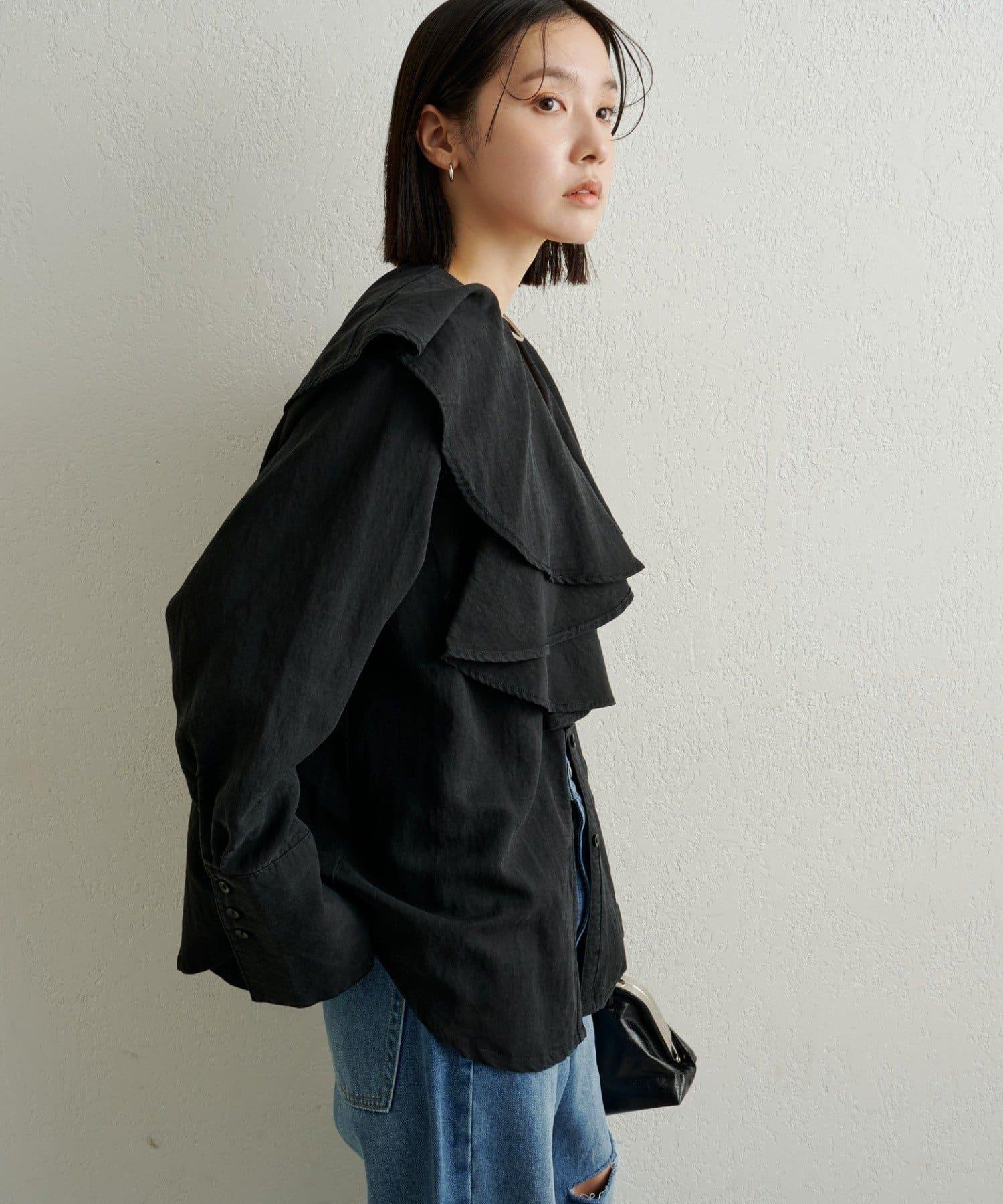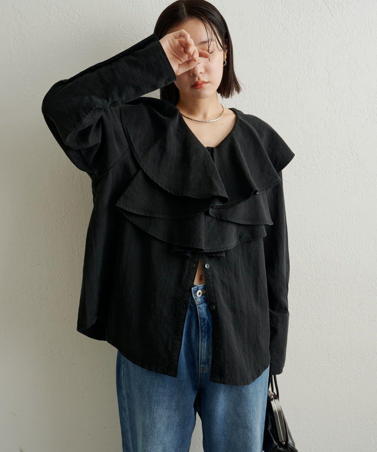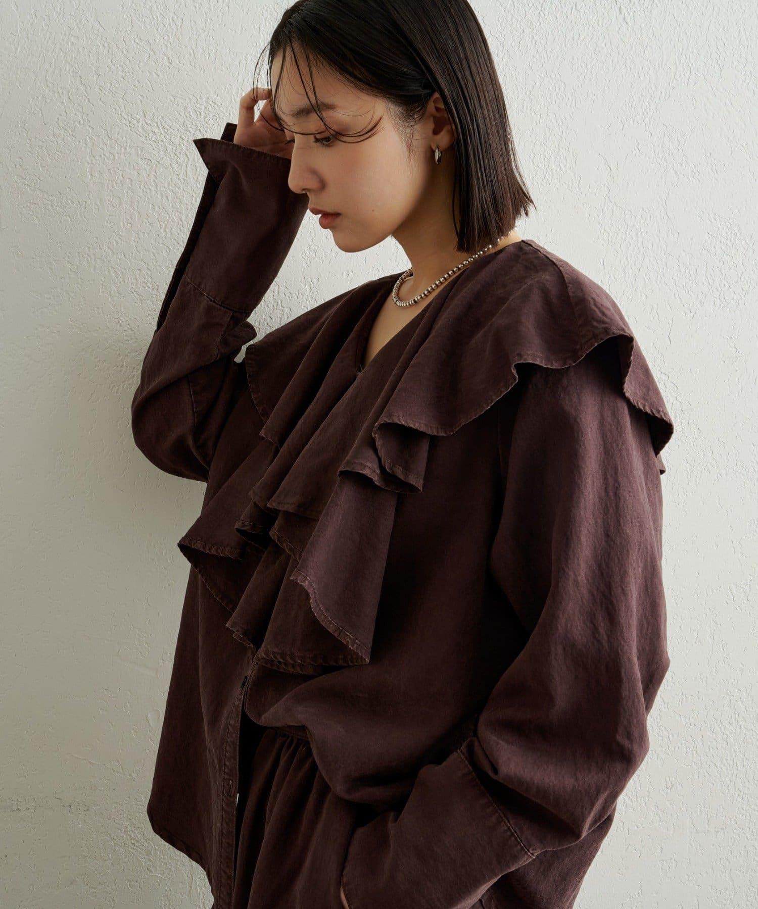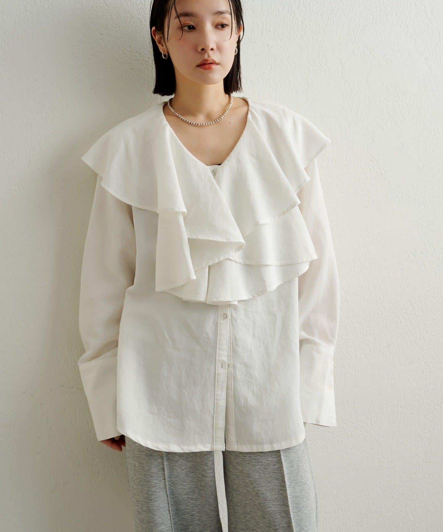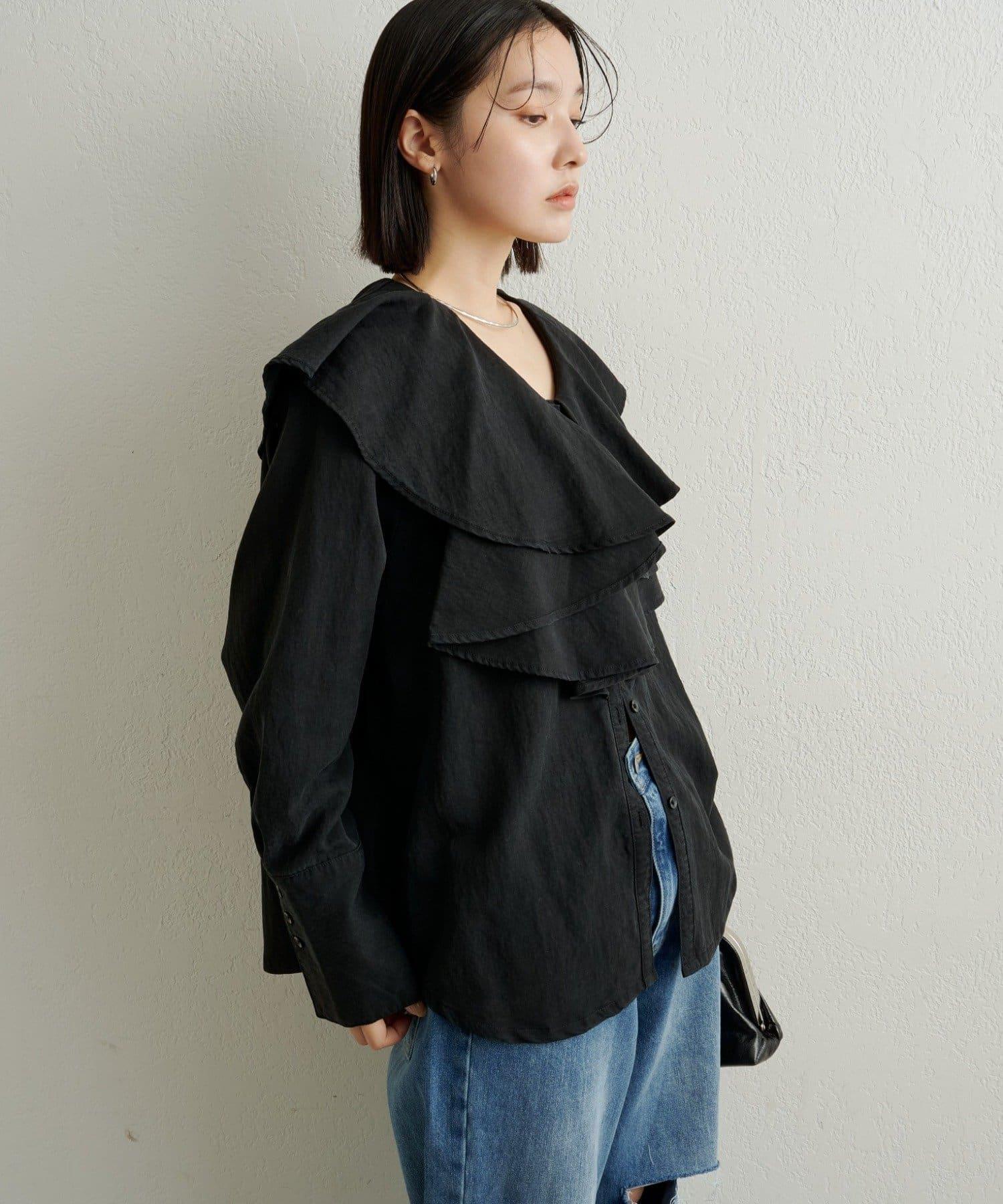 只有一件單品!褶邊襯衫,佔據中心位置。