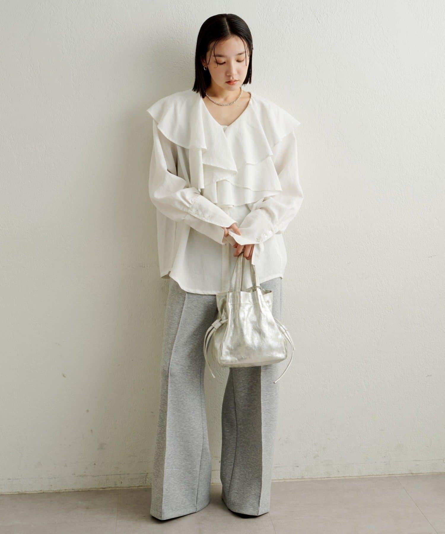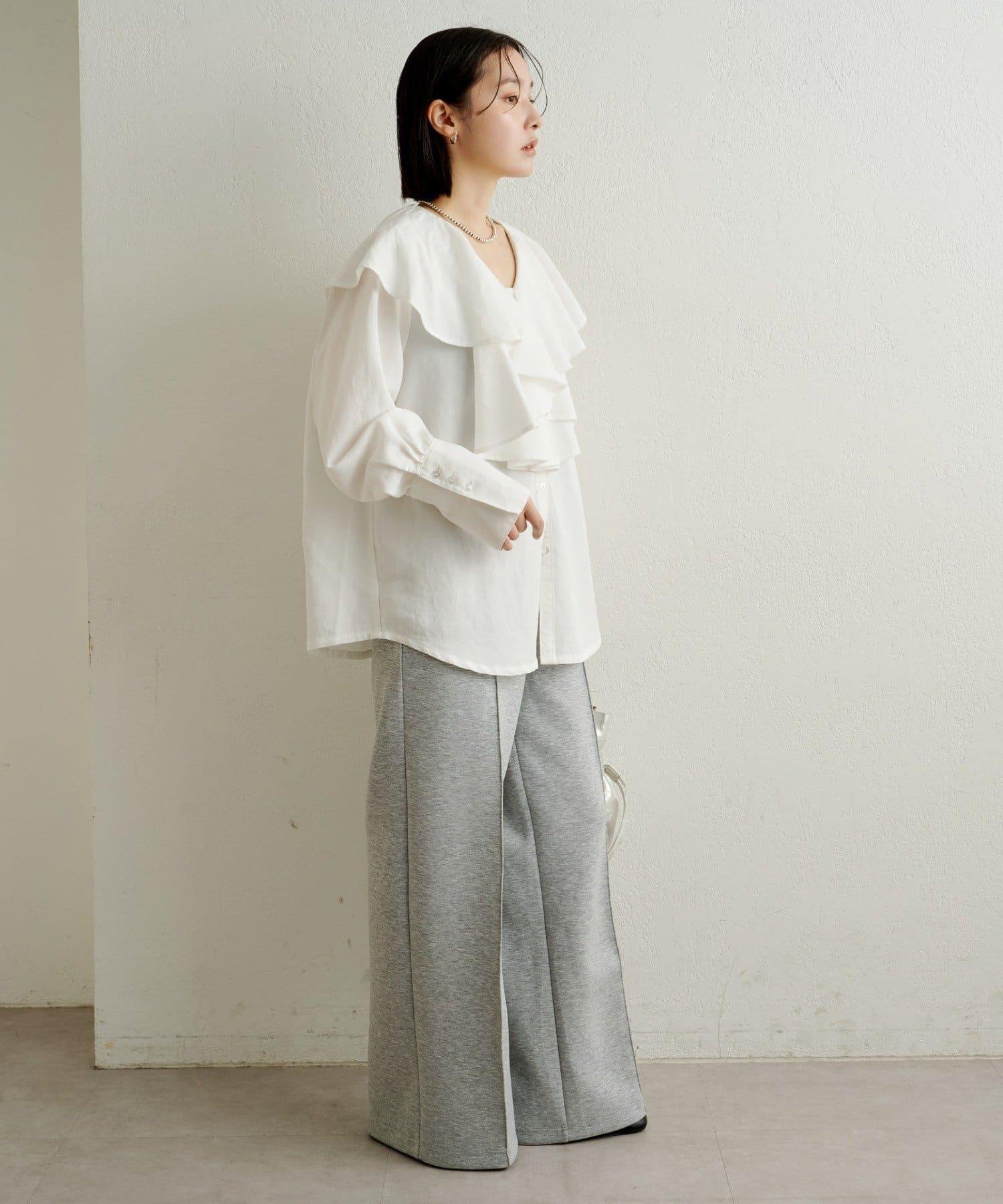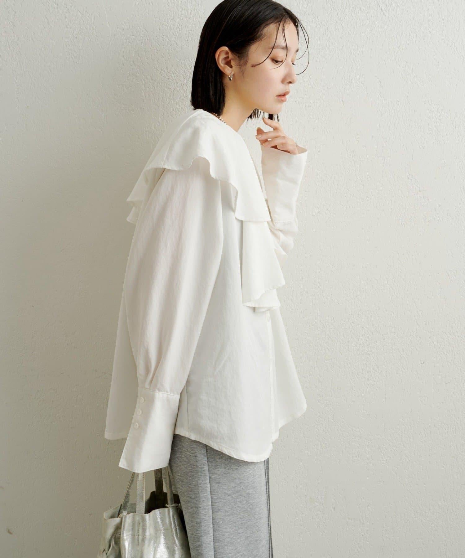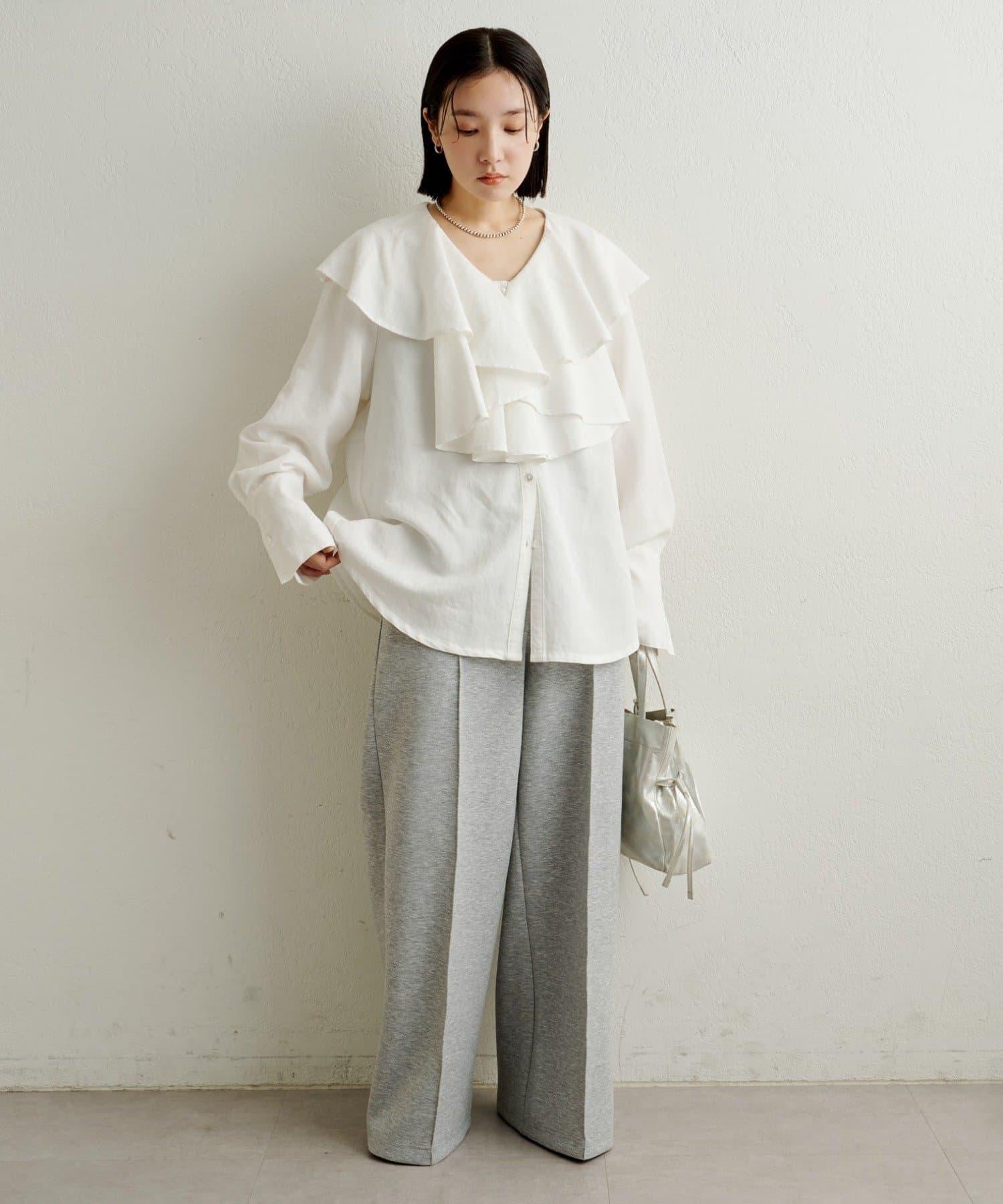 只有一件單品!褶邊襯衫,佔據中心位置。