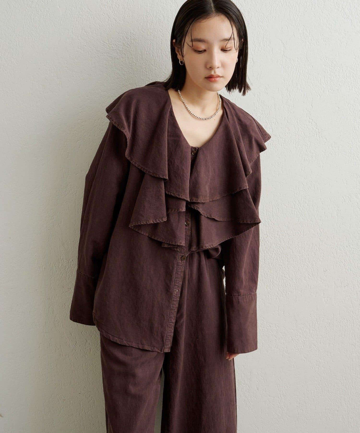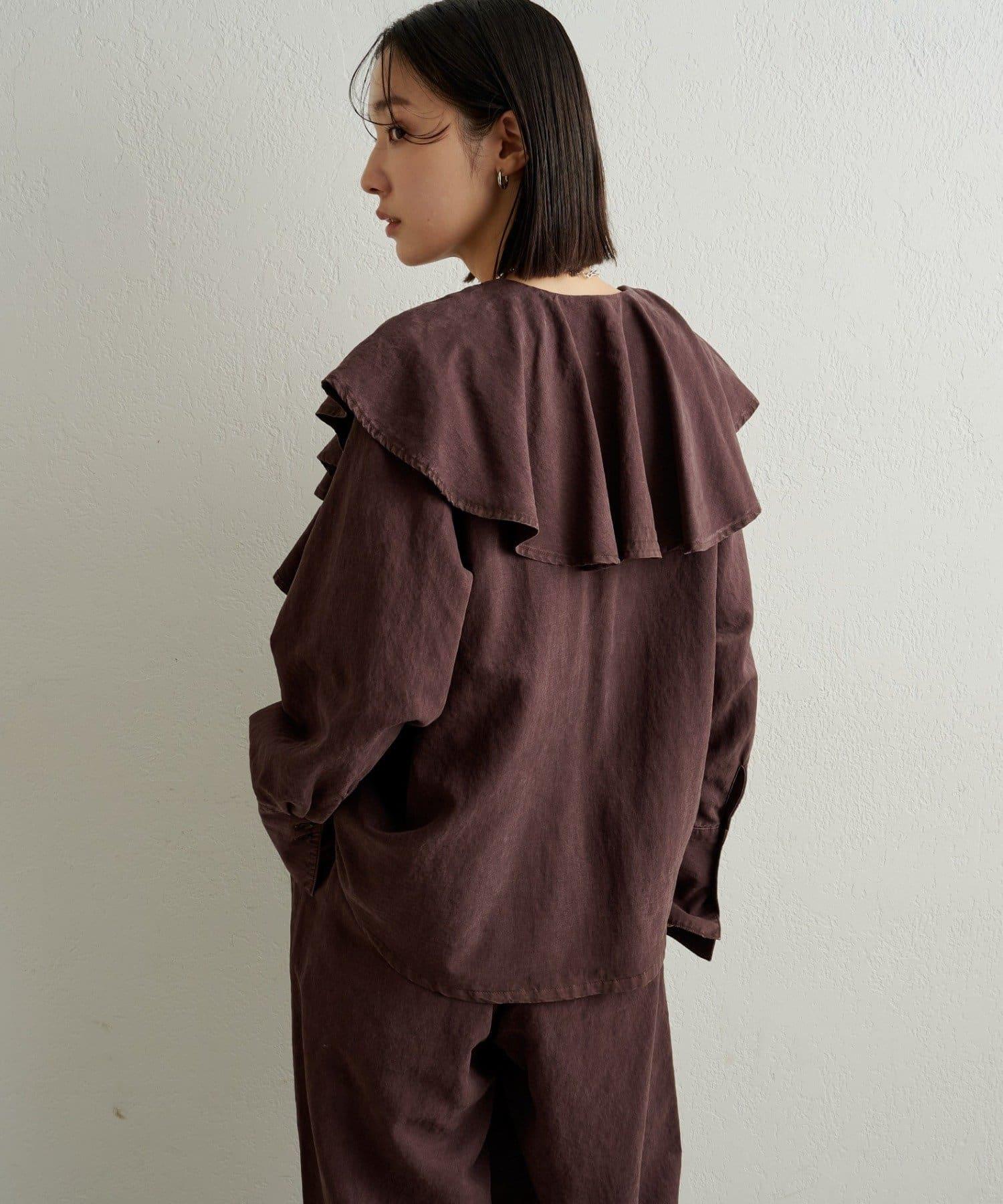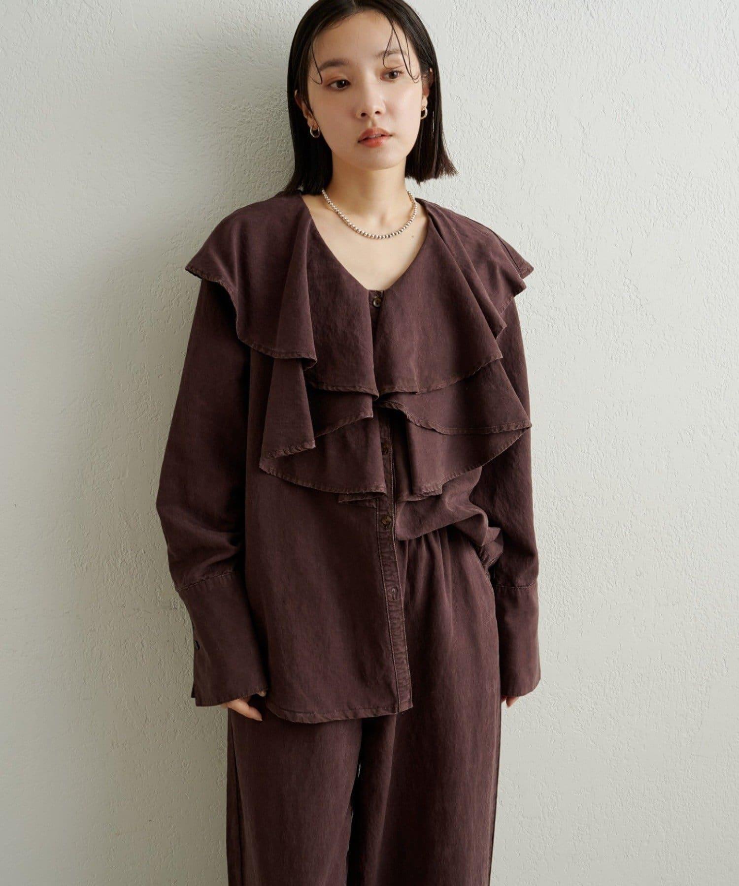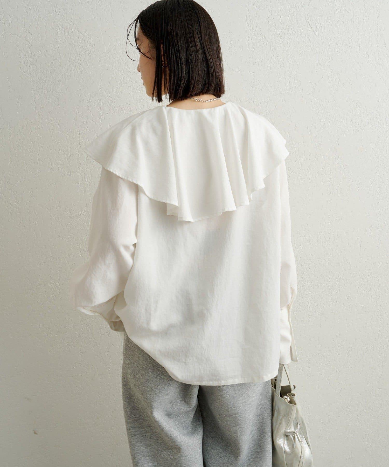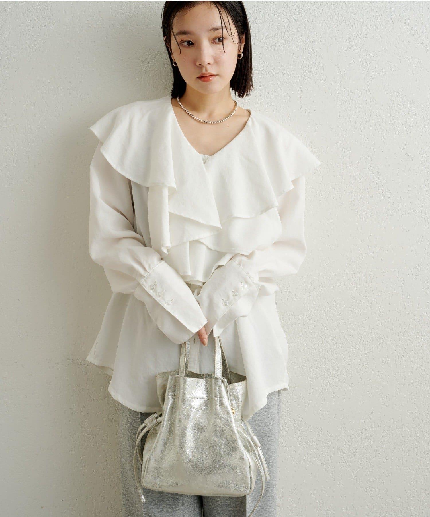只有一件單品!褶邊襯衫,佔據中心位置。