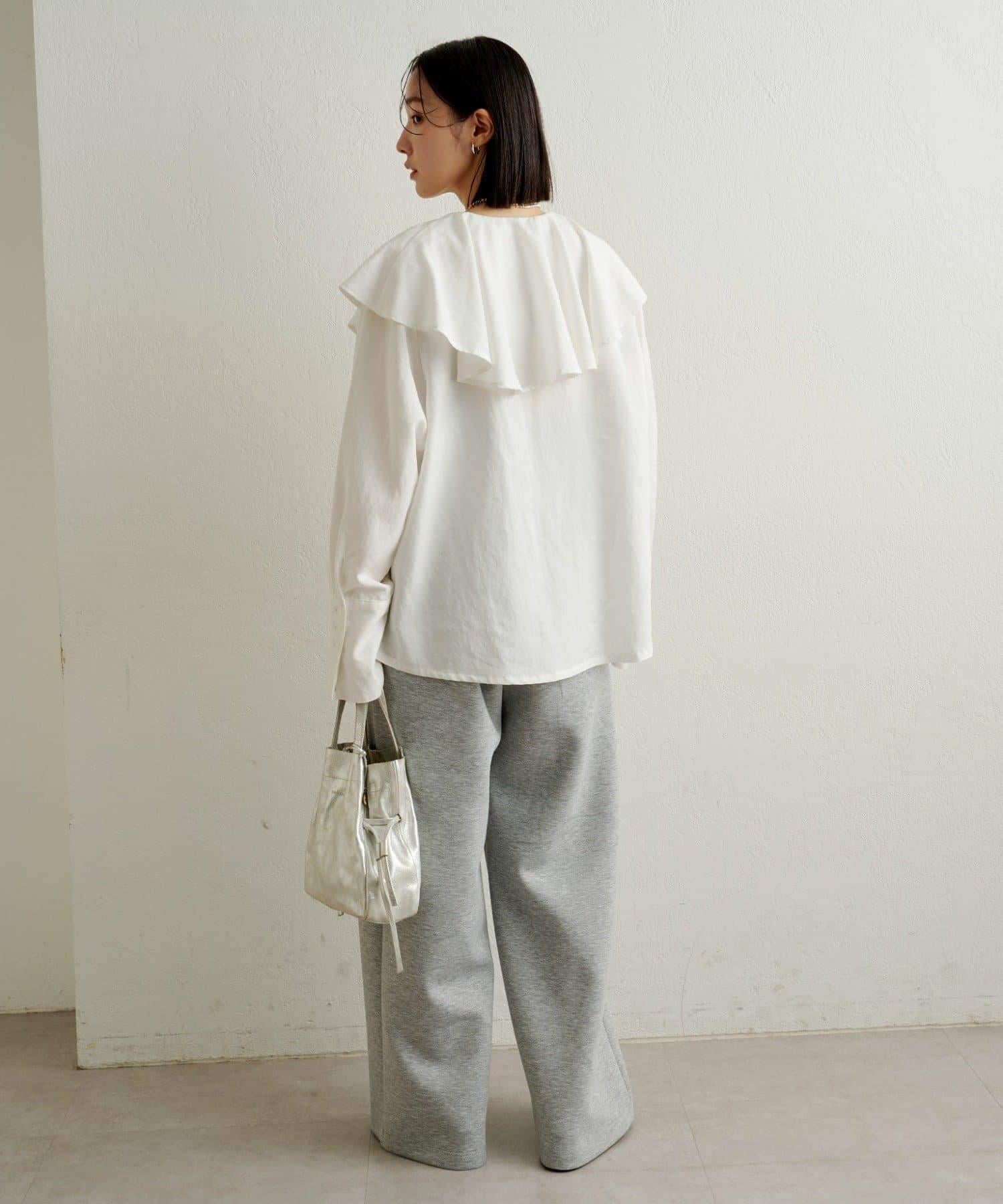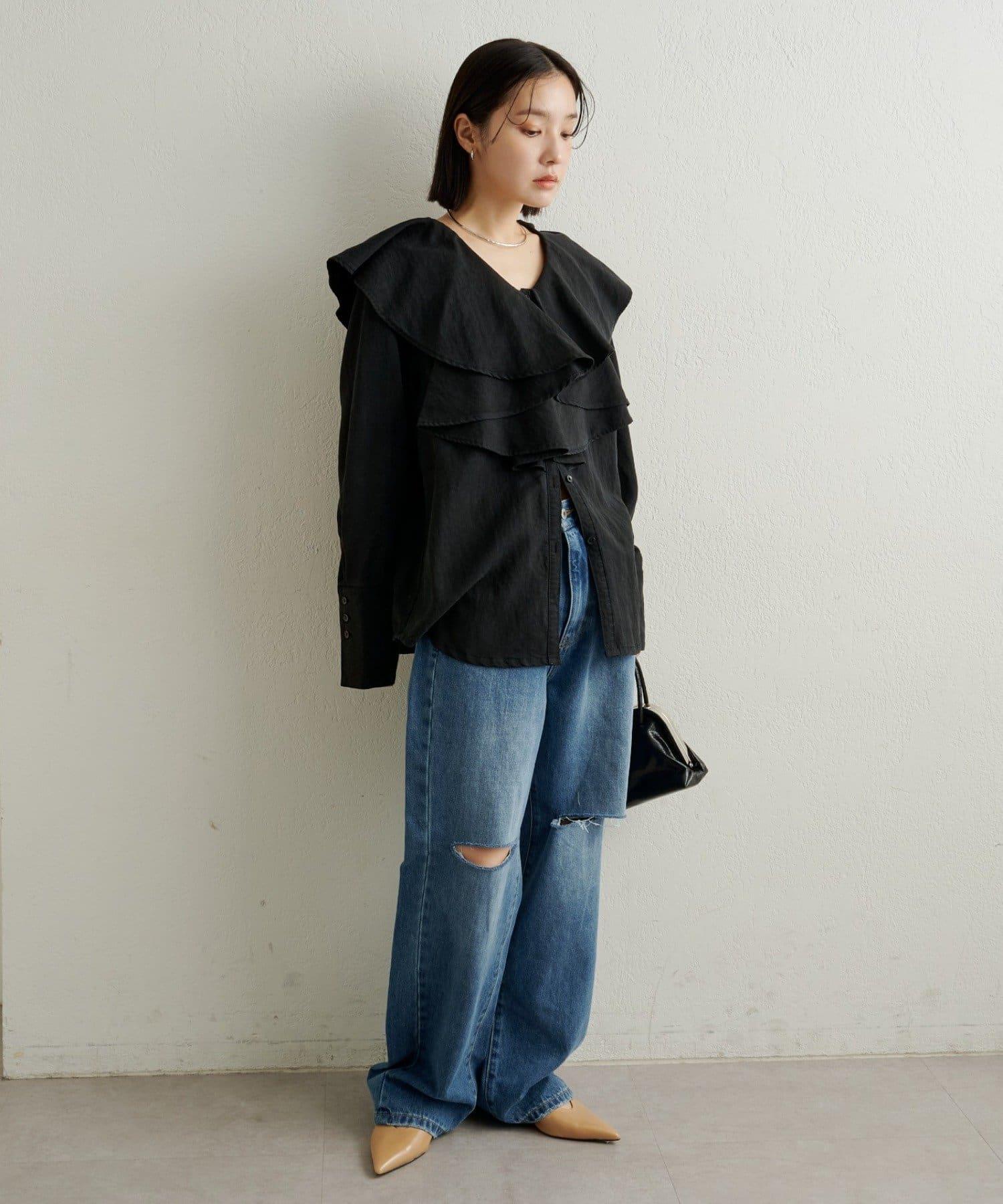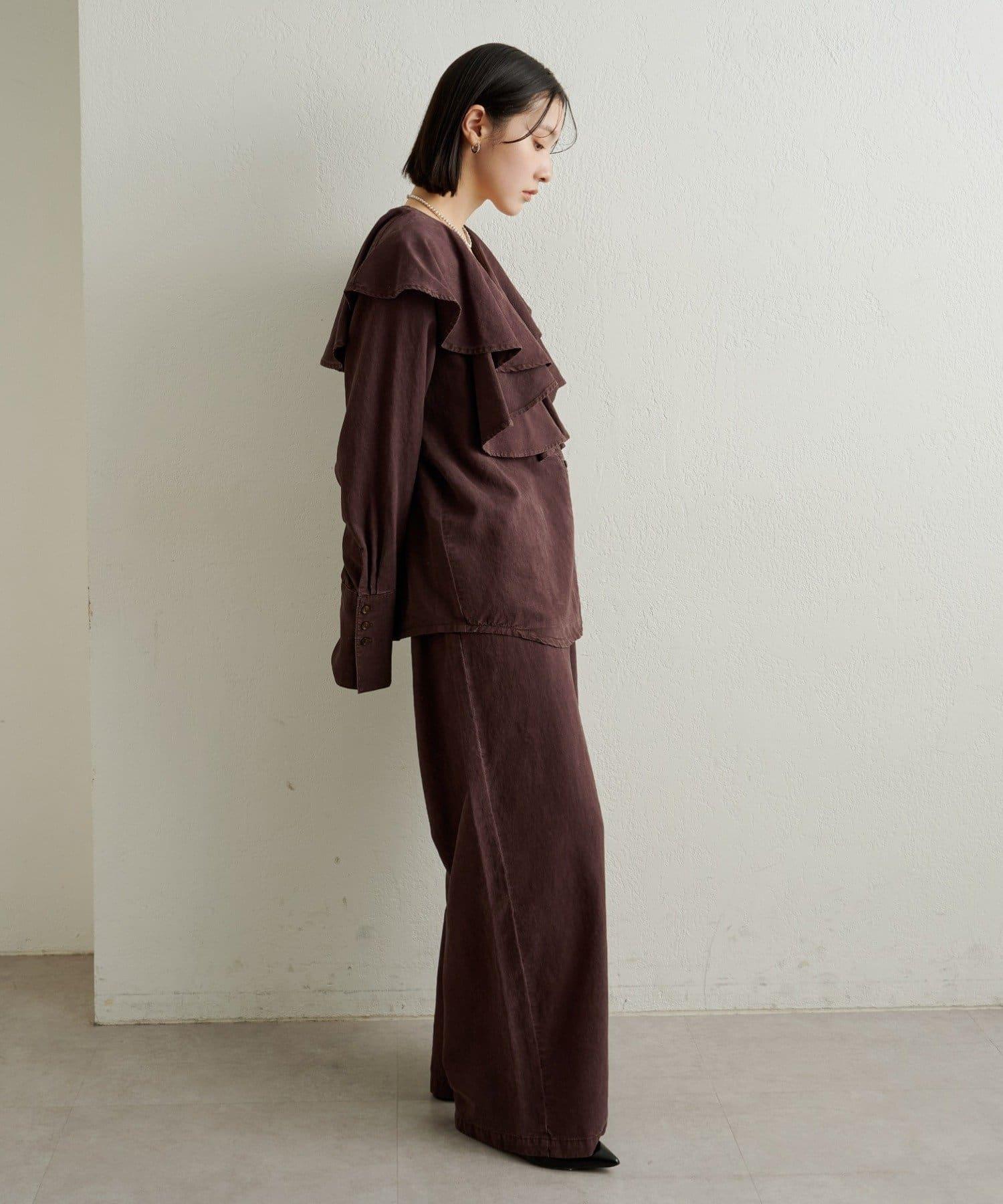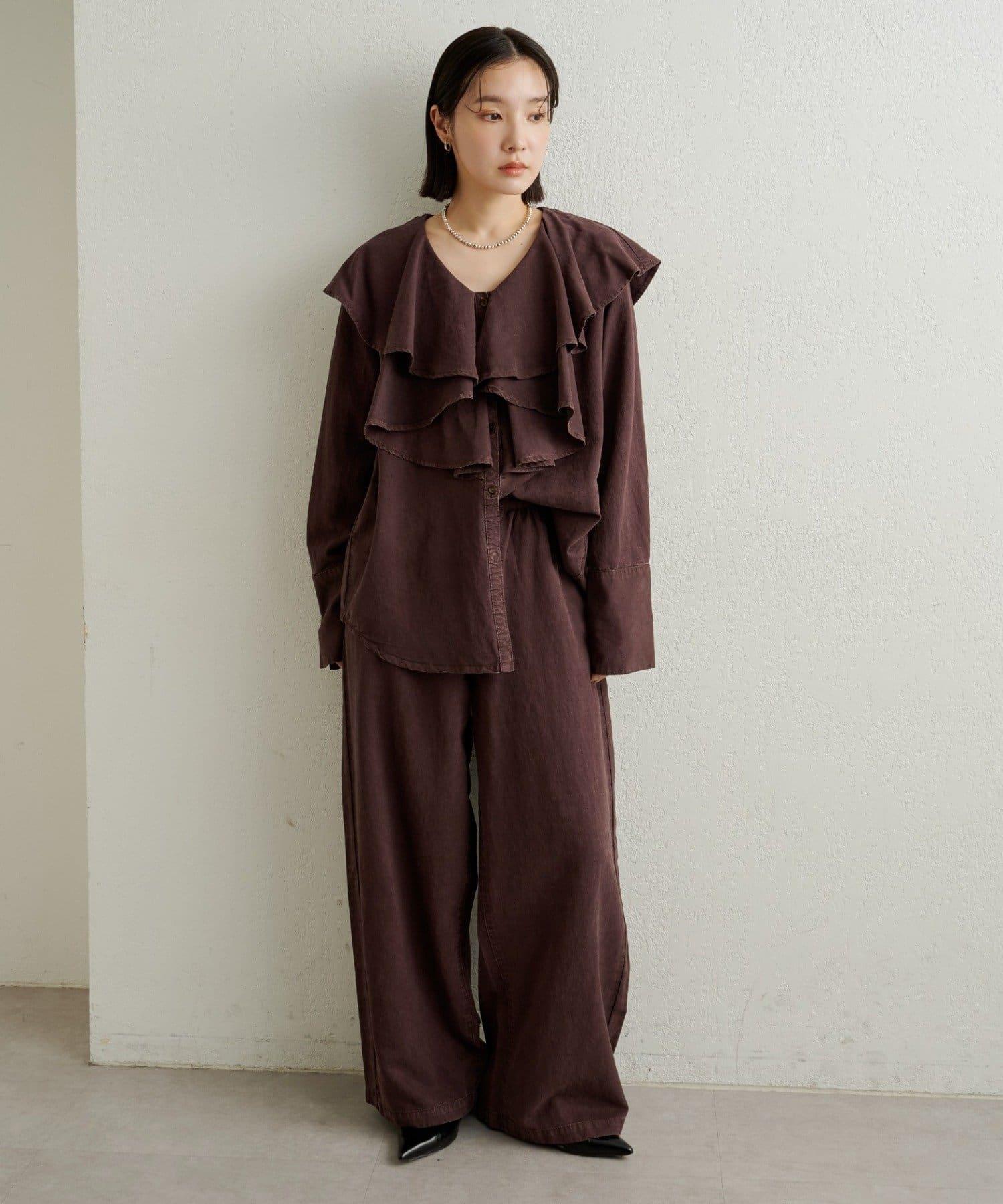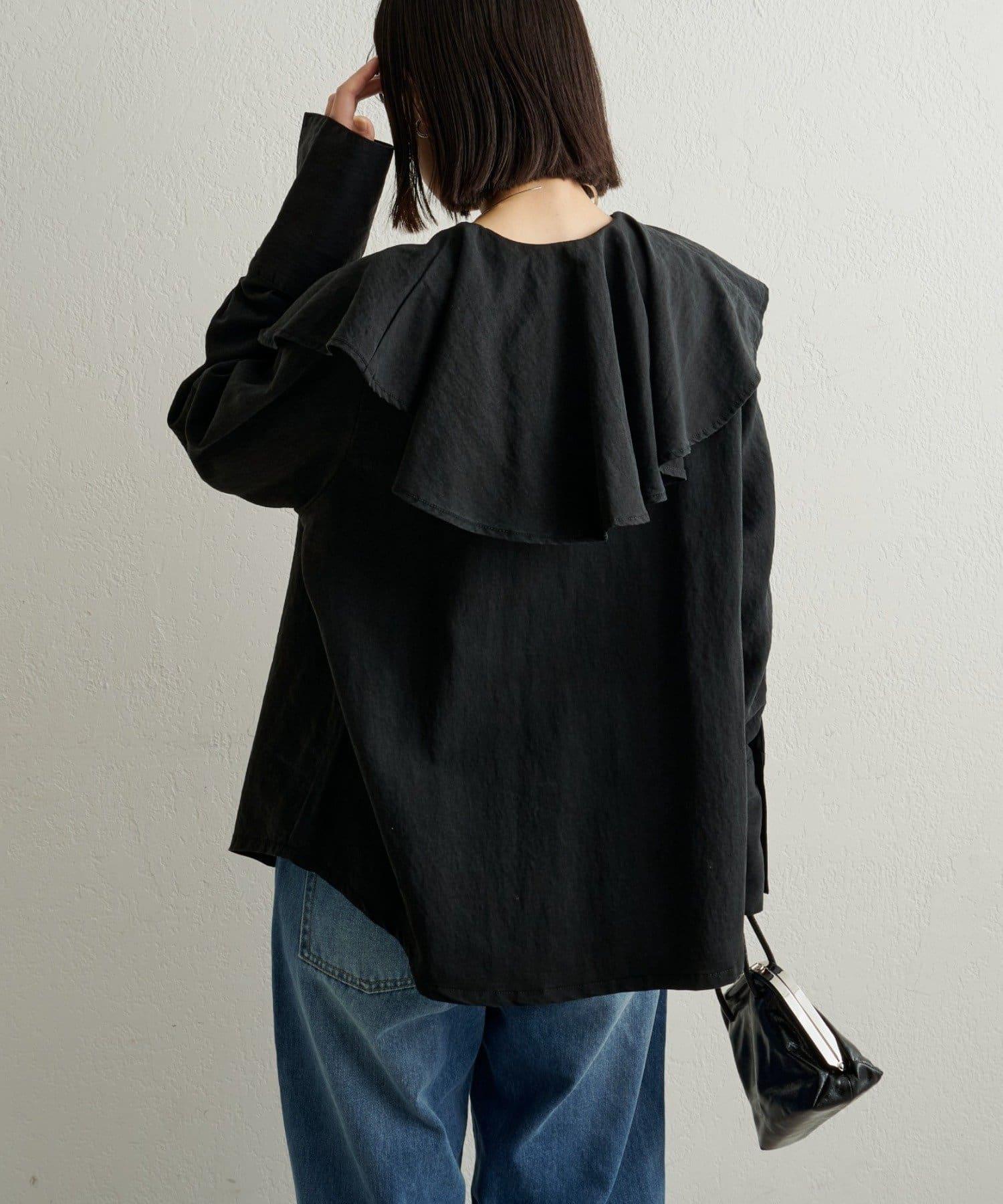只有一件單品!褶邊襯衫,佔據中心位置。
