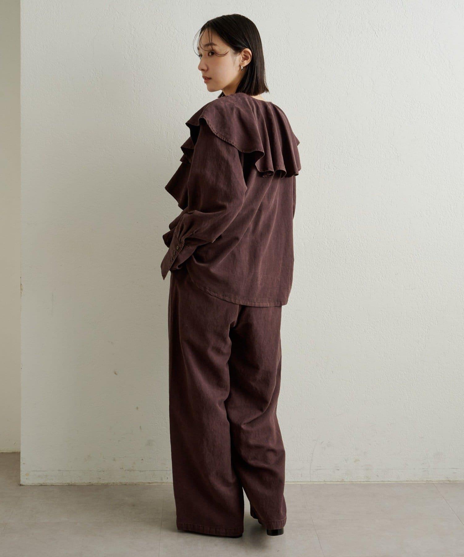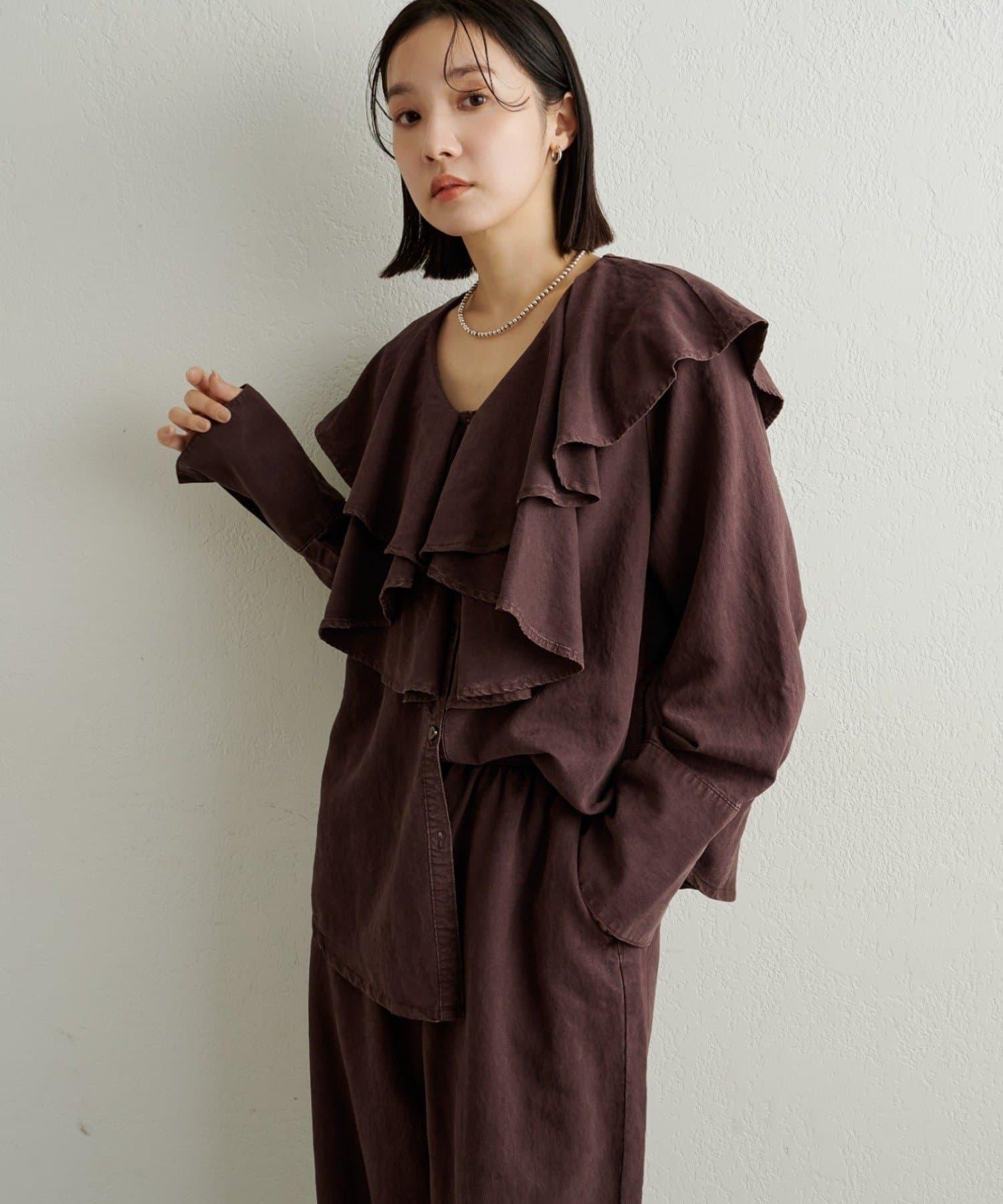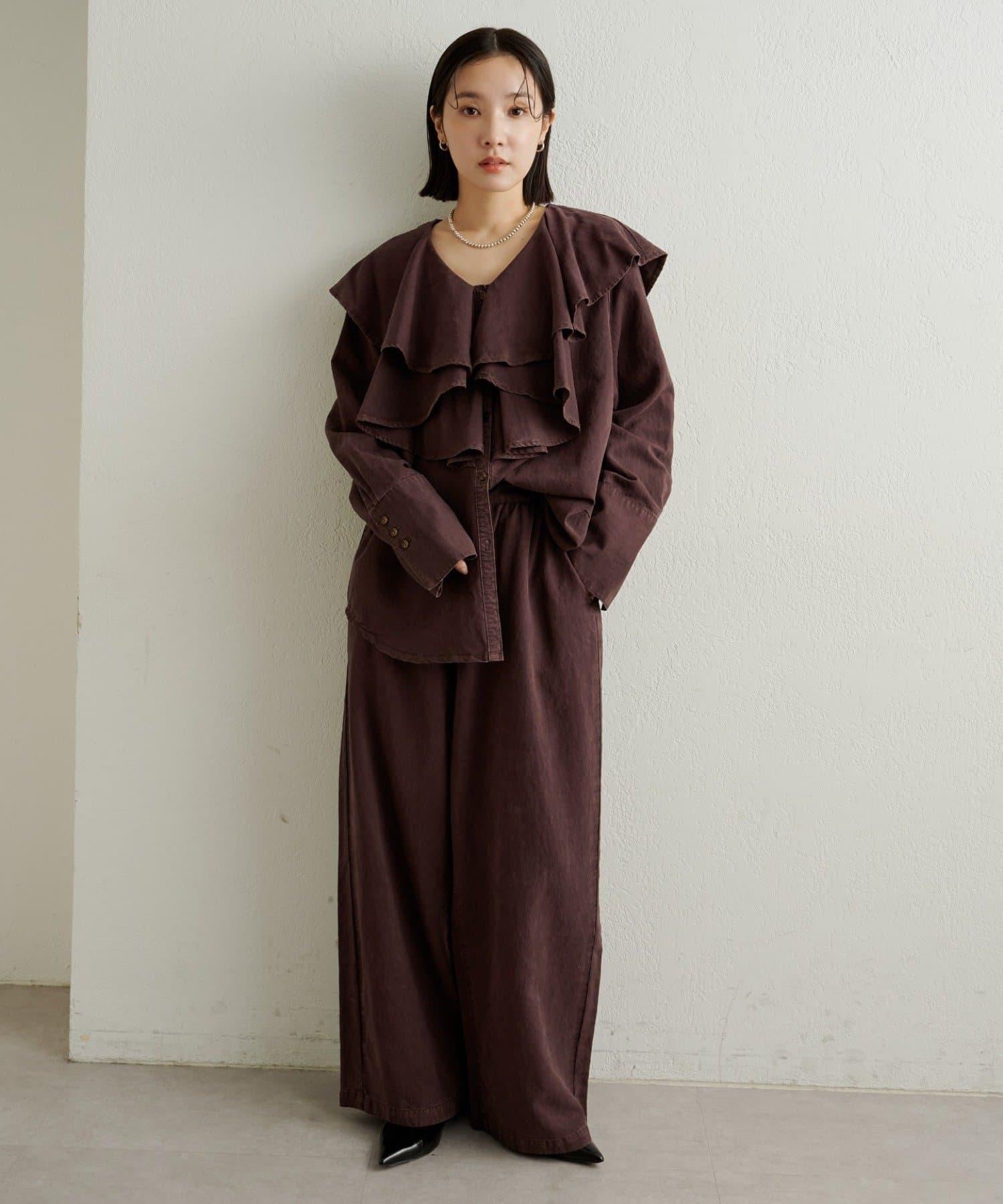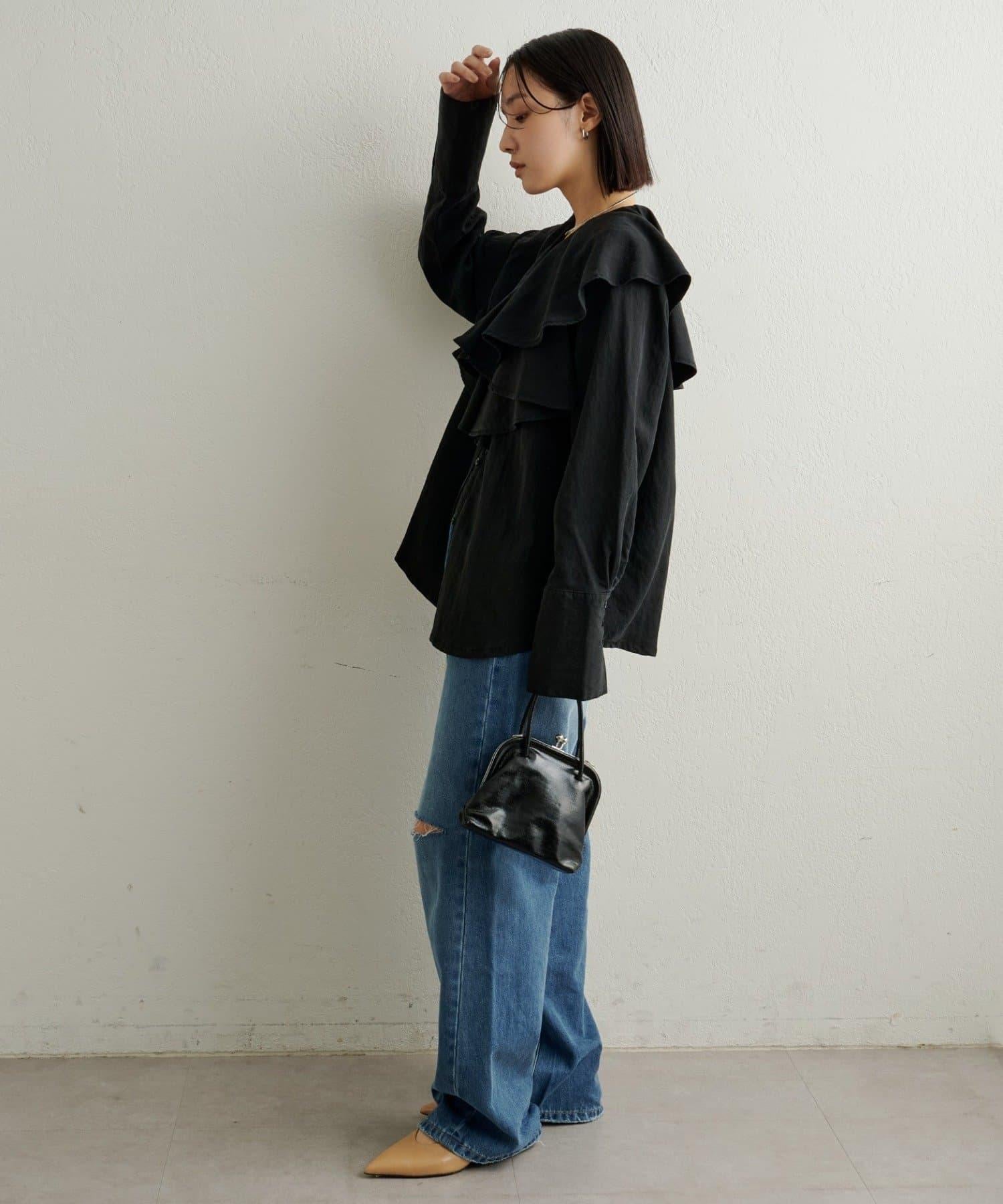只有一件單品!褶邊襯衫,佔據中心位置。