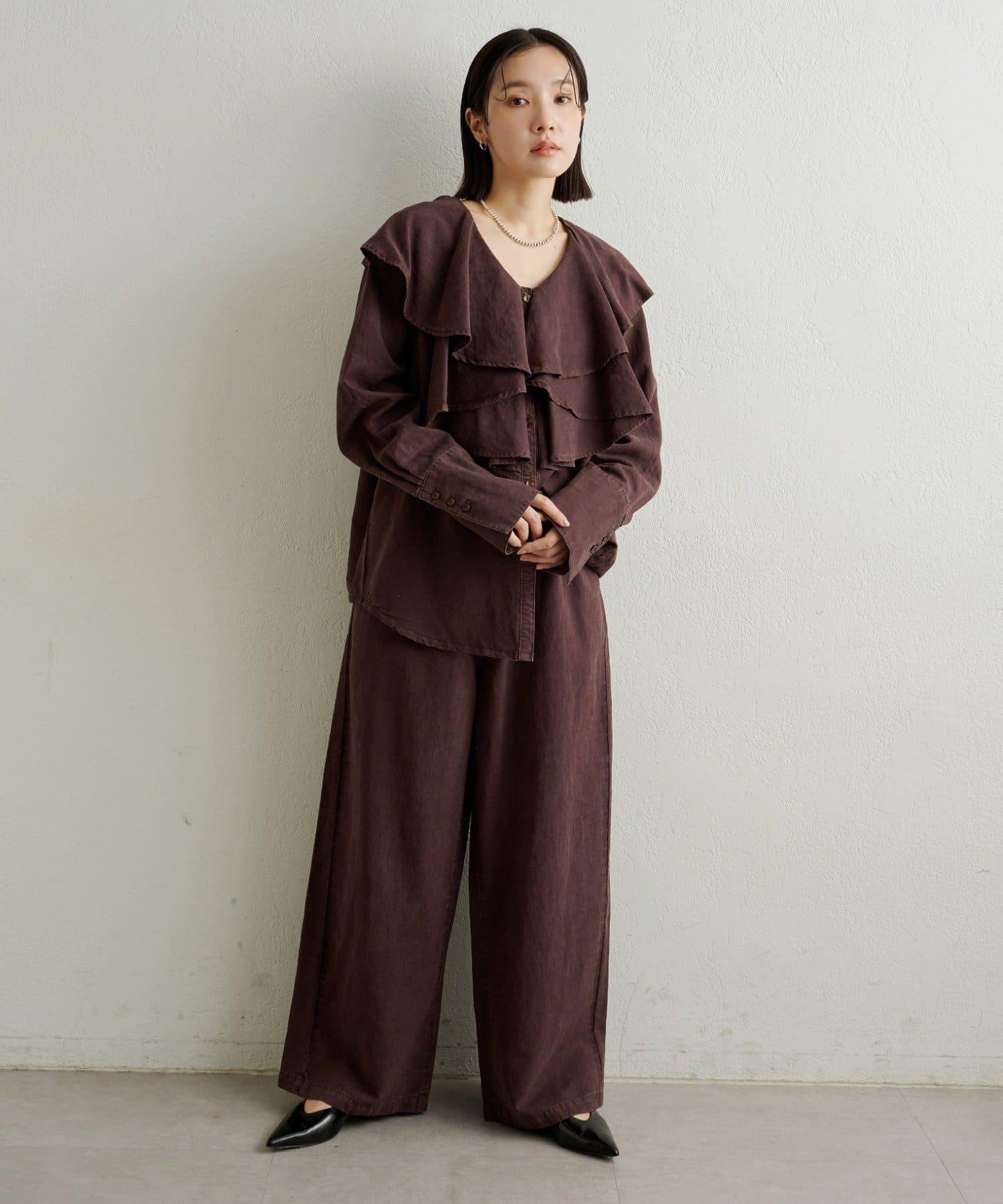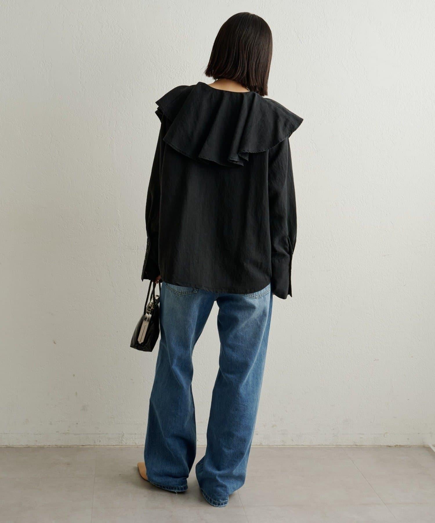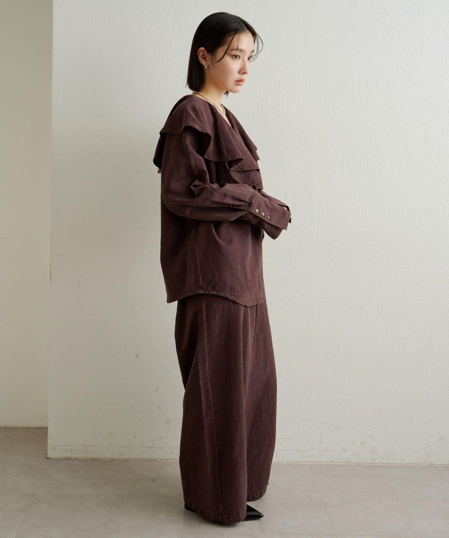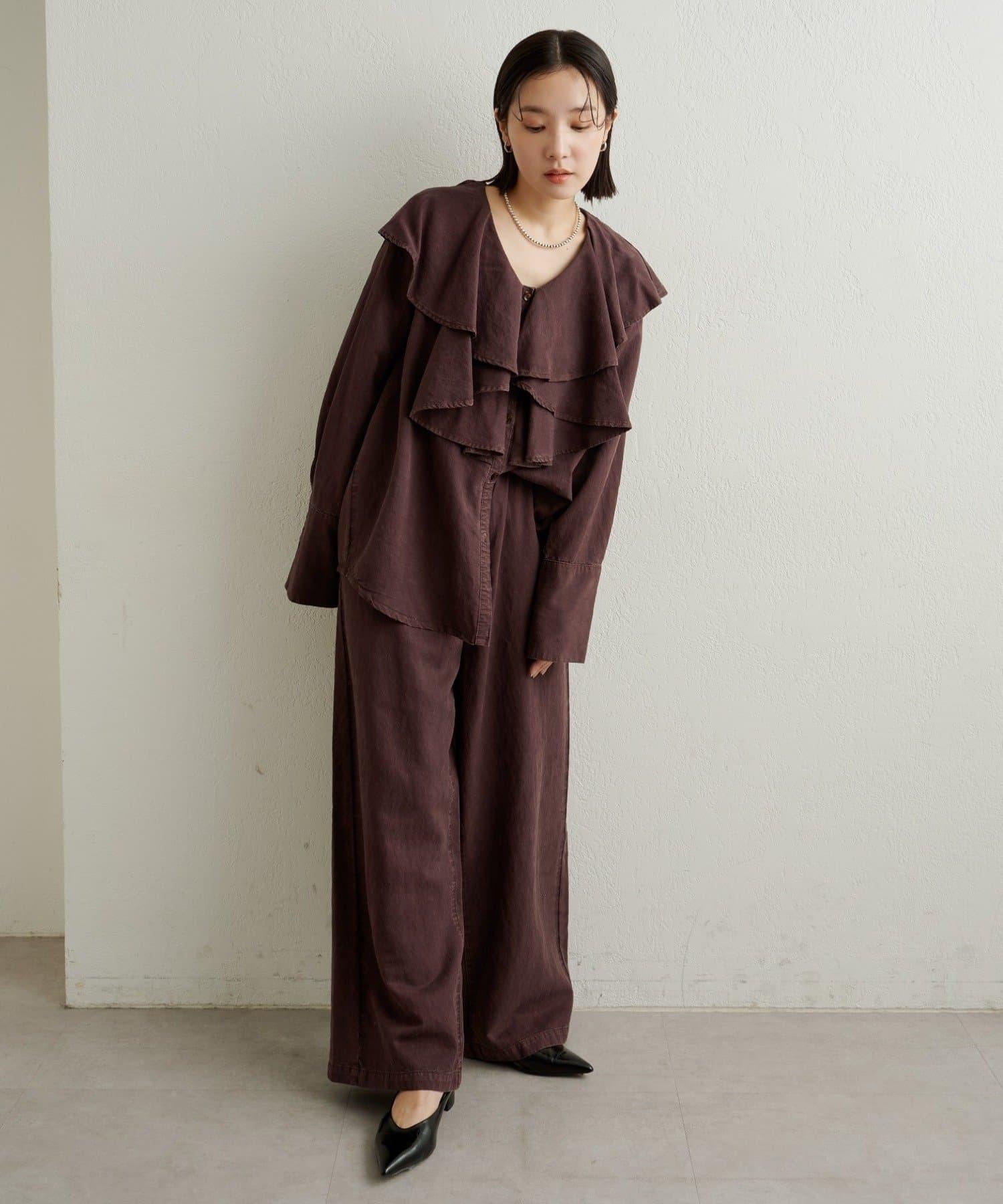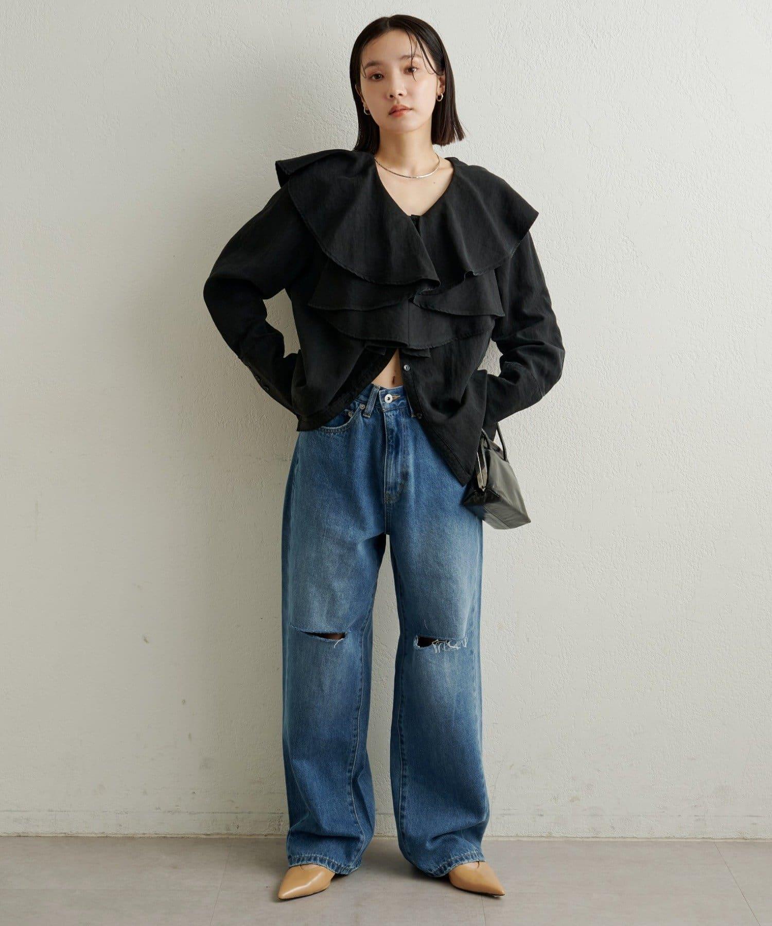 只有一件單品!褶邊襯衫,佔據中心位置。