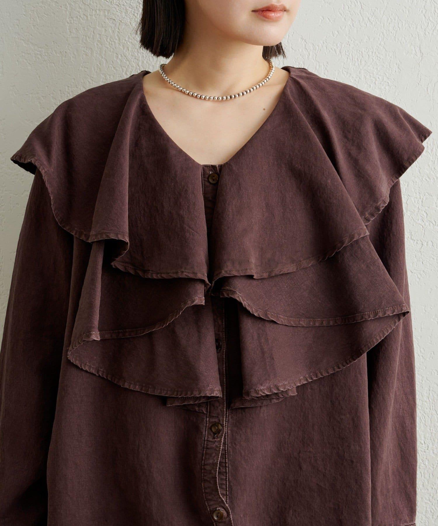 【可搭配套裝穿著◎】仿水洗荷葉邊襯衫