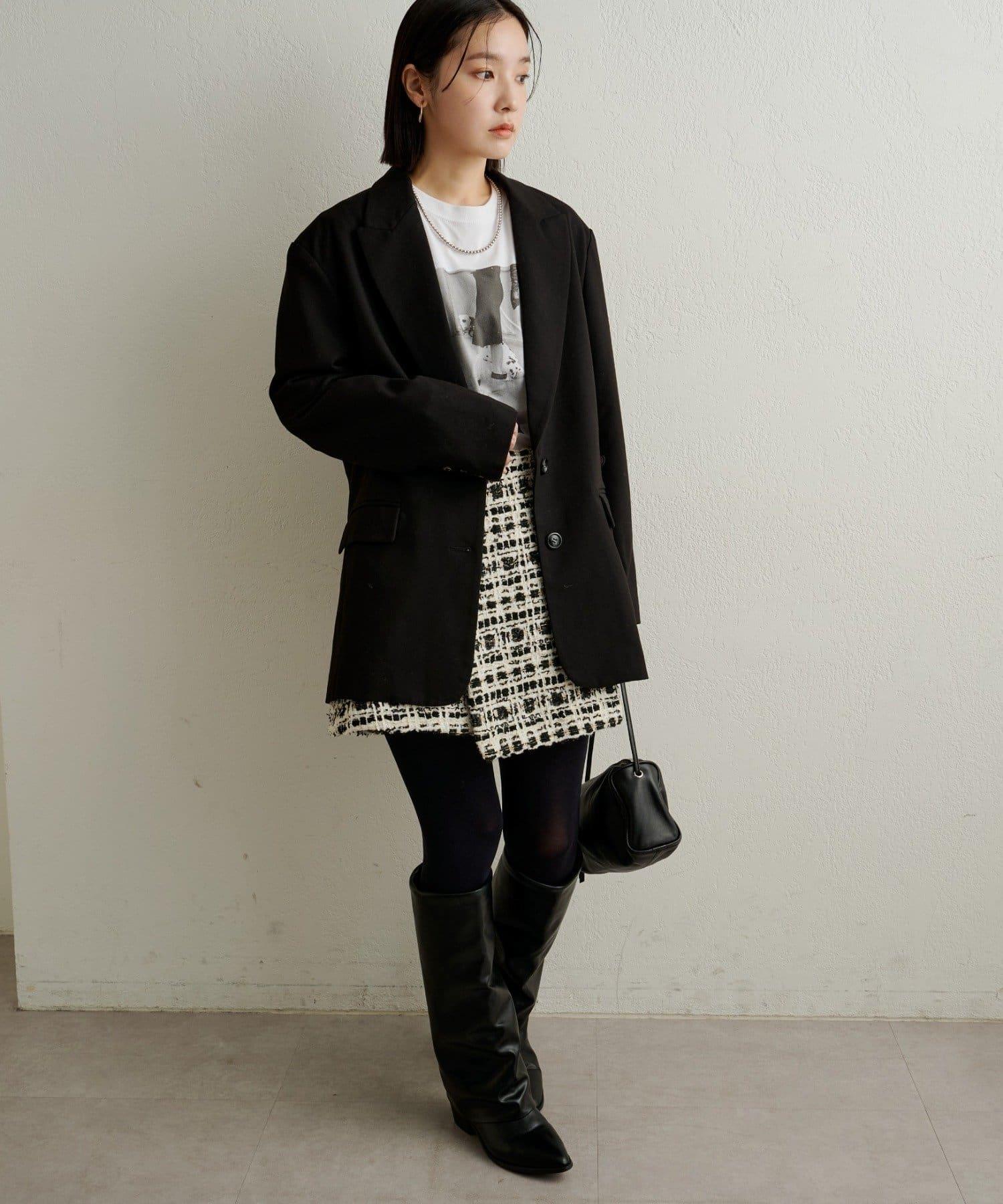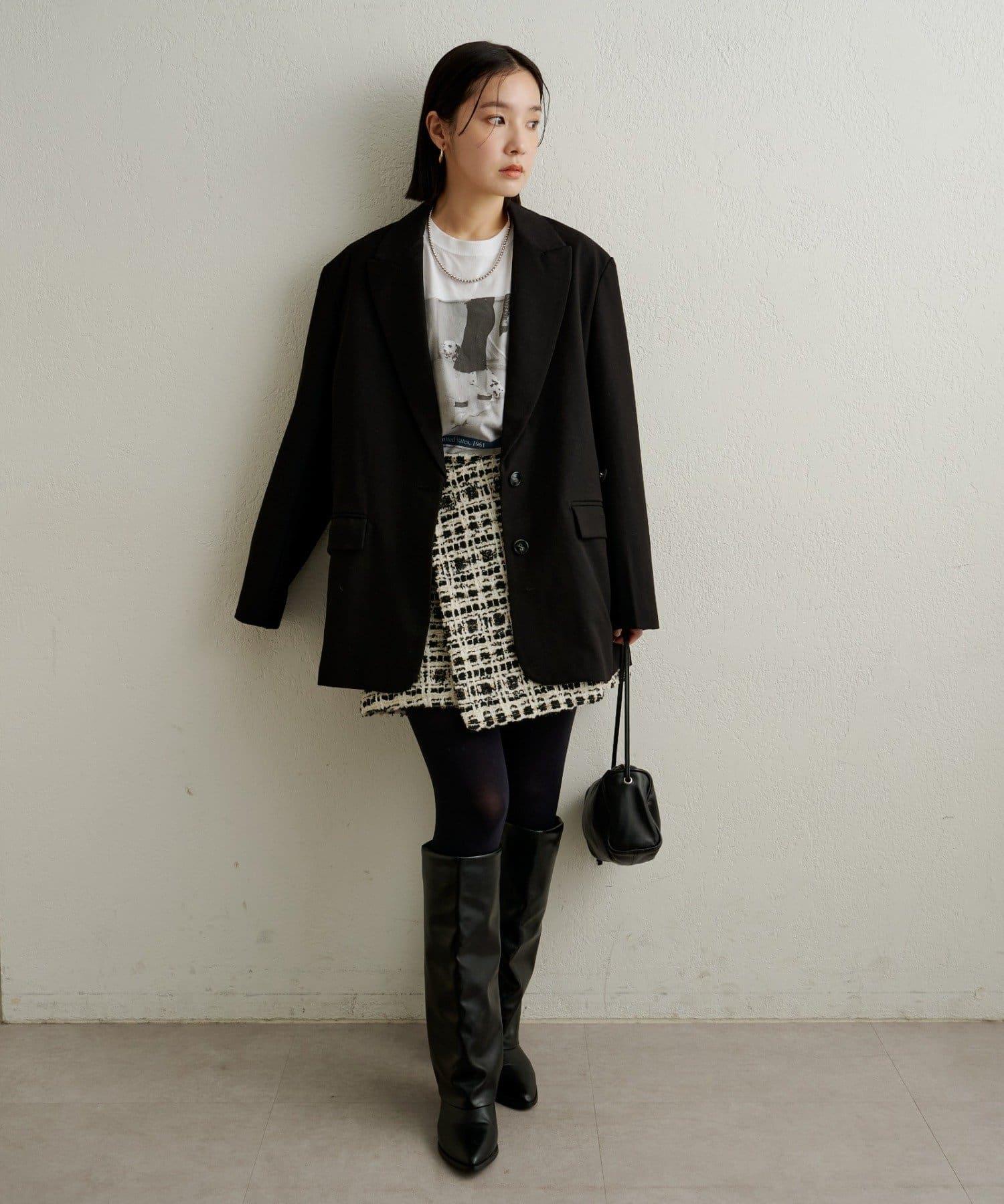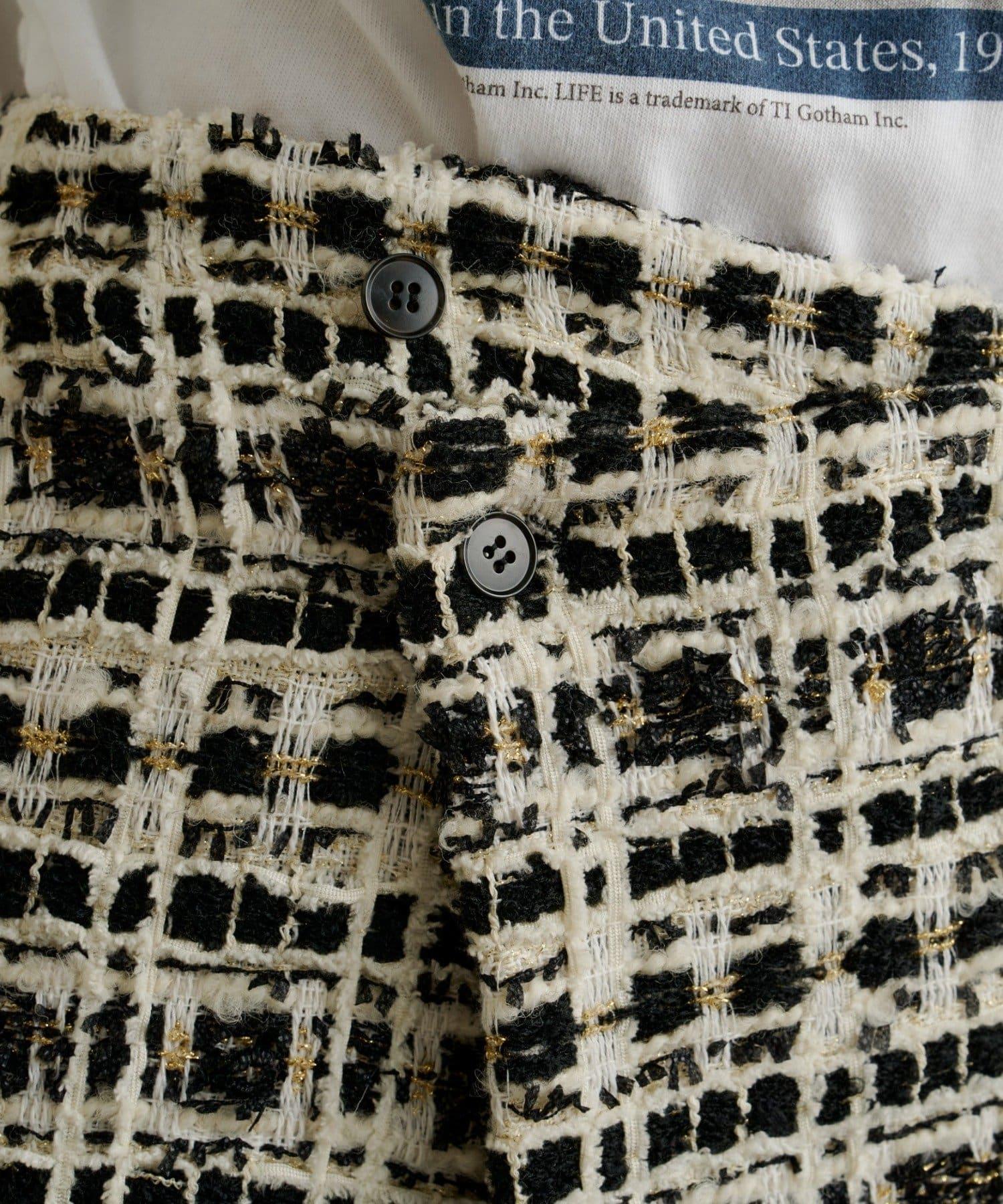 可與同材質的 "粗花呢無領夾克 "作為套裝穿著。