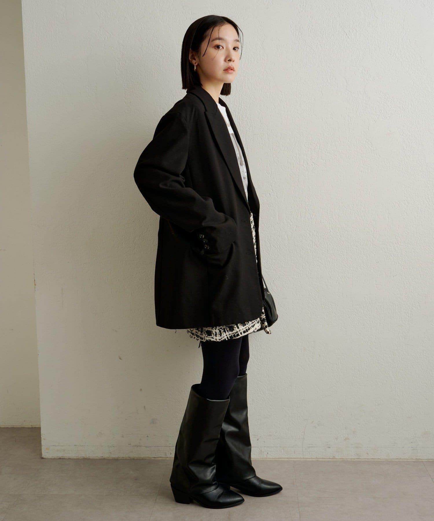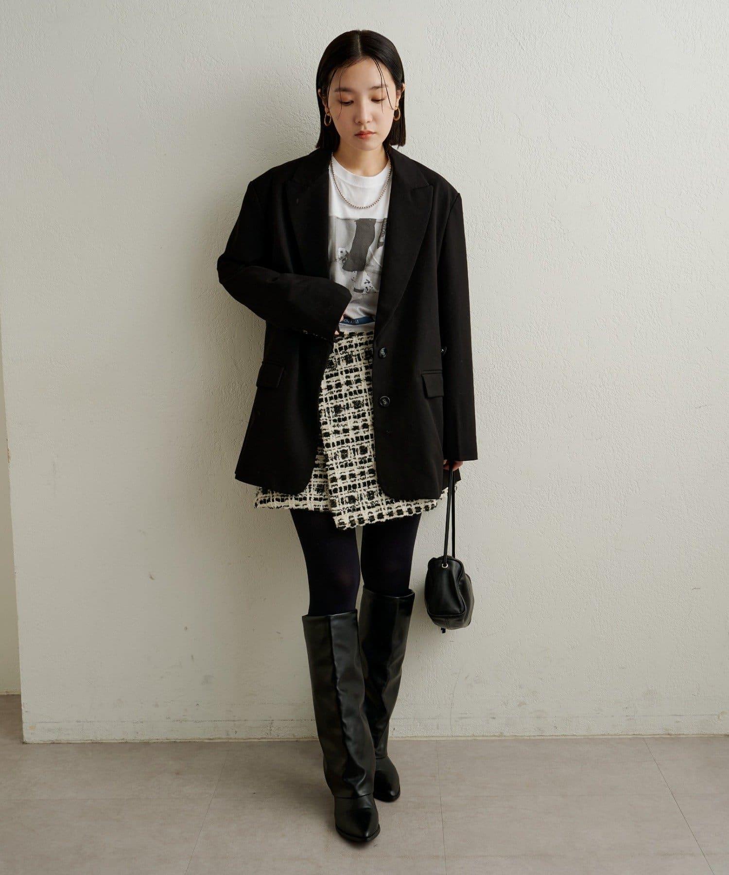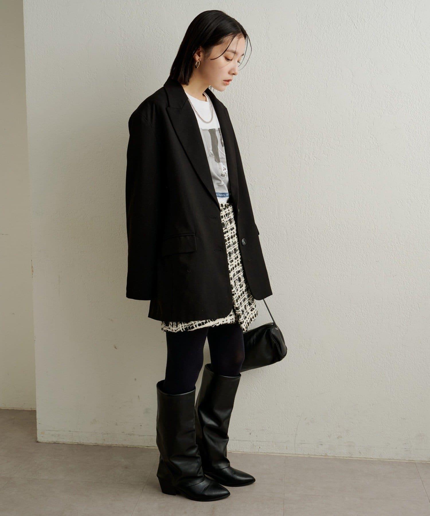 可與同材質的 "粗花呢無領夾克 "作為套裝穿著。