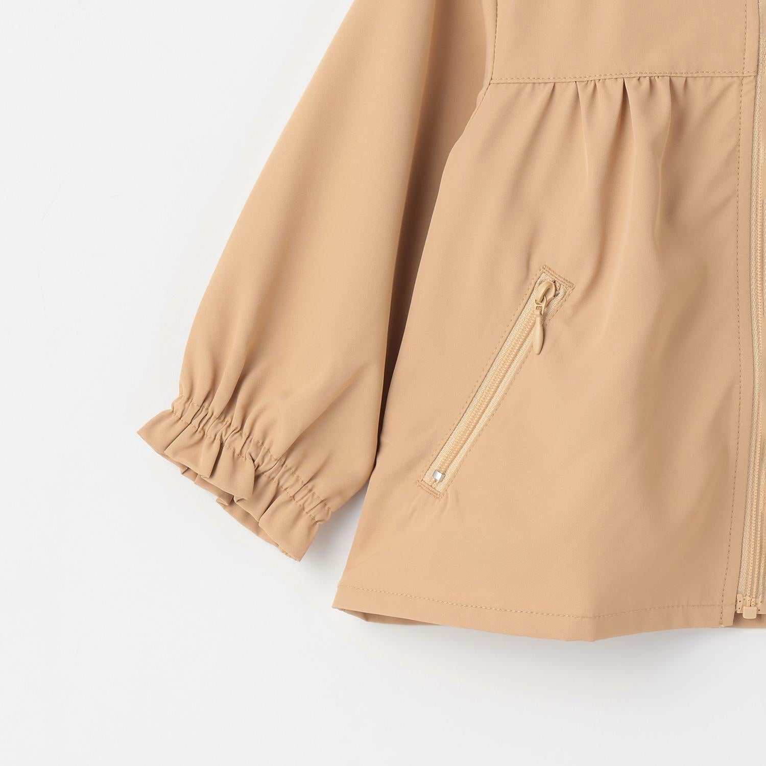 塔夫綢材質的風衣,適用於寒冷的天氣和溫差較大的環境。將左側口袋翻轉後可放入口袋,收納緊湊,符合 MIMI-chan 的俏皮風格。