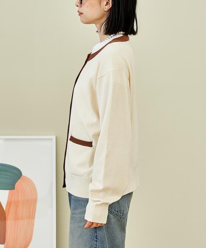 可機洗 含絲拼色針織開衫