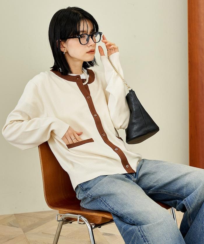開襟羊毛衫,色彩搭配優雅動人。