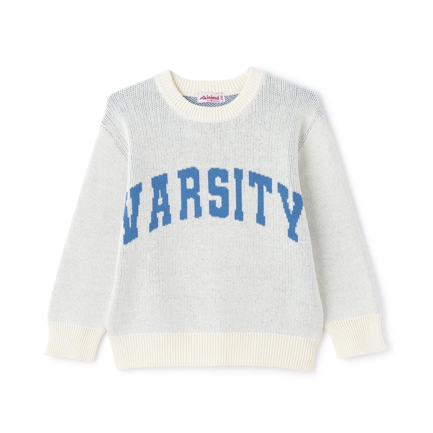 VARISTY] 復古學院風徽標圓領套頭衫] - 前幅中央的 "VARISTY "徽標營造出經典復古的感覺。