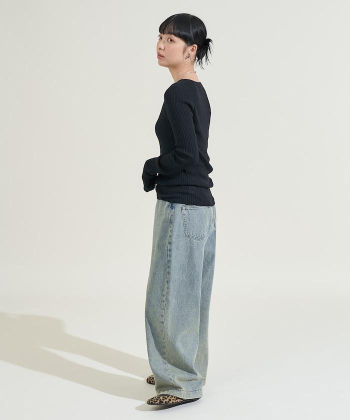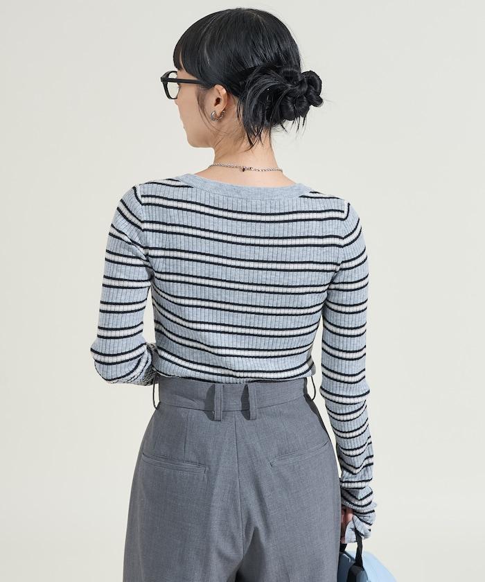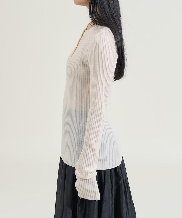 彈力羅紋針織,雞心領針織,尺寸合身。