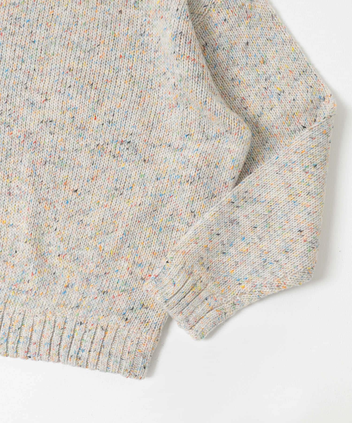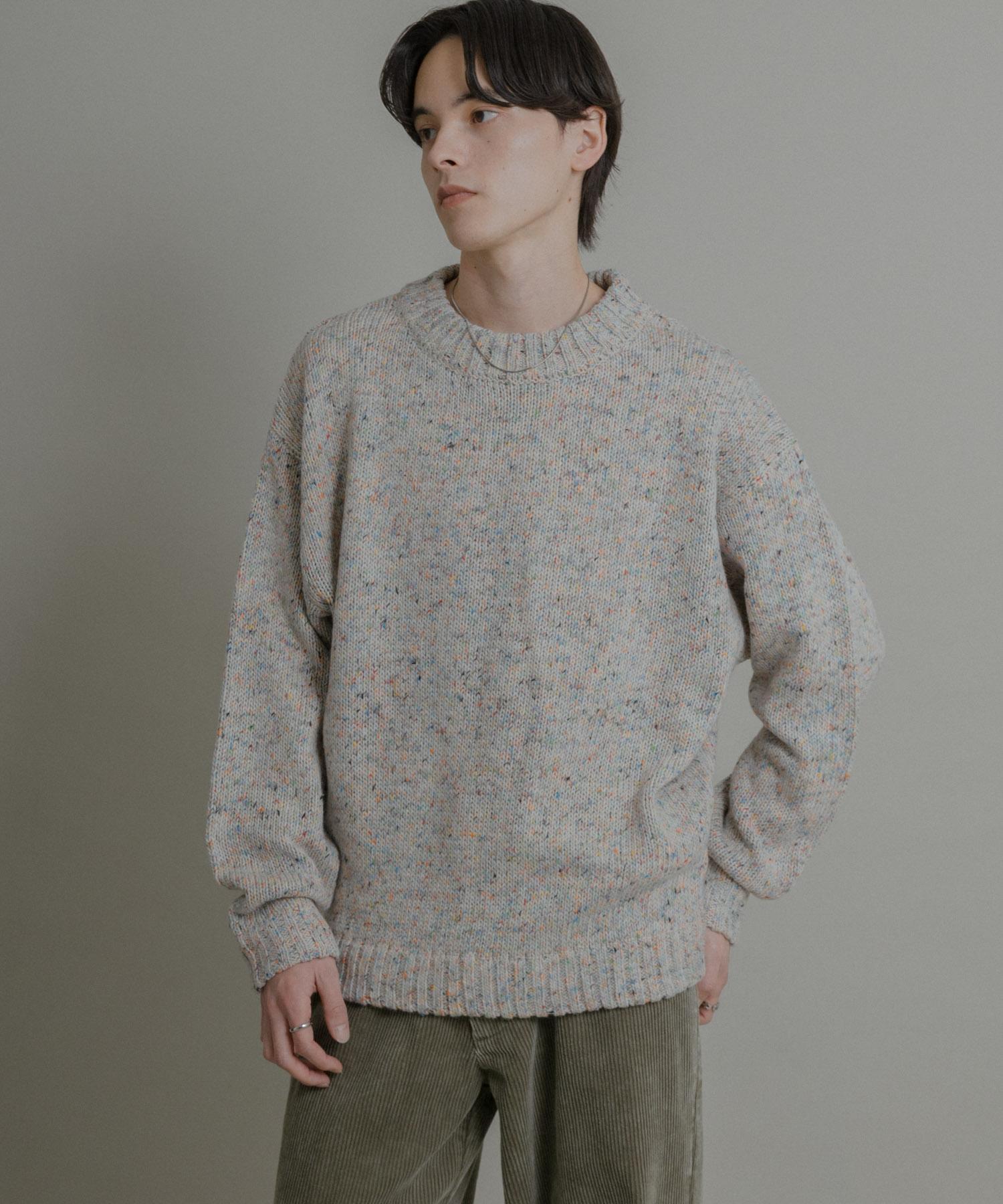 針織衫採用簡約而俏皮的 nep 面料外觀,粗羅紋是一個微妙的設計點。