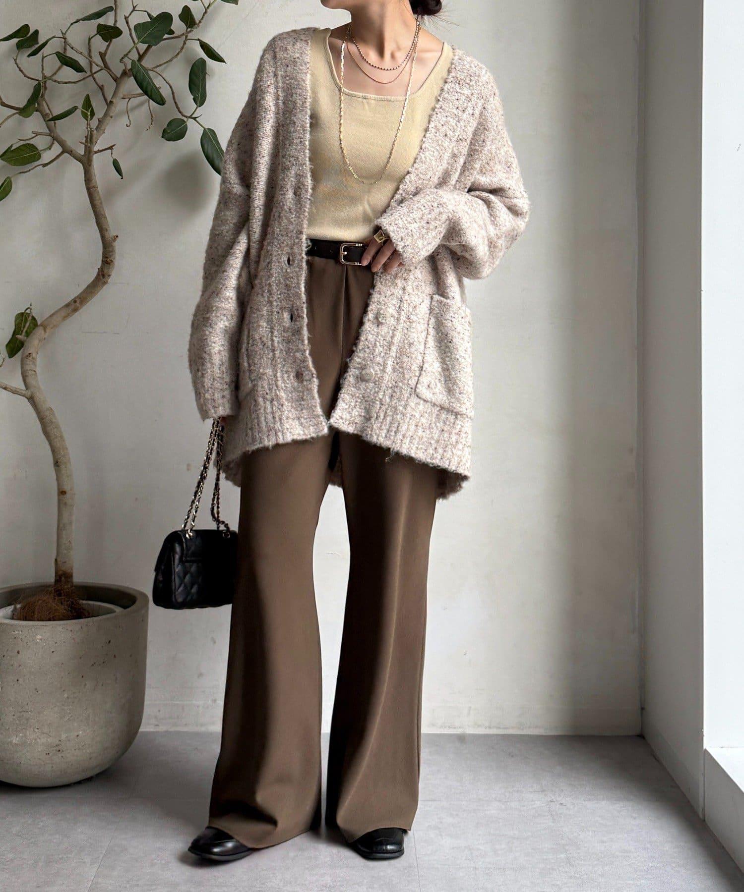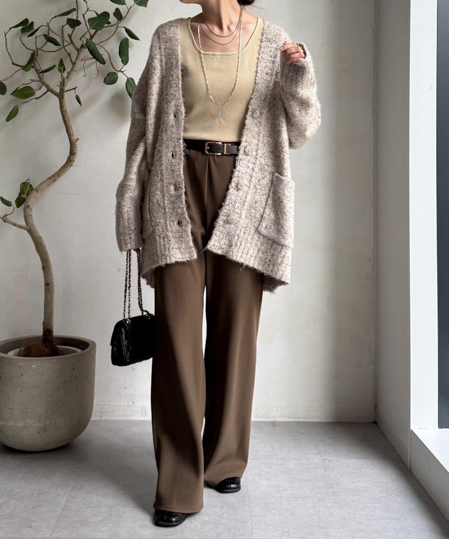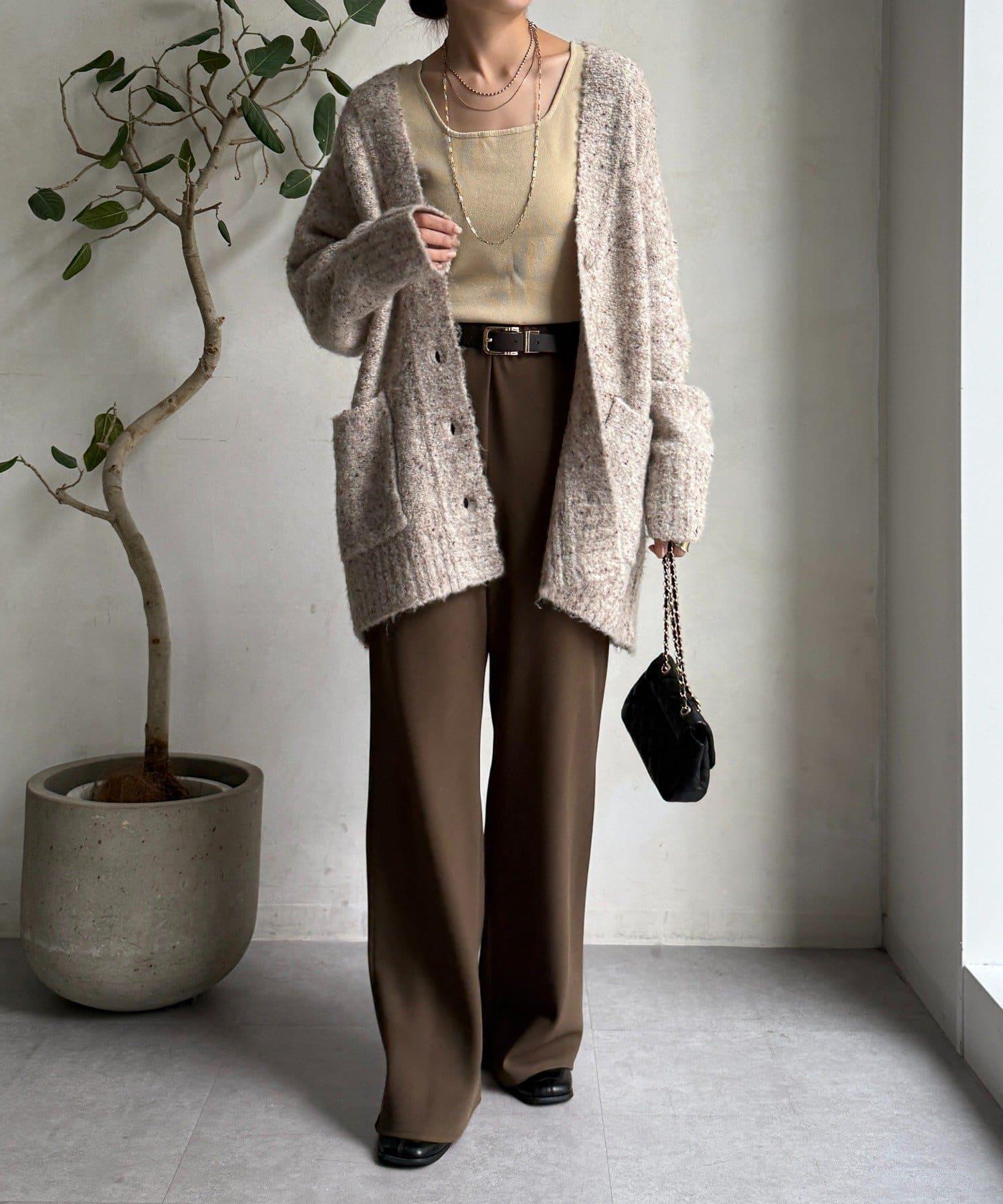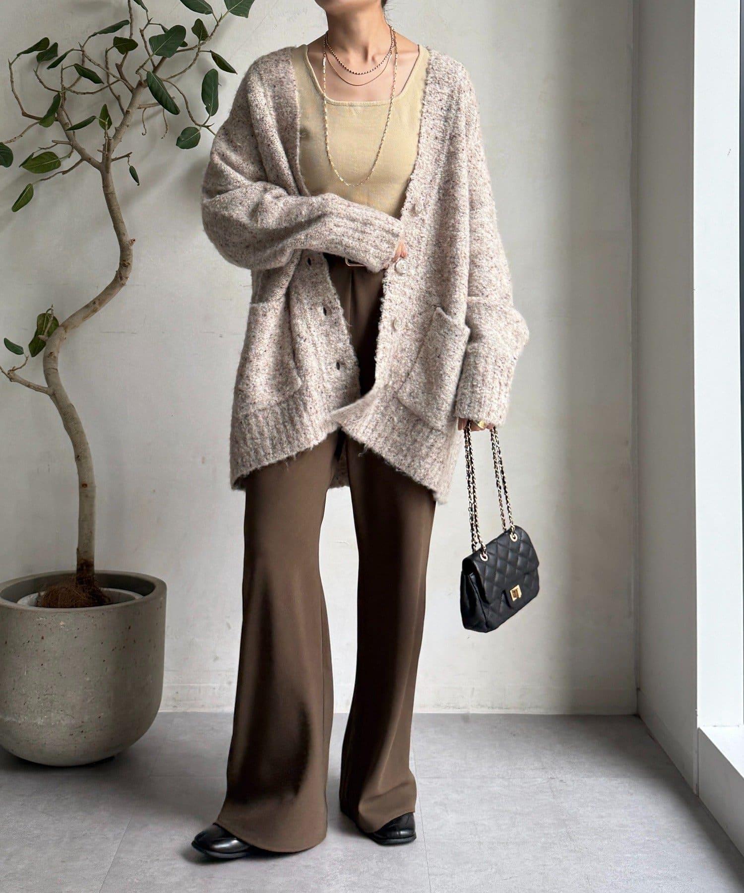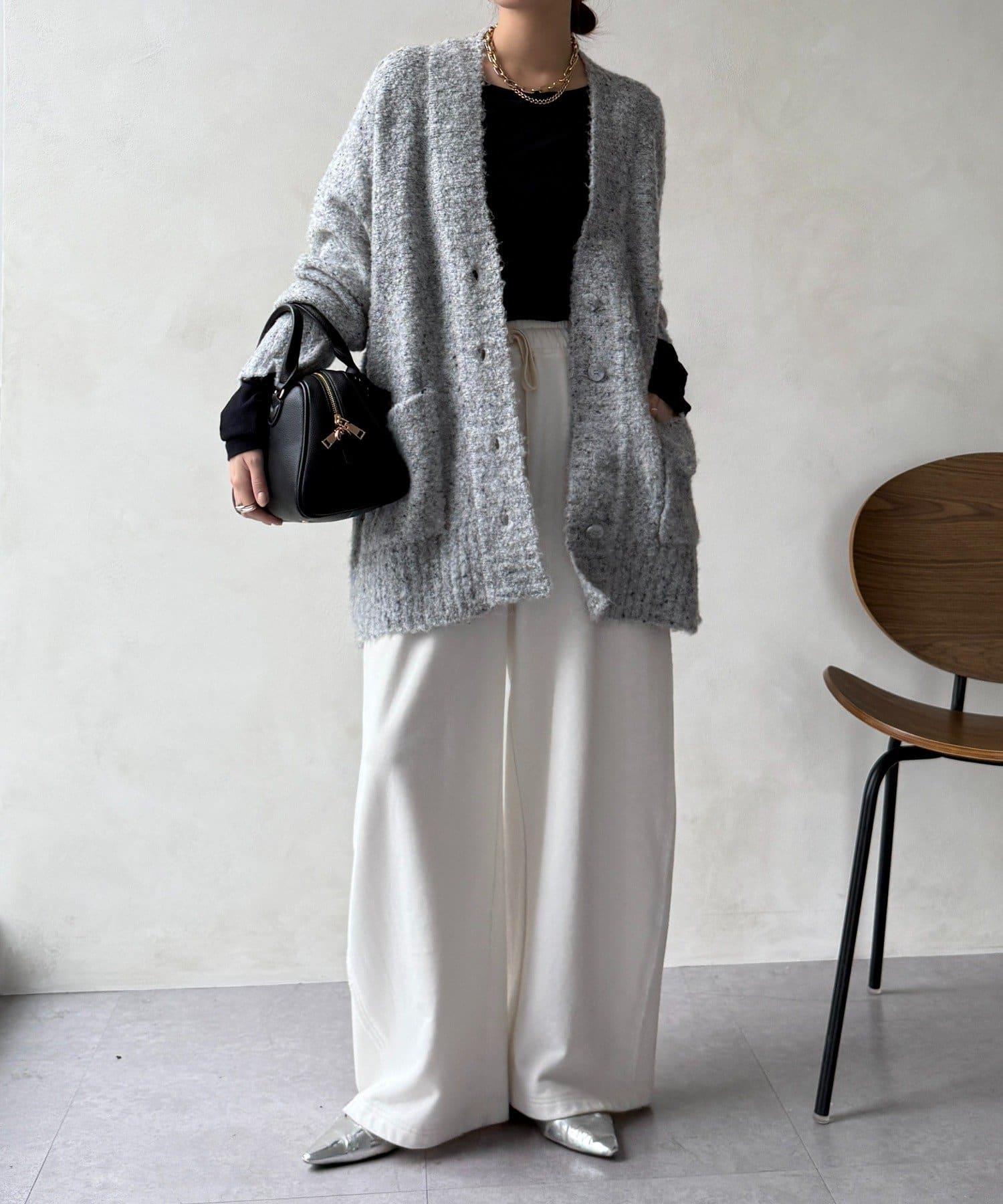 這款開襟羊毛衫上散落著五顏六色的棉結。