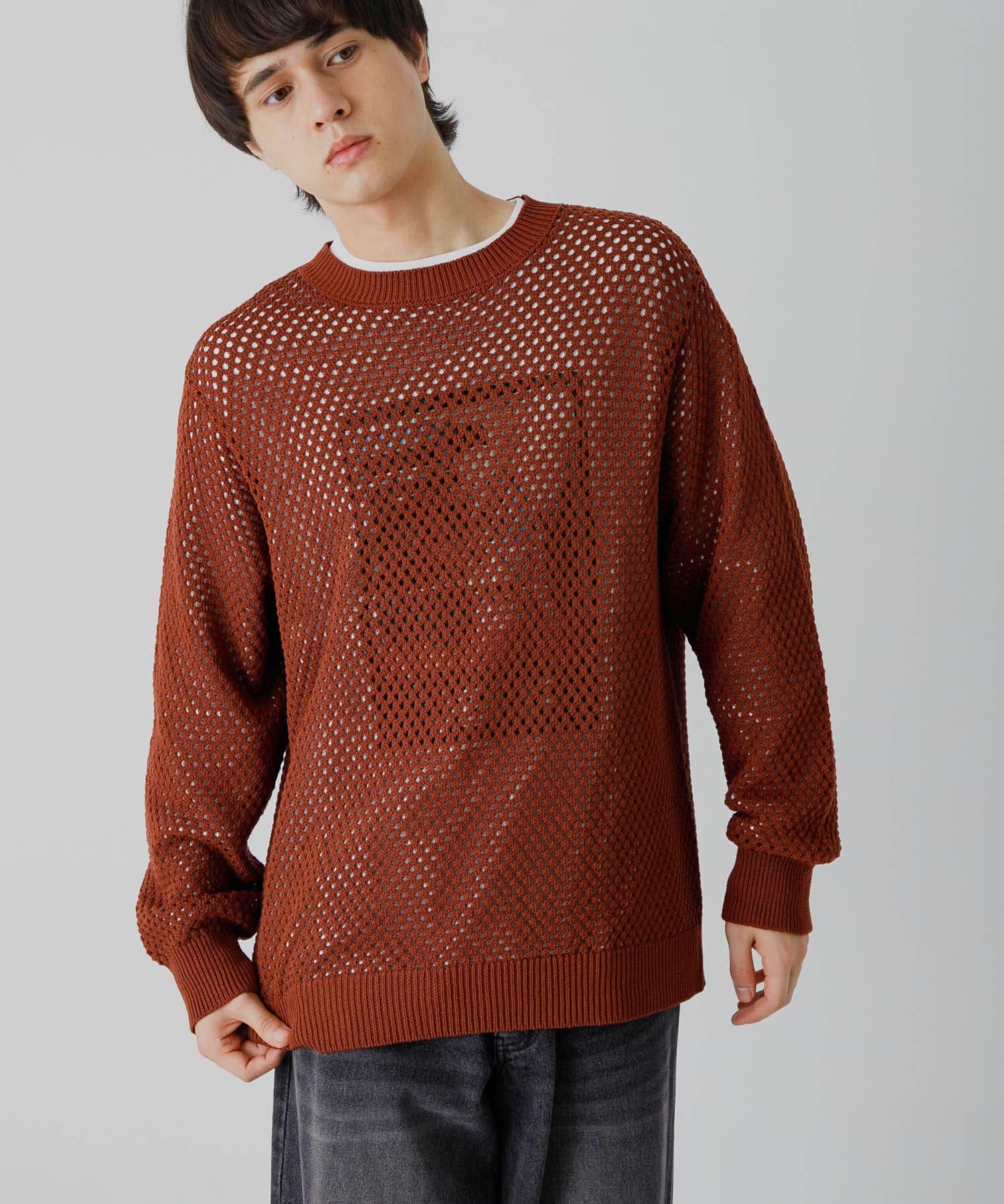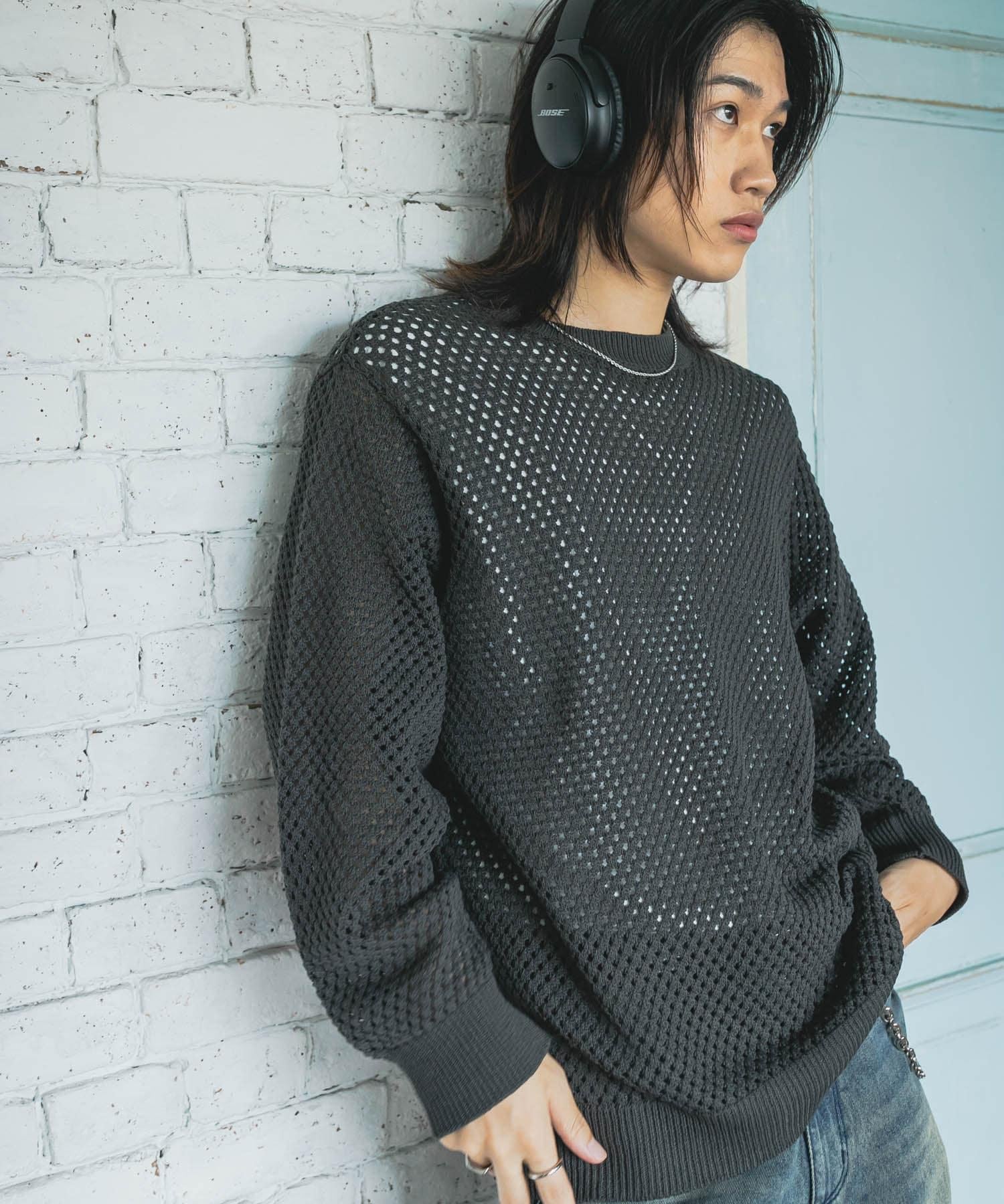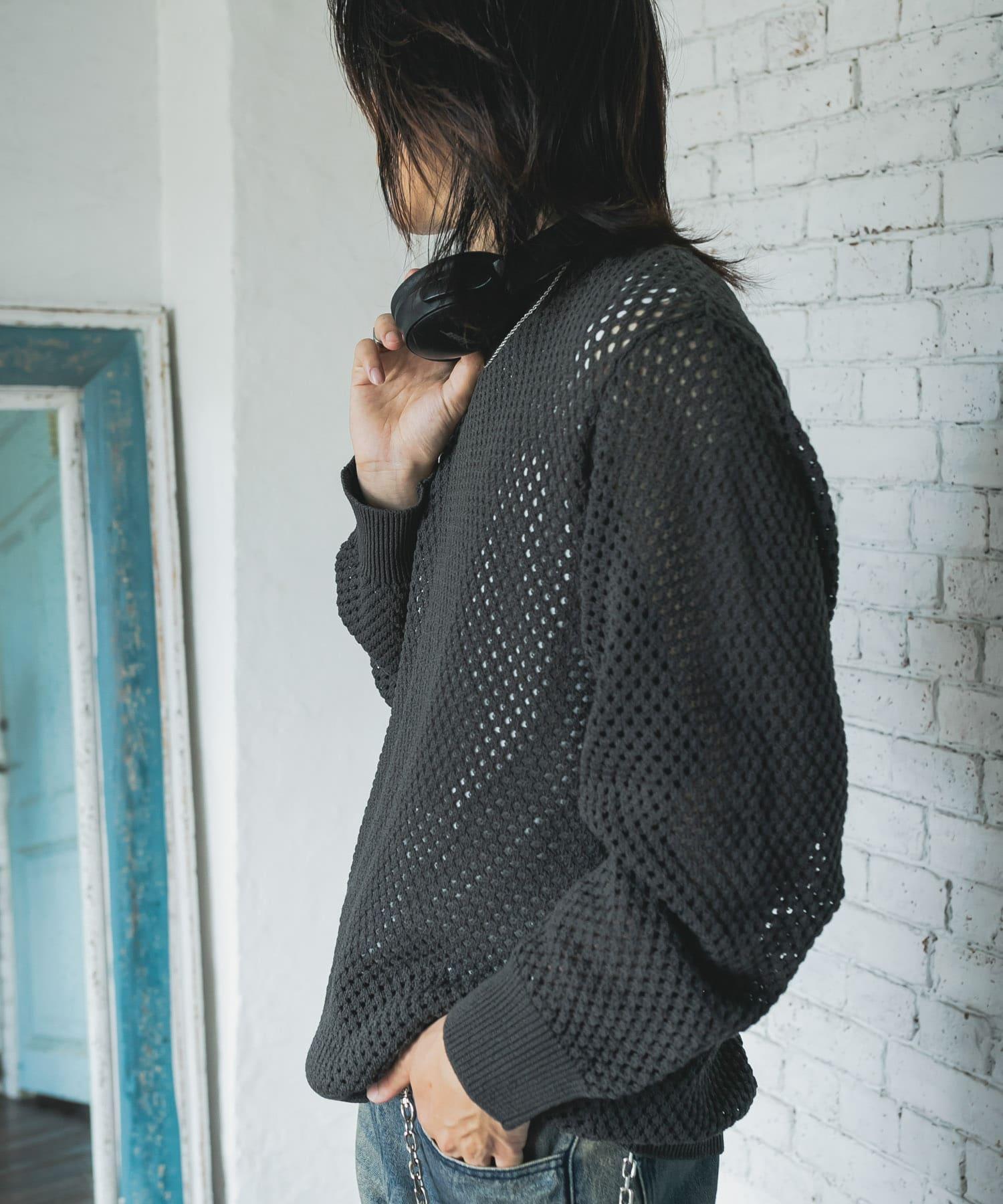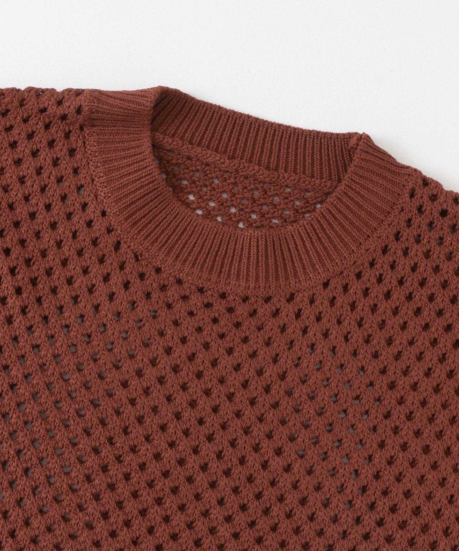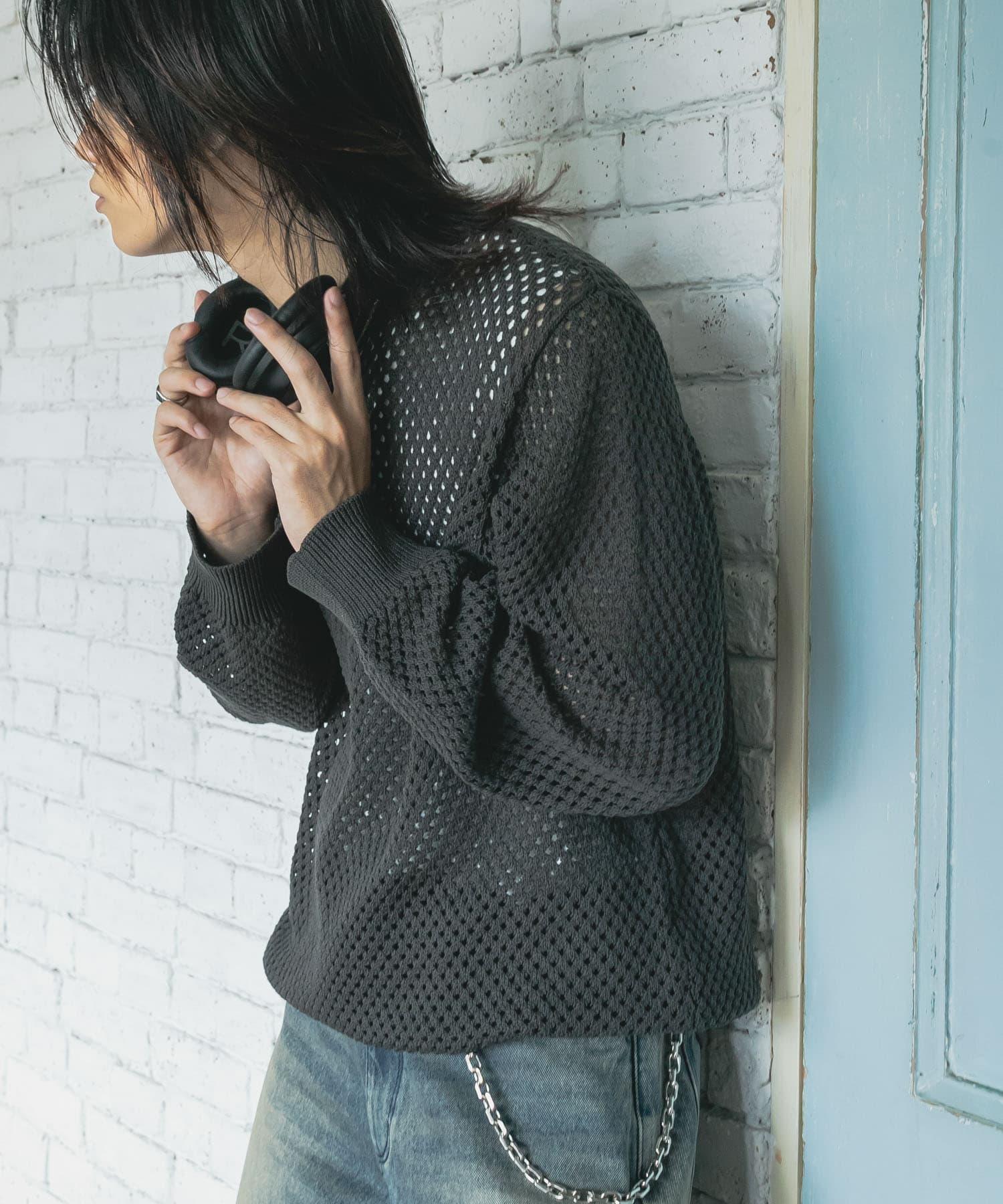可水洗透視網紗圓領針織衫