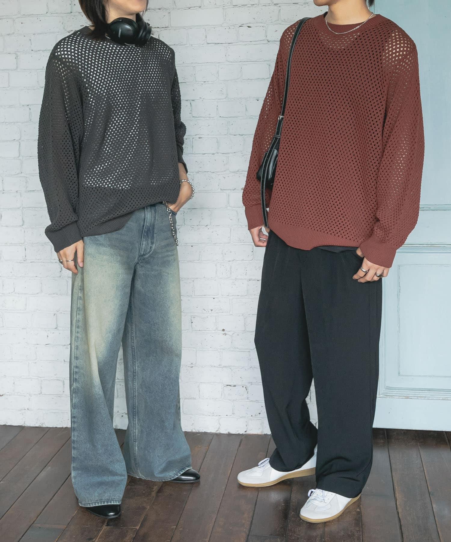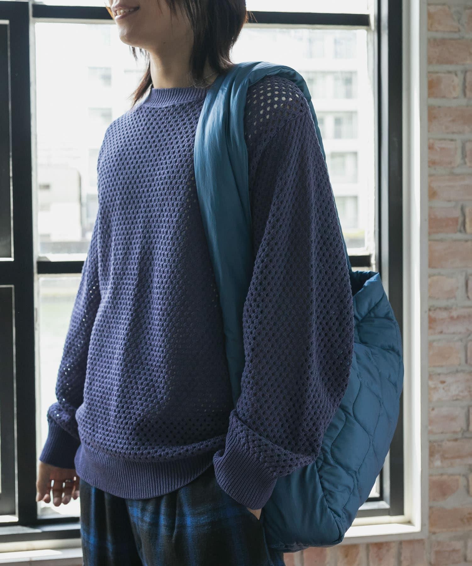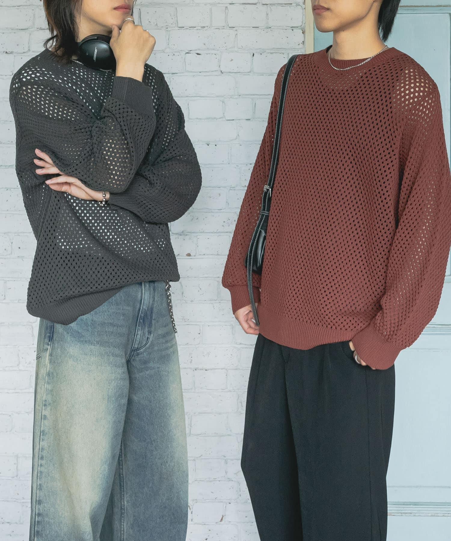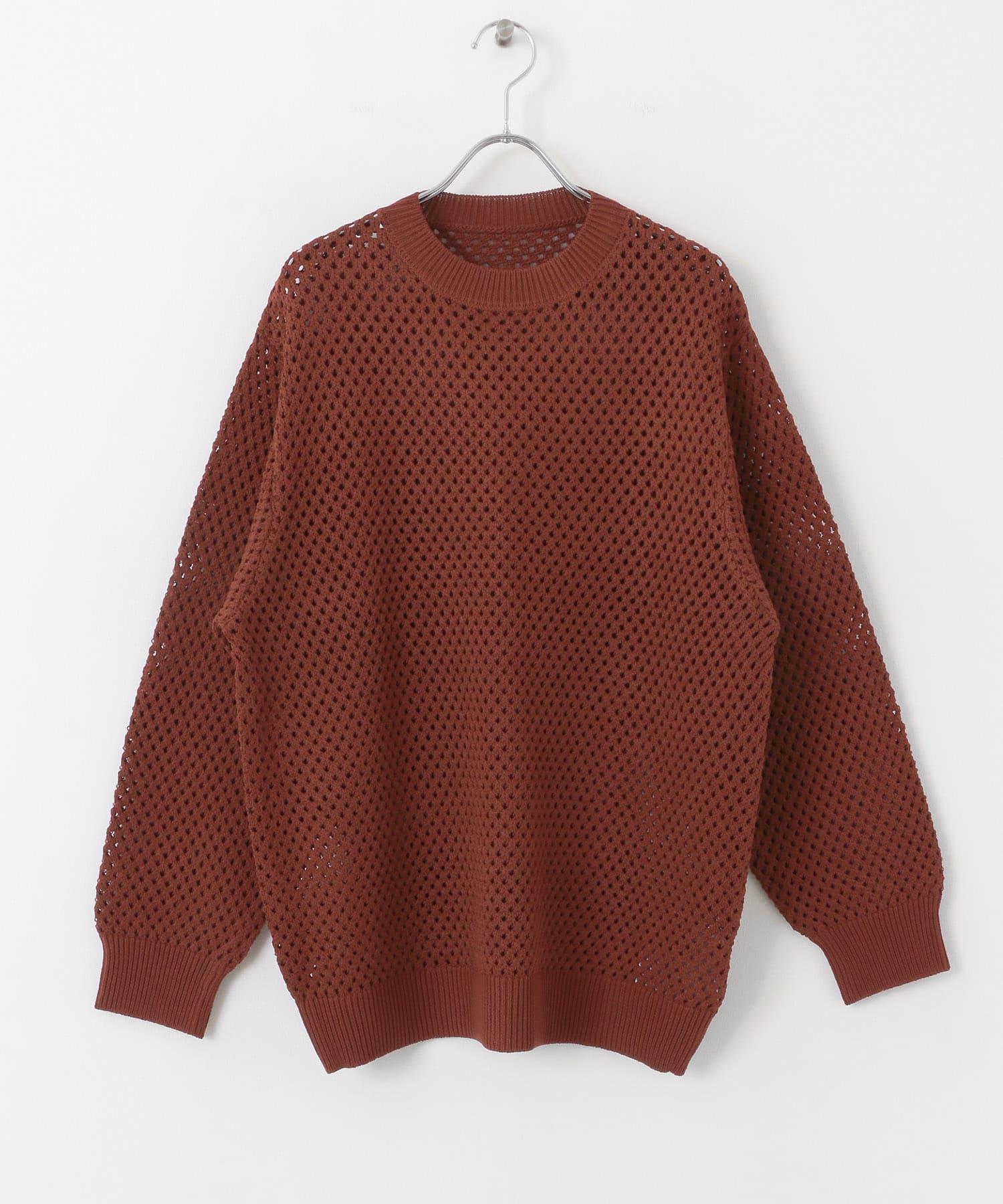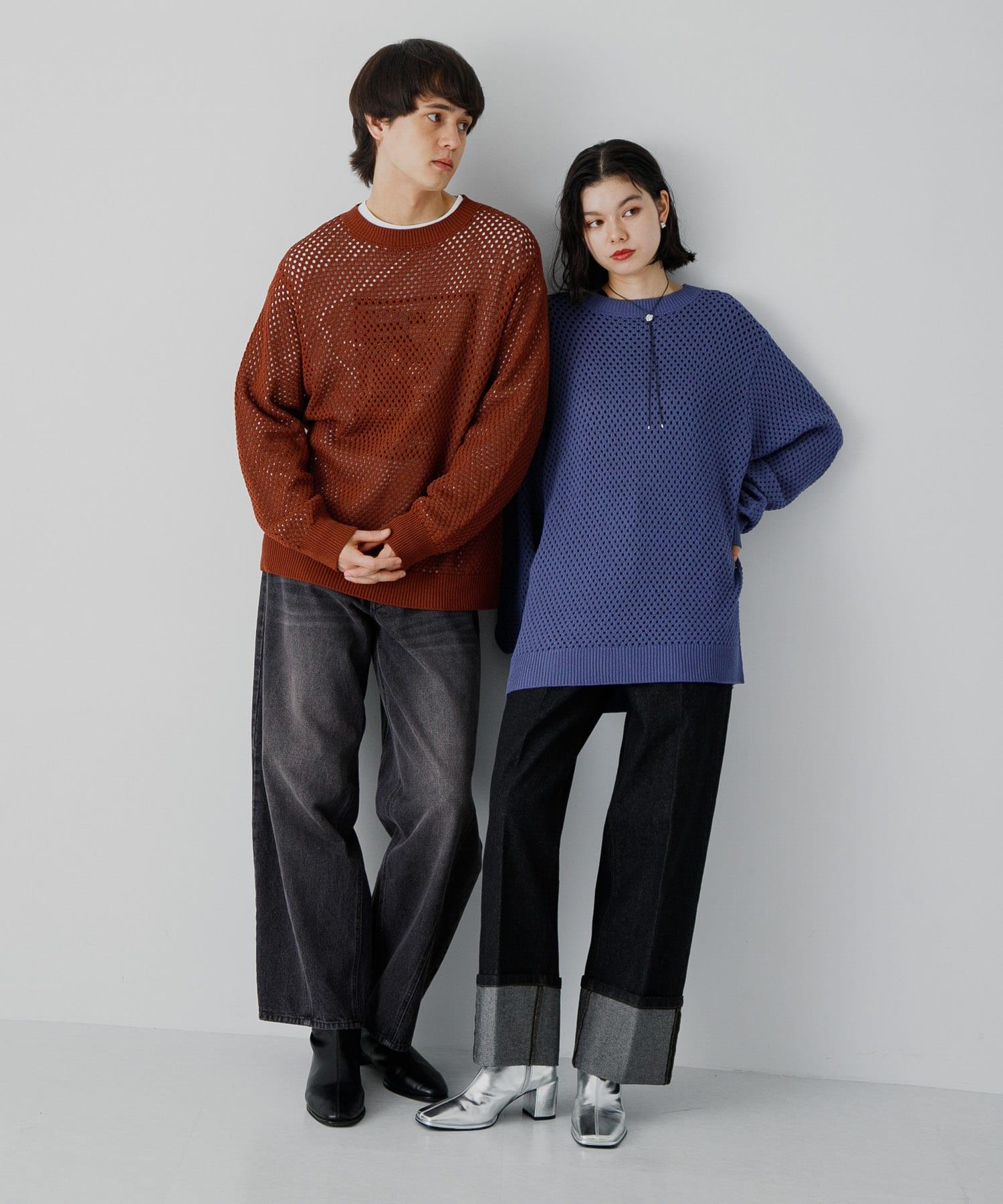 可水洗透視網紗圓領針織衫