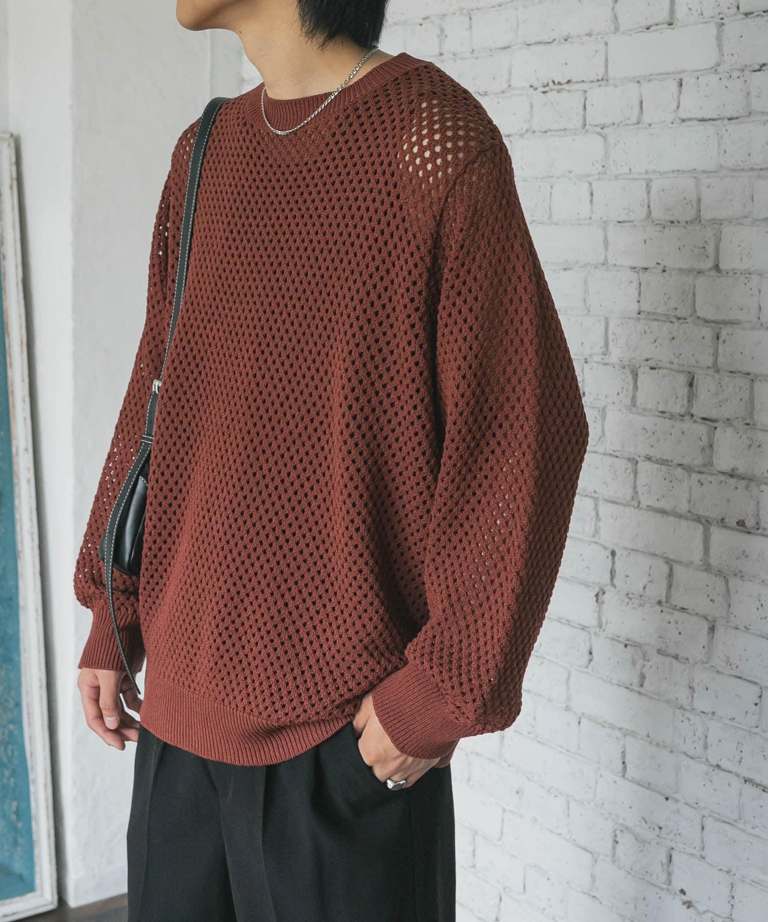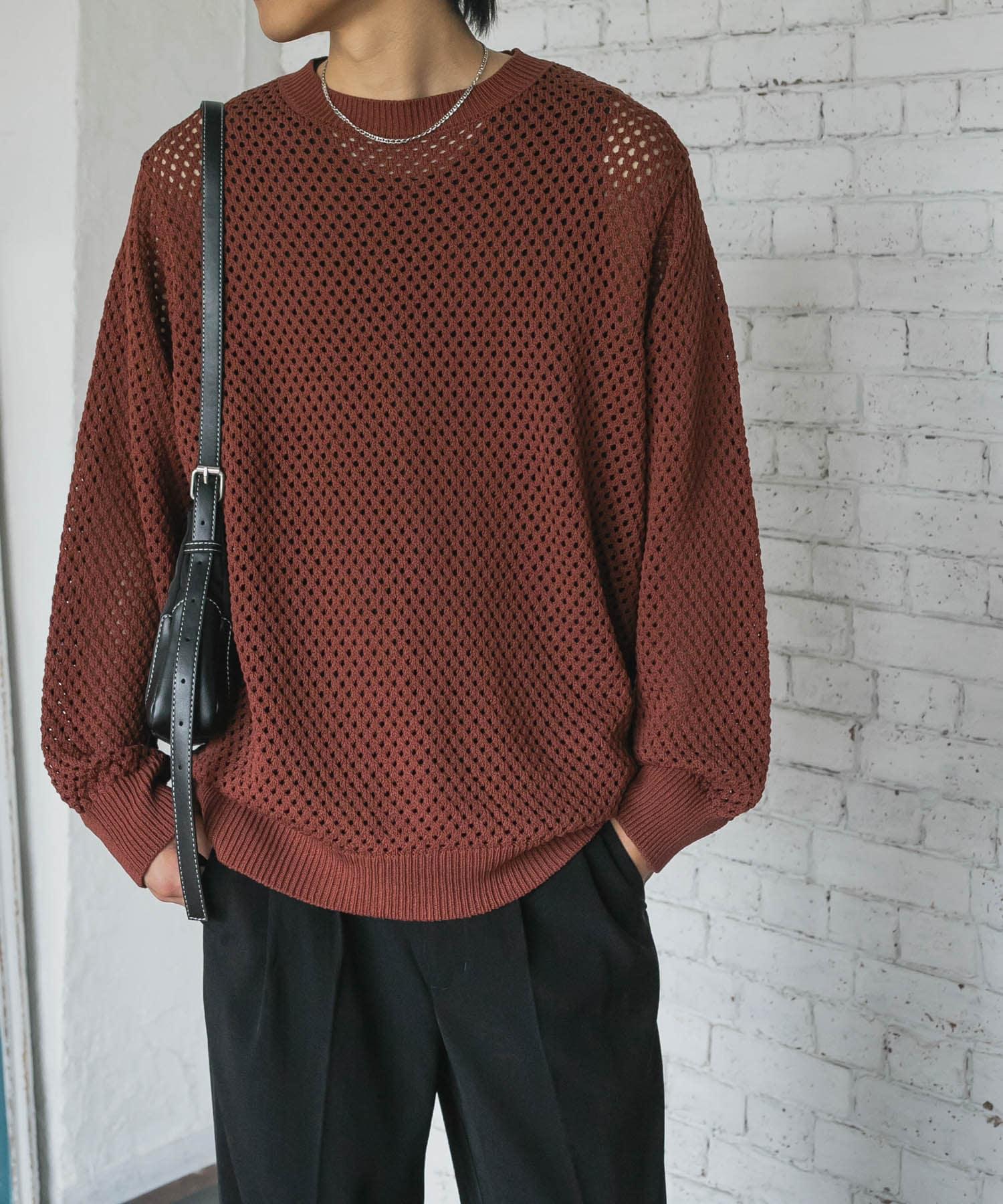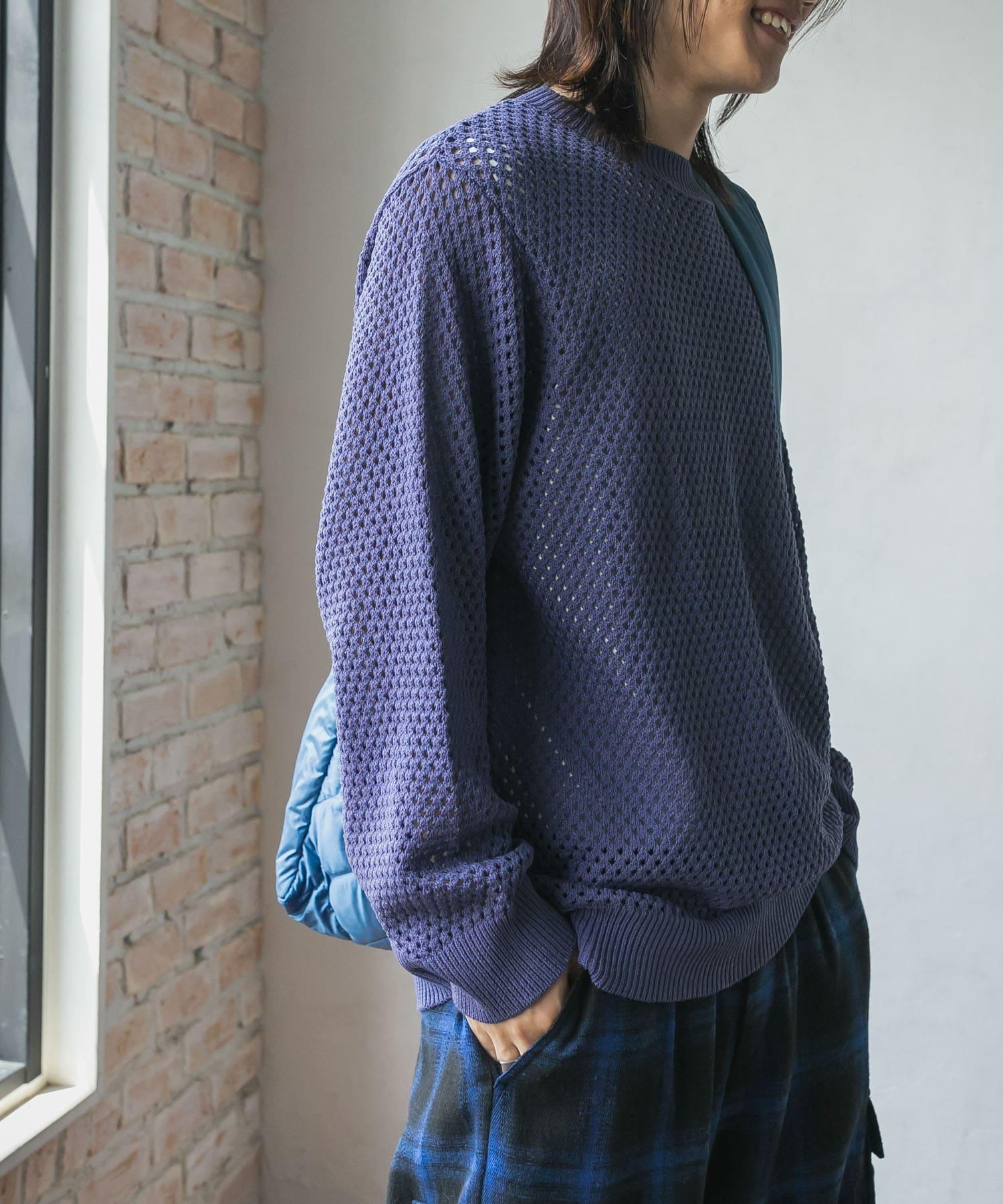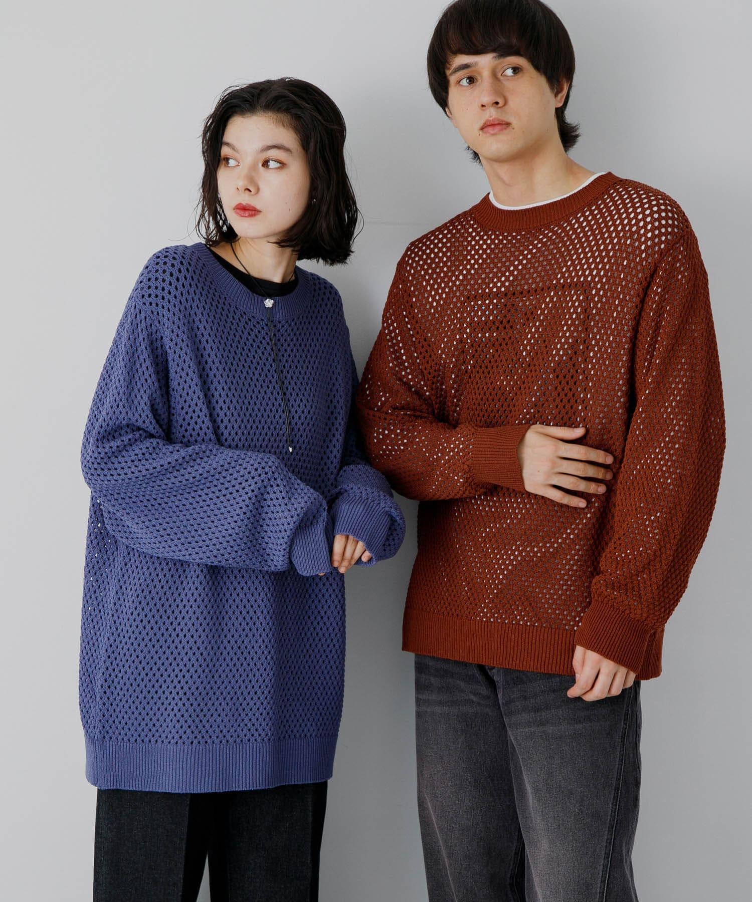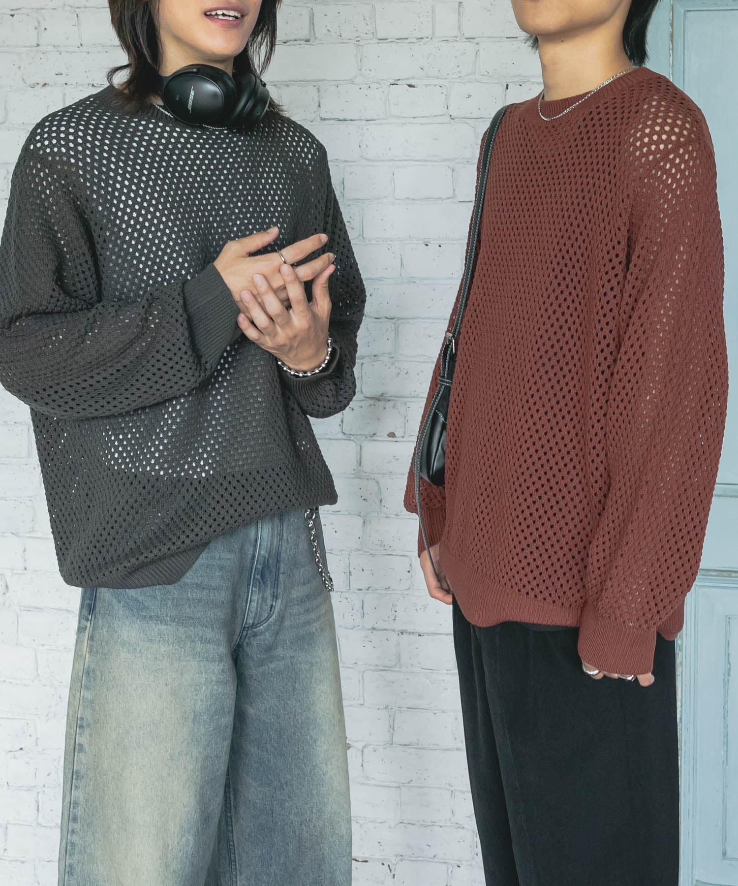 可水洗透視網紗圓領針織衫