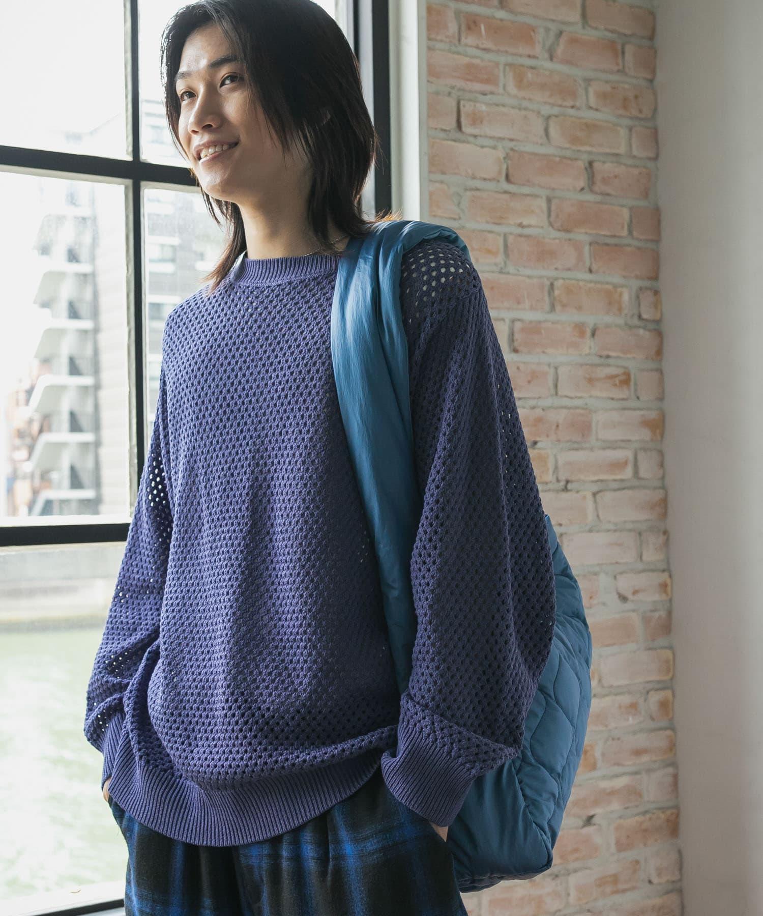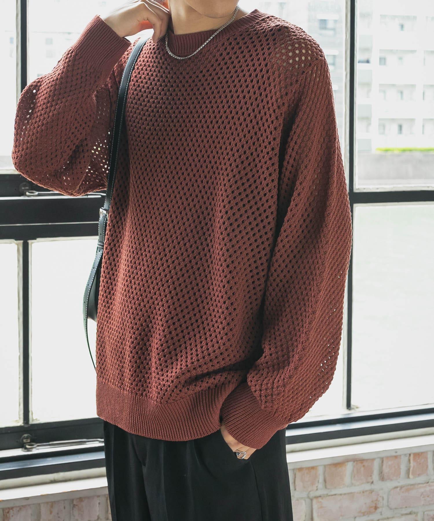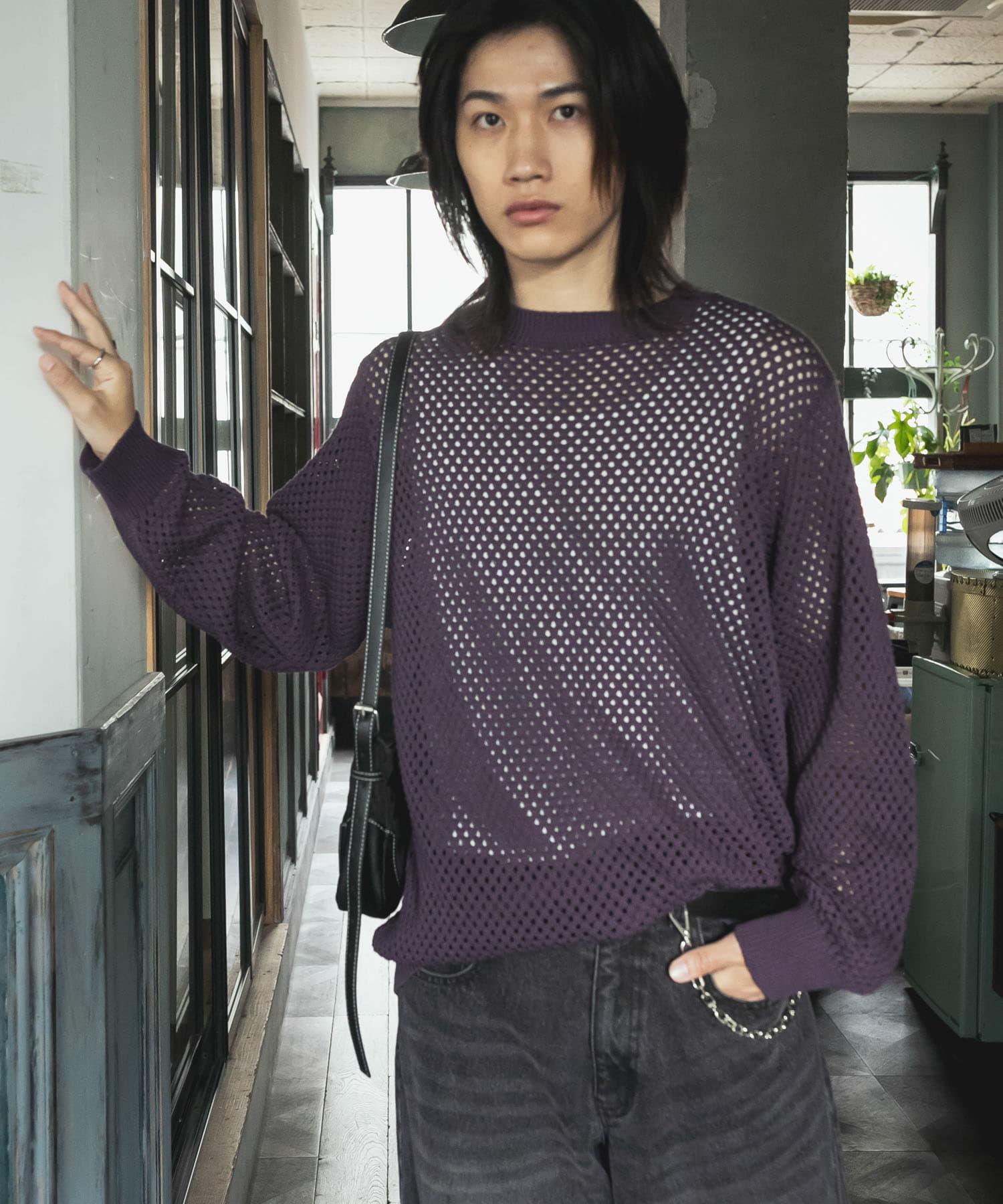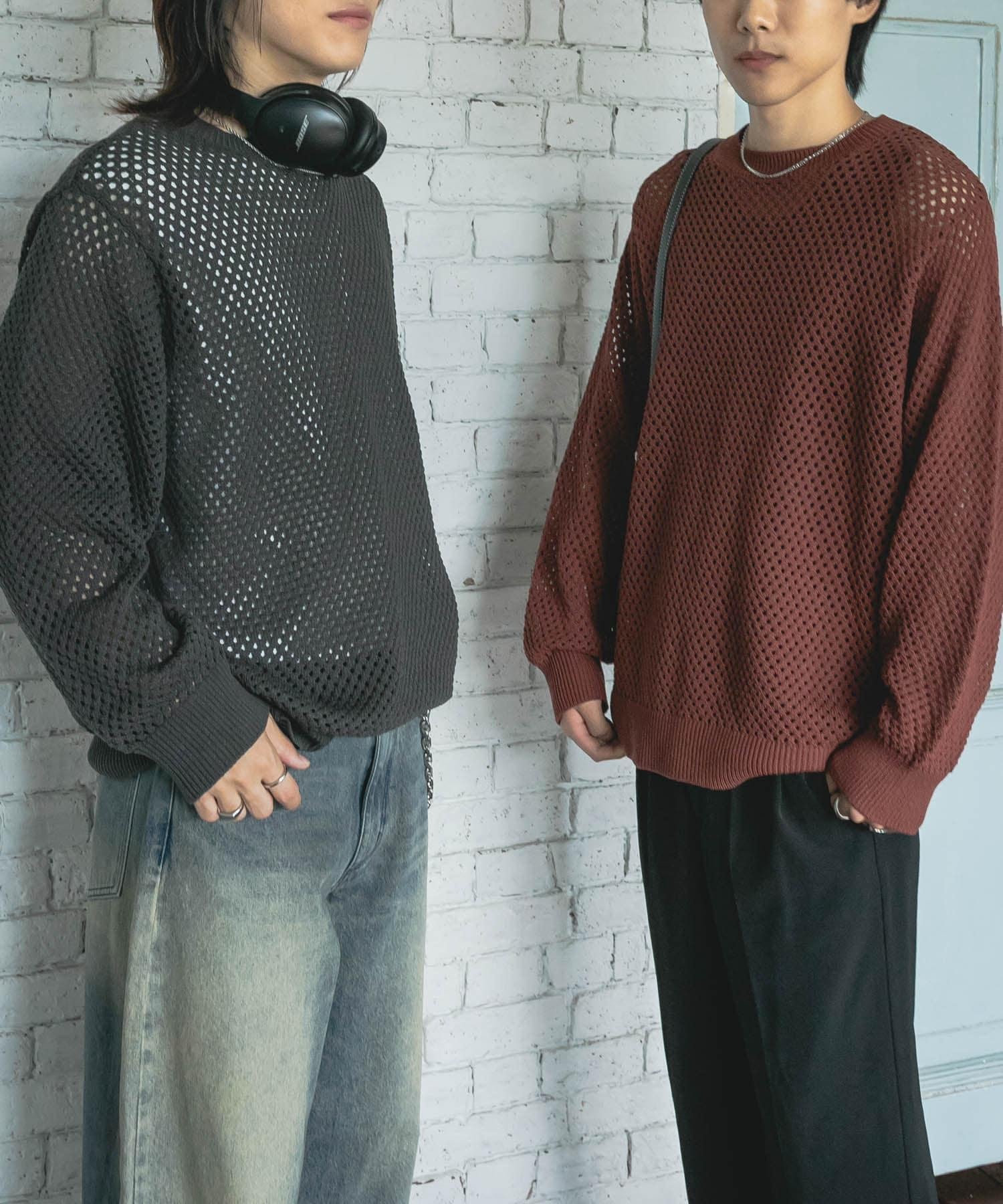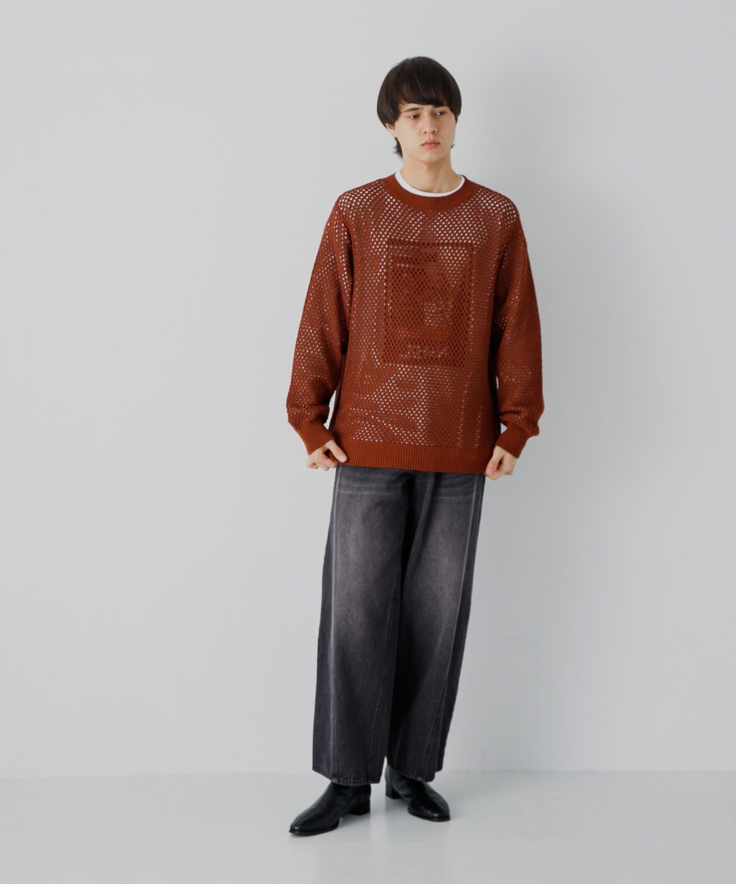 可水洗透視網紗圓領針織衫