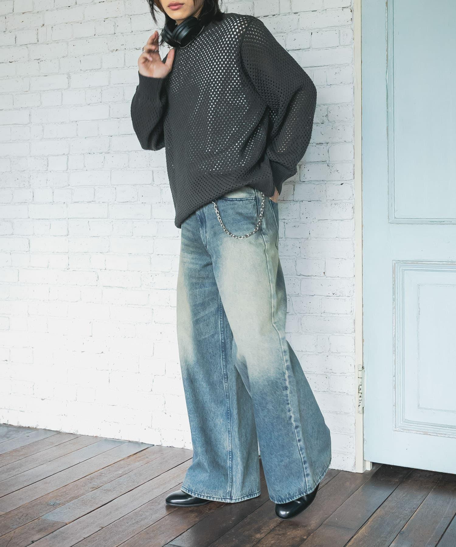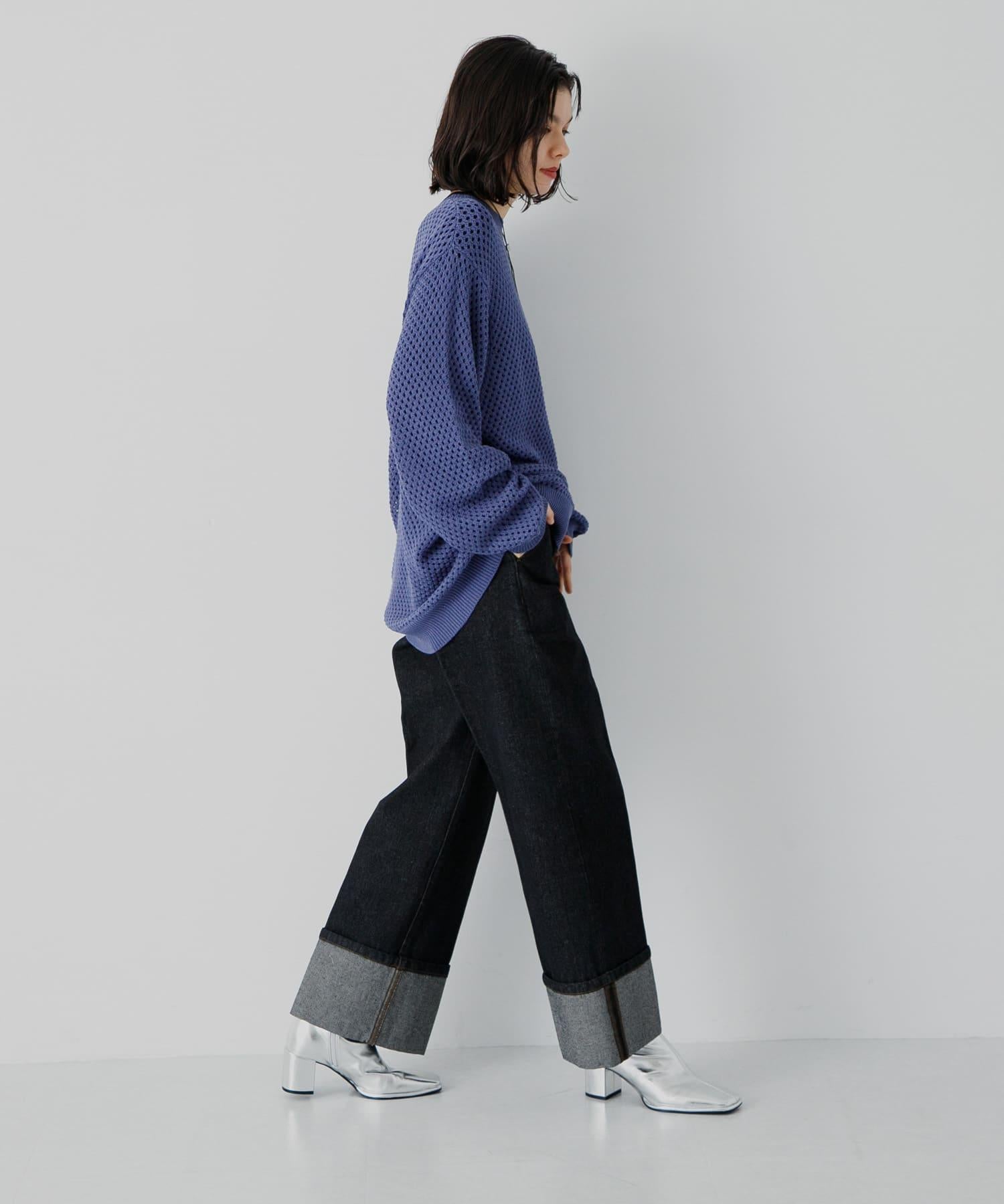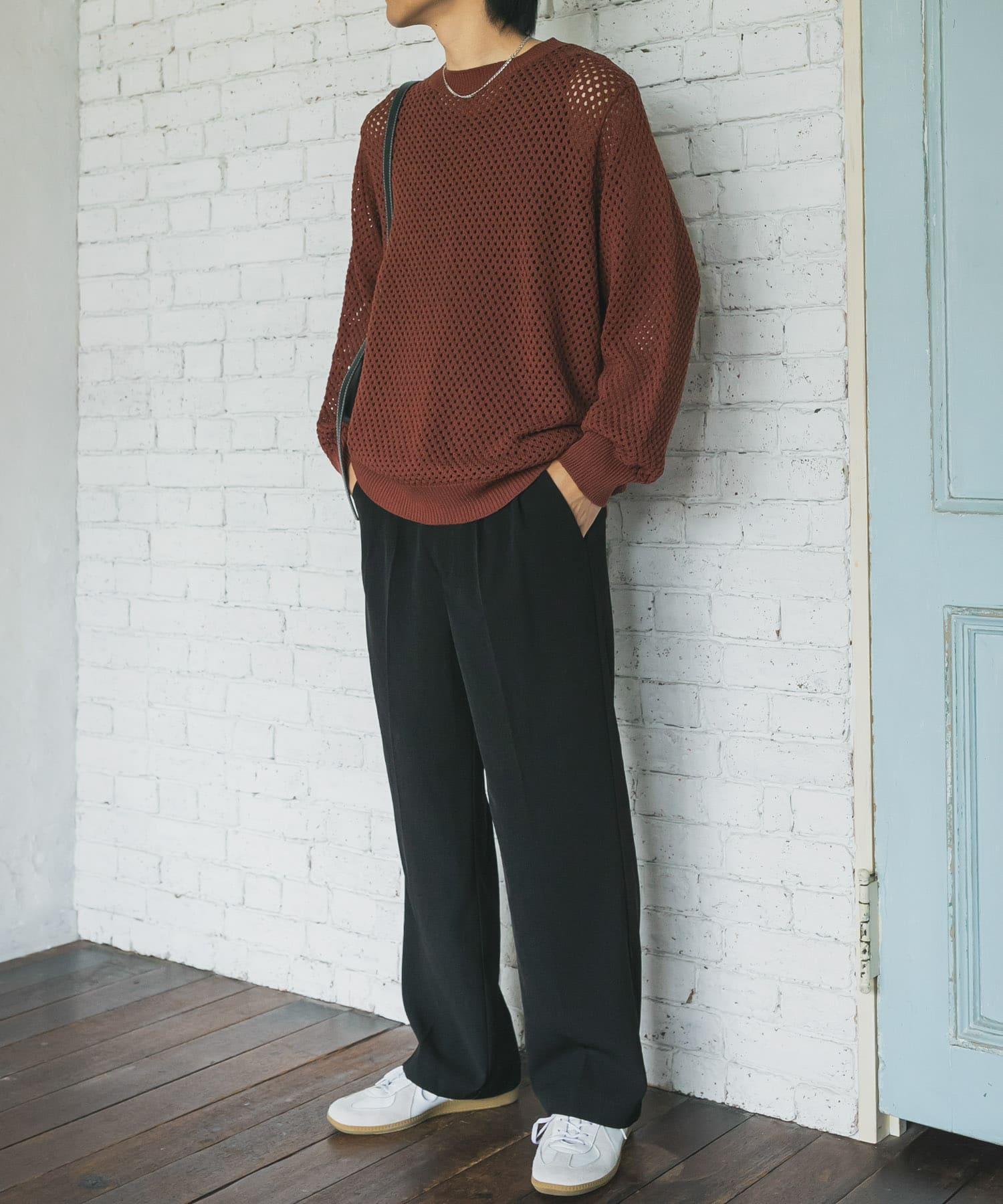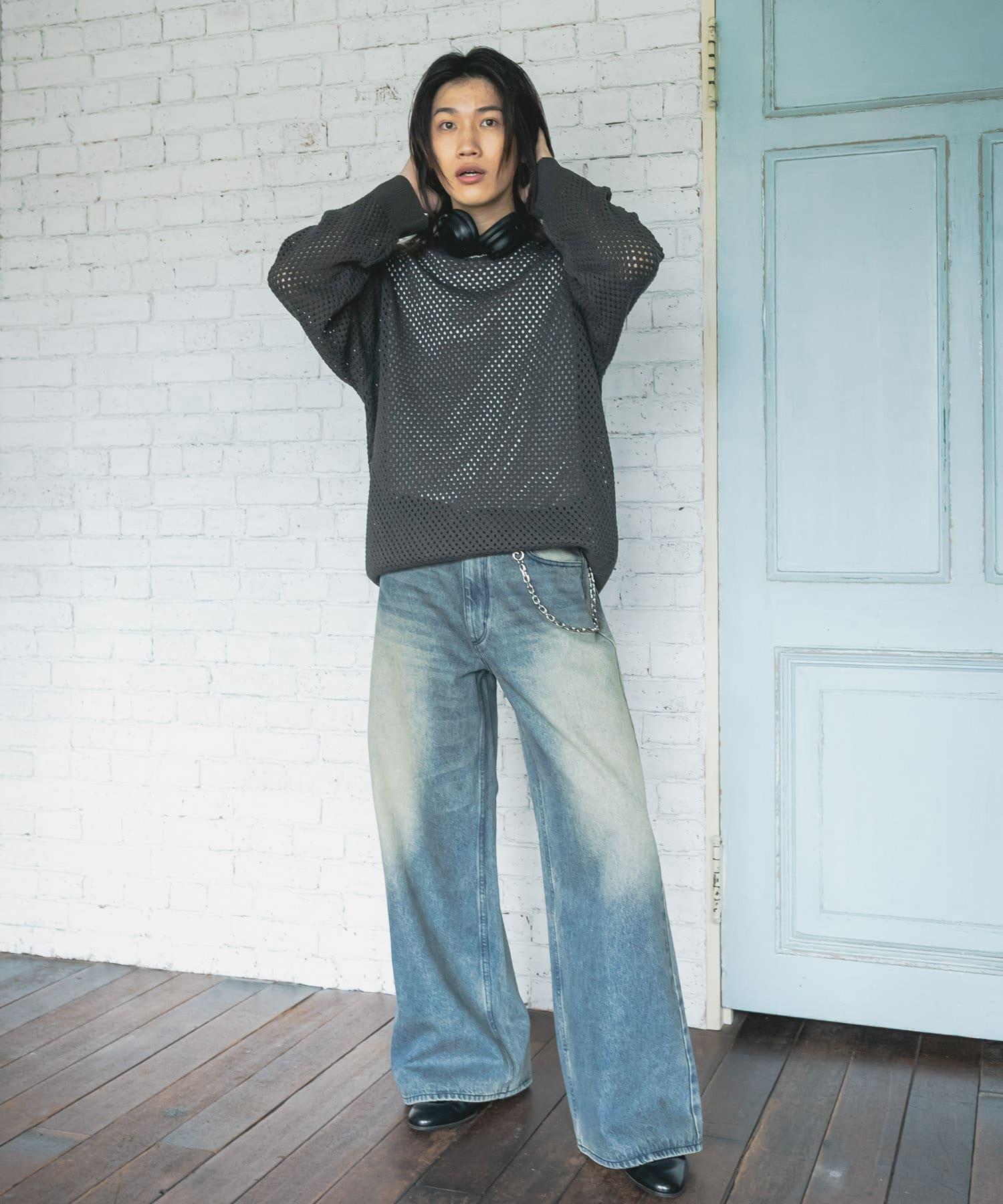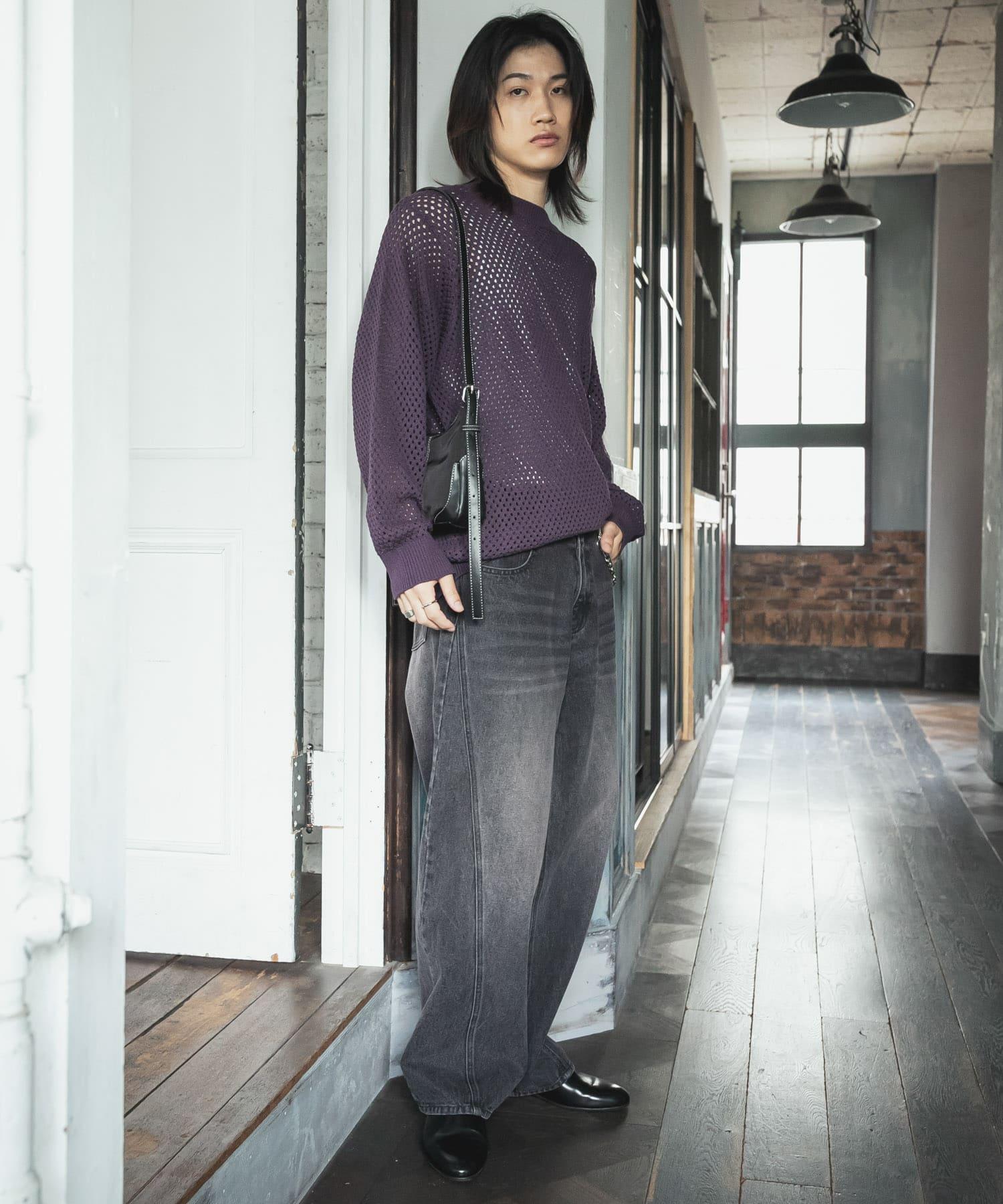 可水洗透視網紗圓領針織衫