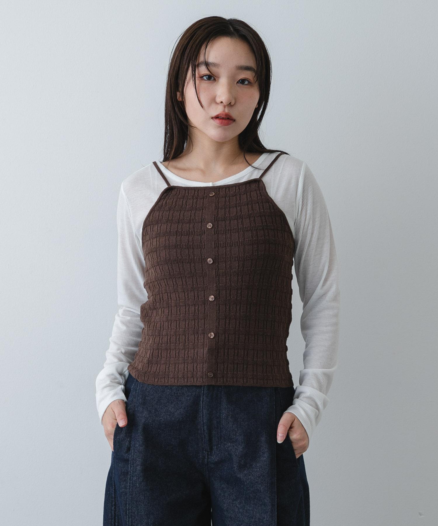這款富有表現力的針織吊帶衫為您的著裝增添了層次感。這款吊帶衫採用柔軟的針織面料製成,具有極佳的伸縮性,即使疊穿也能輕鬆自如,全天候提供無壓力的舒適感。👍的特點是採用了立體針織面料 pokopoko。此外,正面的裝飾紐扣突出了垂直線條,給人一種簡潔的感覺。只需將它疊穿在現有的長 T 上或剪裁縫製,就能輕鬆完成具有層次感的造型。從休閒裝到簡潔裝,它都是具有廣泛適用性的 plus-one 單品。