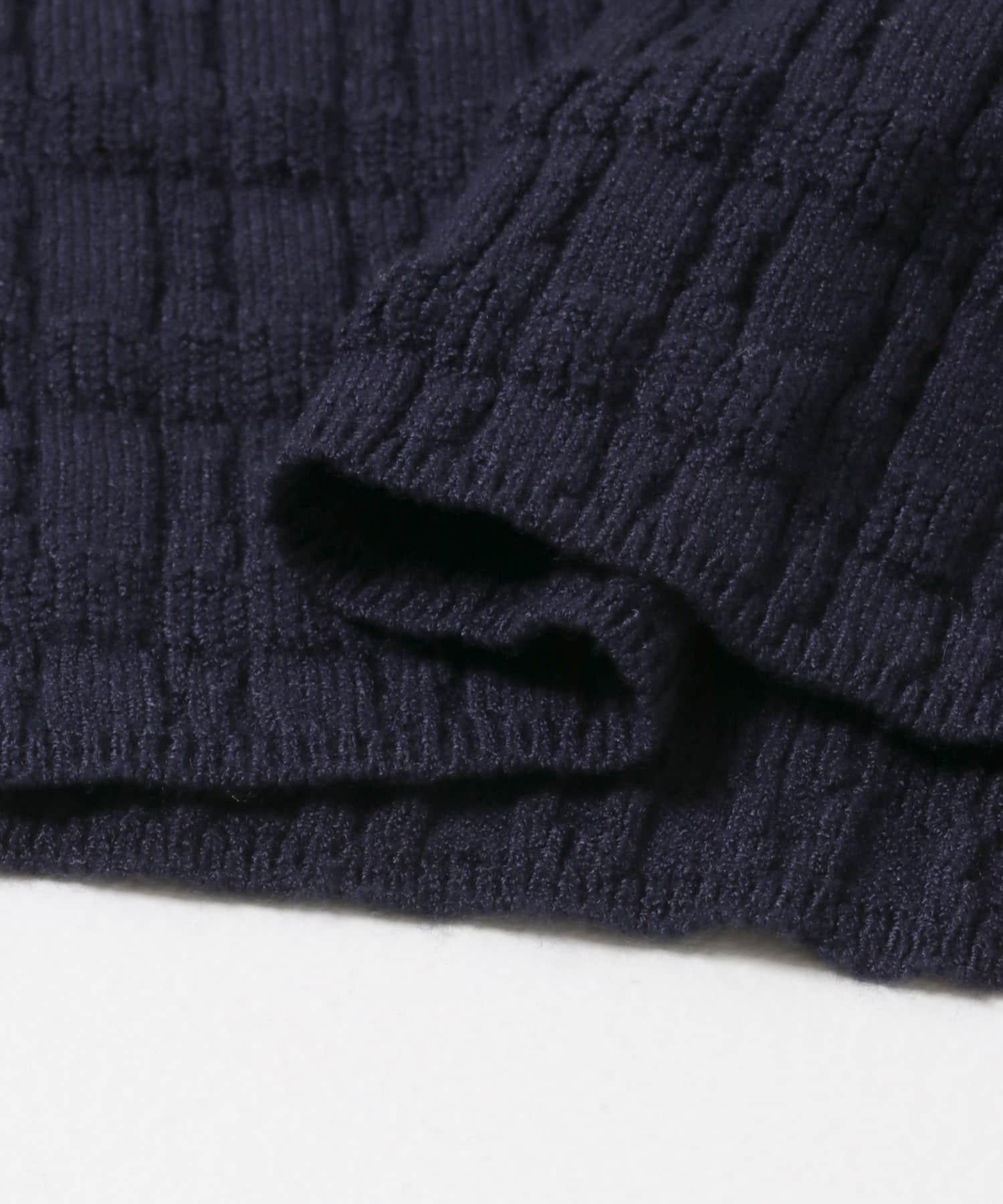 具有豐富表現力的凹凸紋理的針織面料是一大亮點。正面的小紐扣也是點睛之筆。