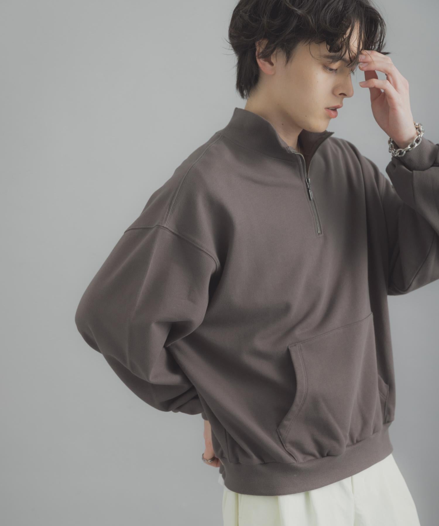 採用時尚的半拉鍊設計。拉鍊的開合可以改變頸部的細微變化,寬敞的剪裁使其非常適合疊穿。