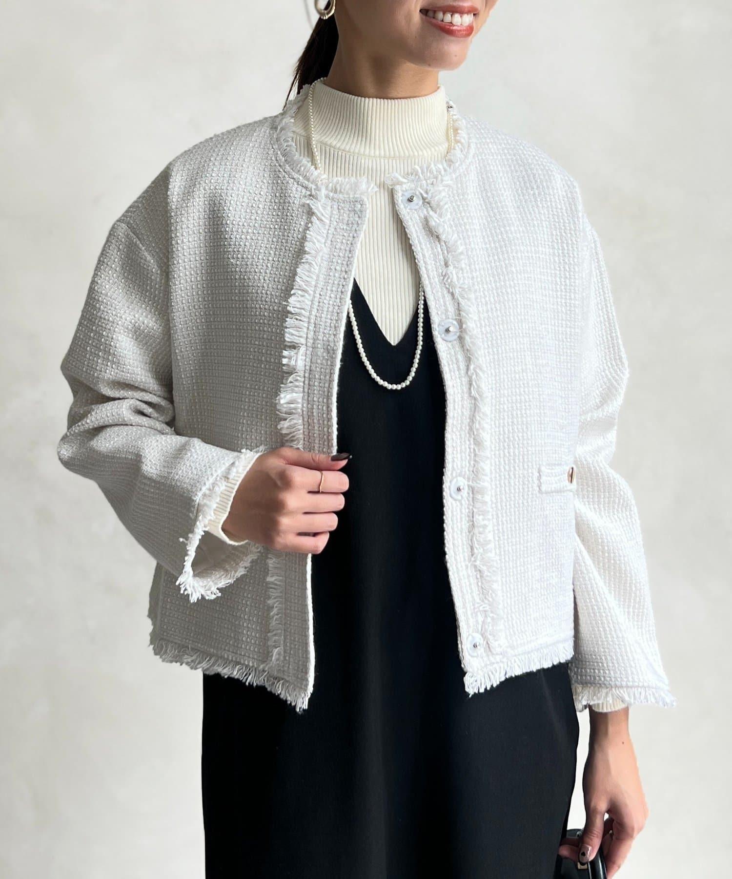 口袋、袖口和門襟均有流蘇,金色紐扣更顯奢華迷人。