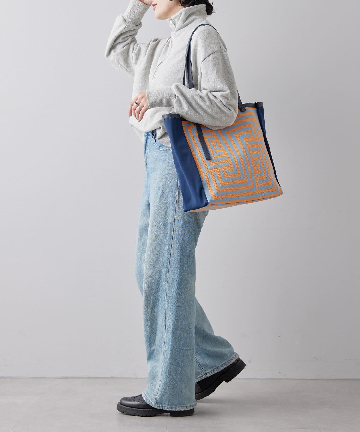 《可調節提手長度!/適合A4尺寸/推薦旅行/大號/輕便》針織盒形手提袋