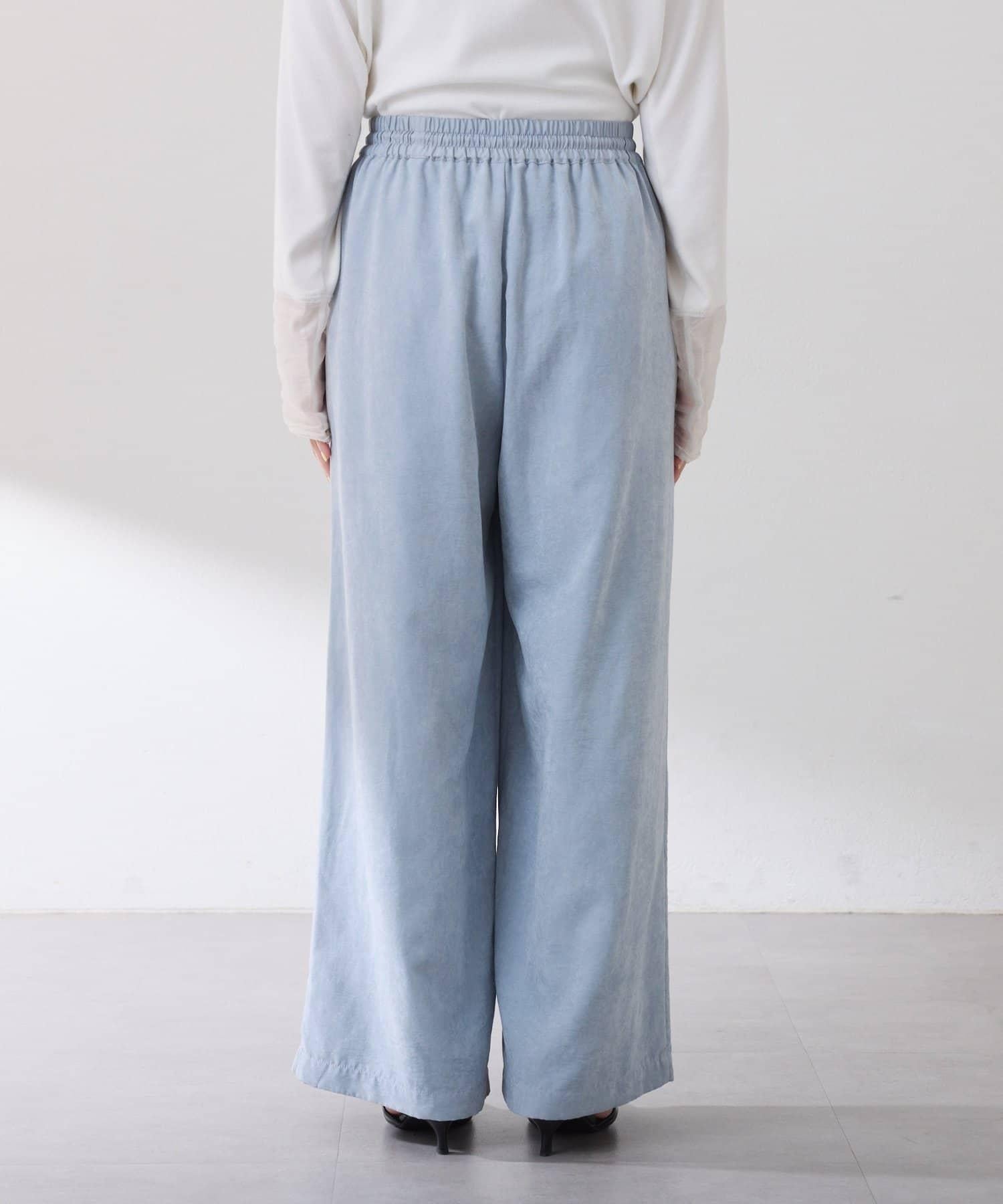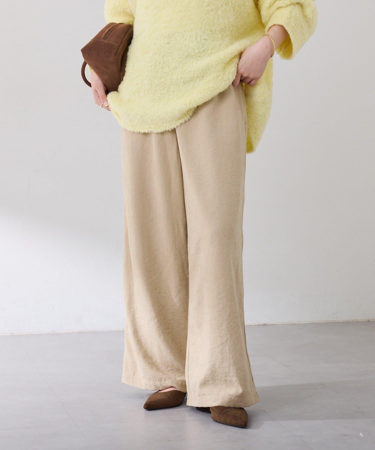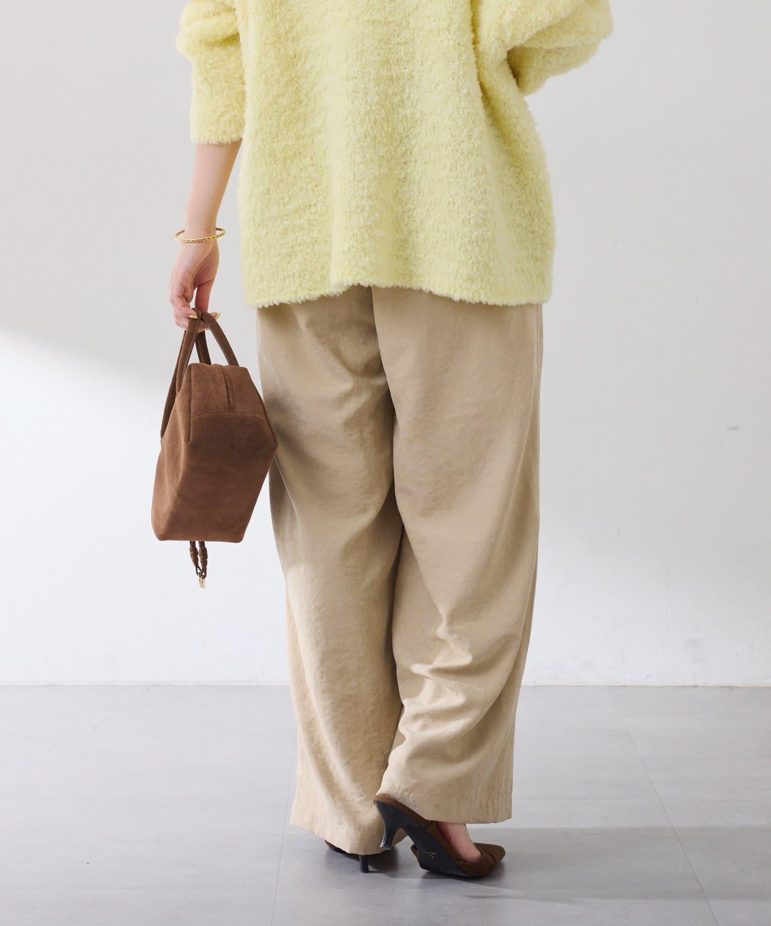 該款長褲款式輕鬆,桃紅色微微凸起的啞光質地給人以沉穩的印象。