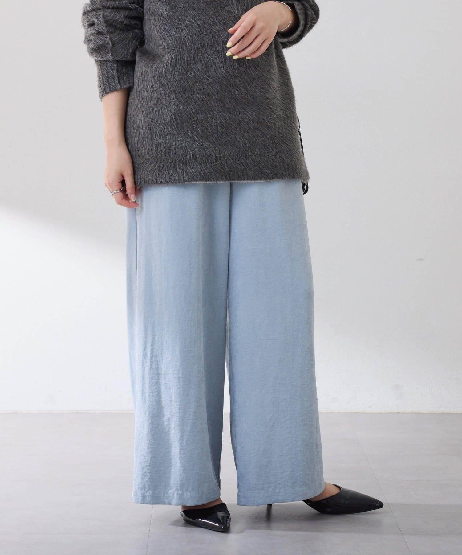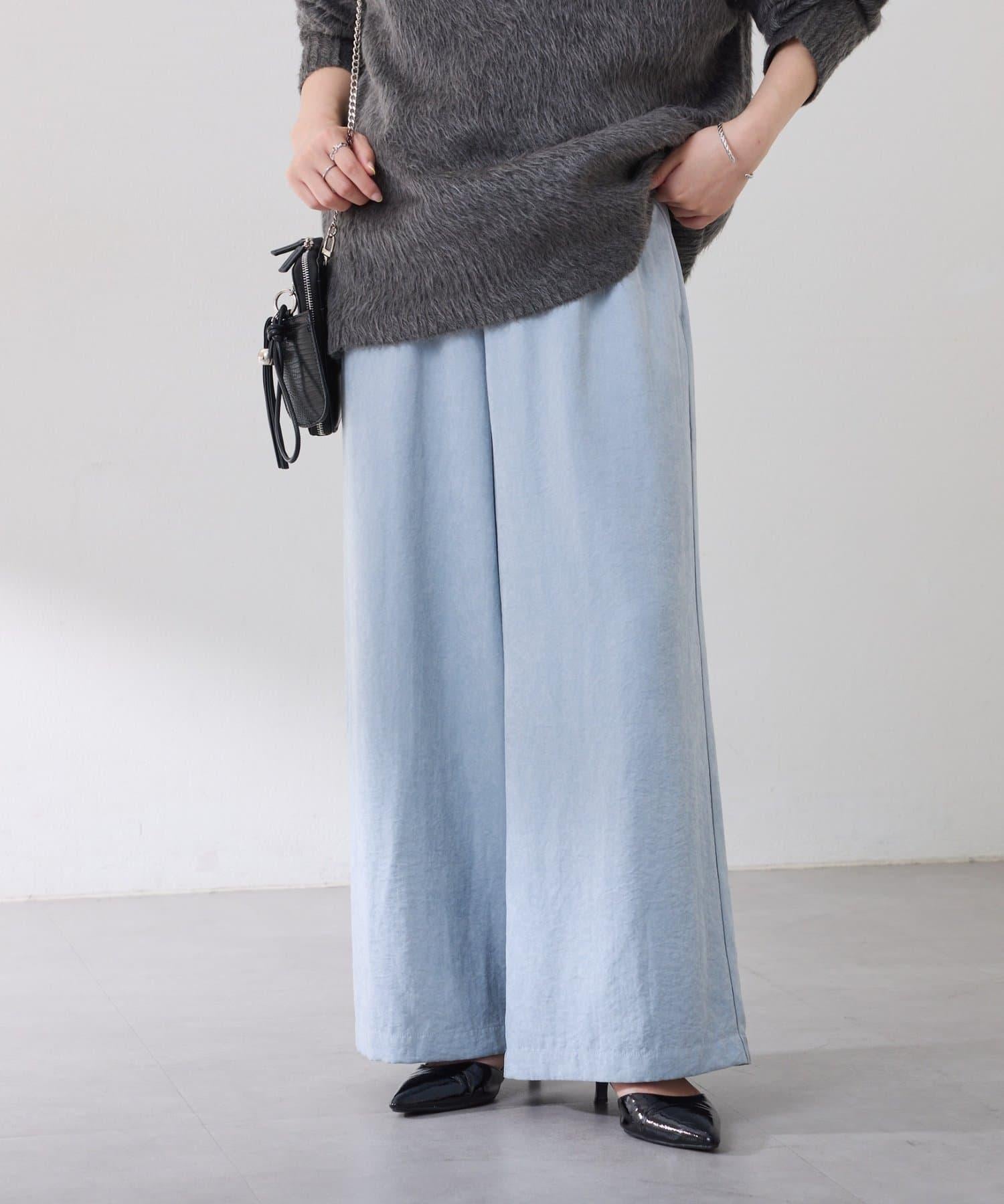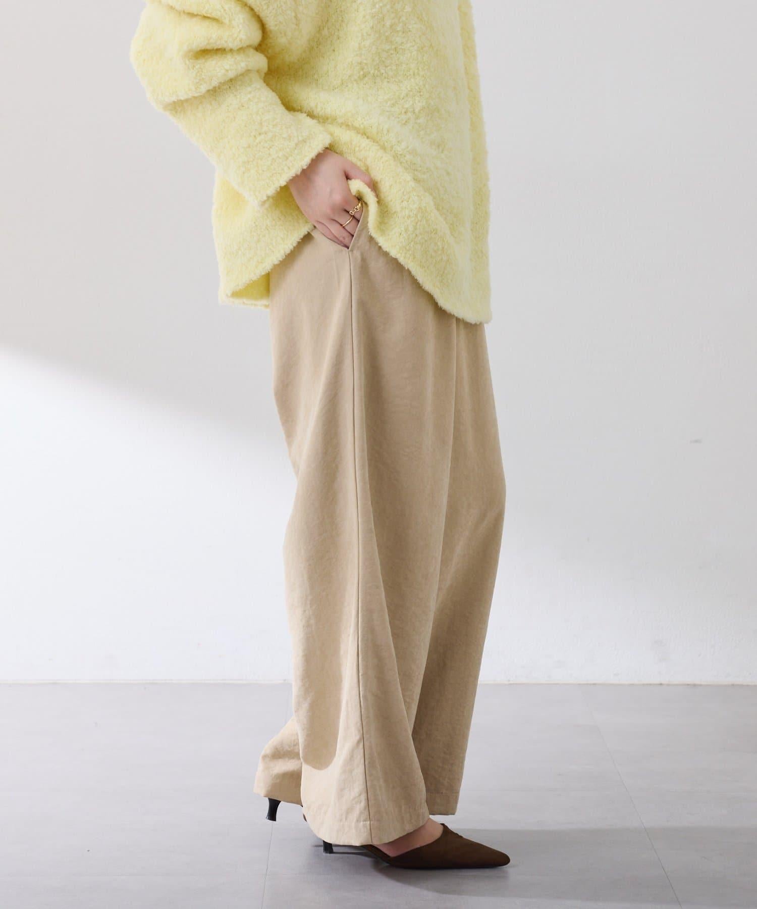 該款長褲款式輕鬆,桃紅色微微凸起的啞光質地給人以沉穩的印象。