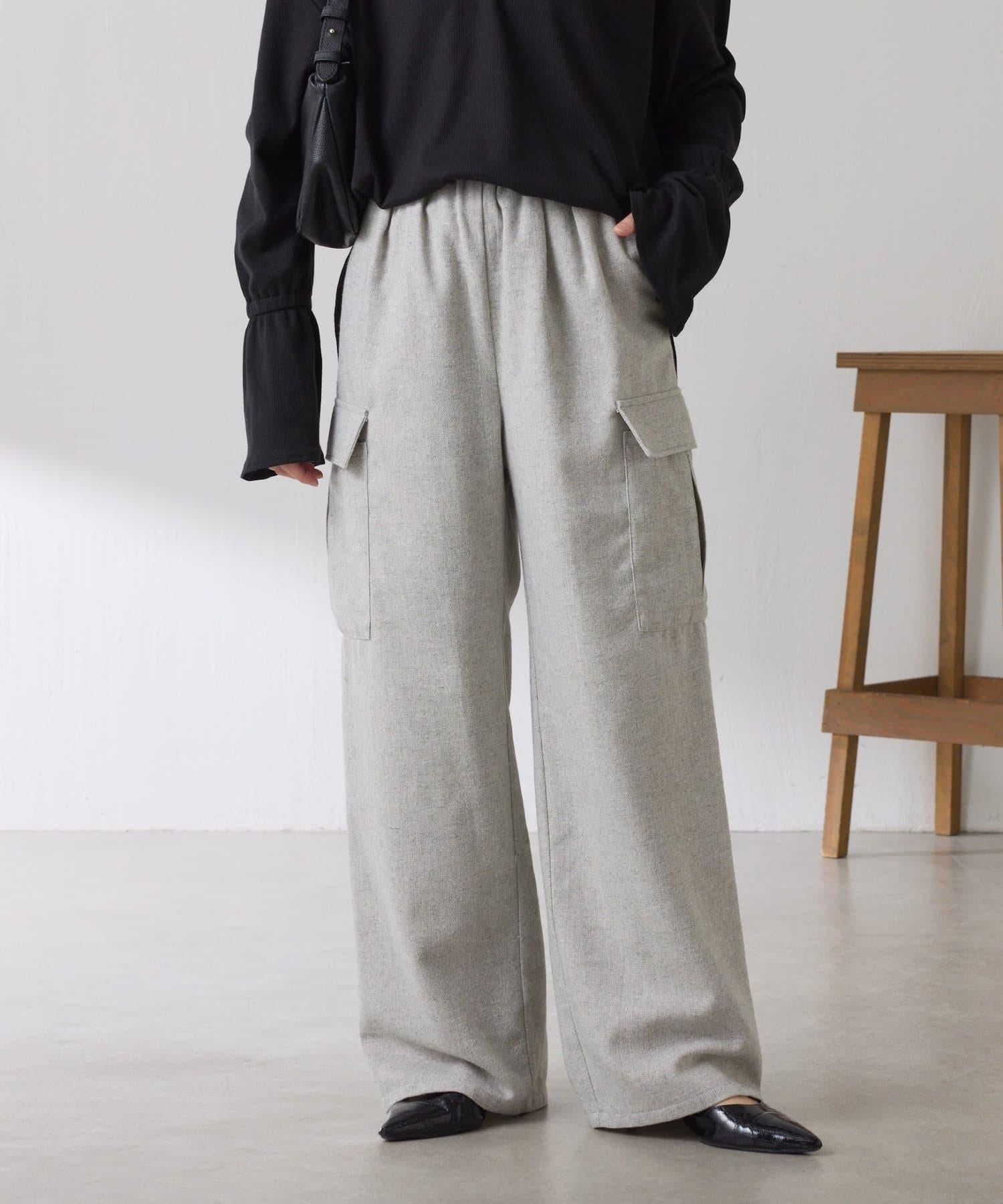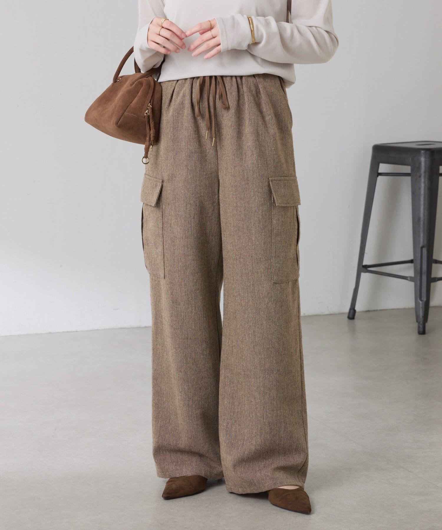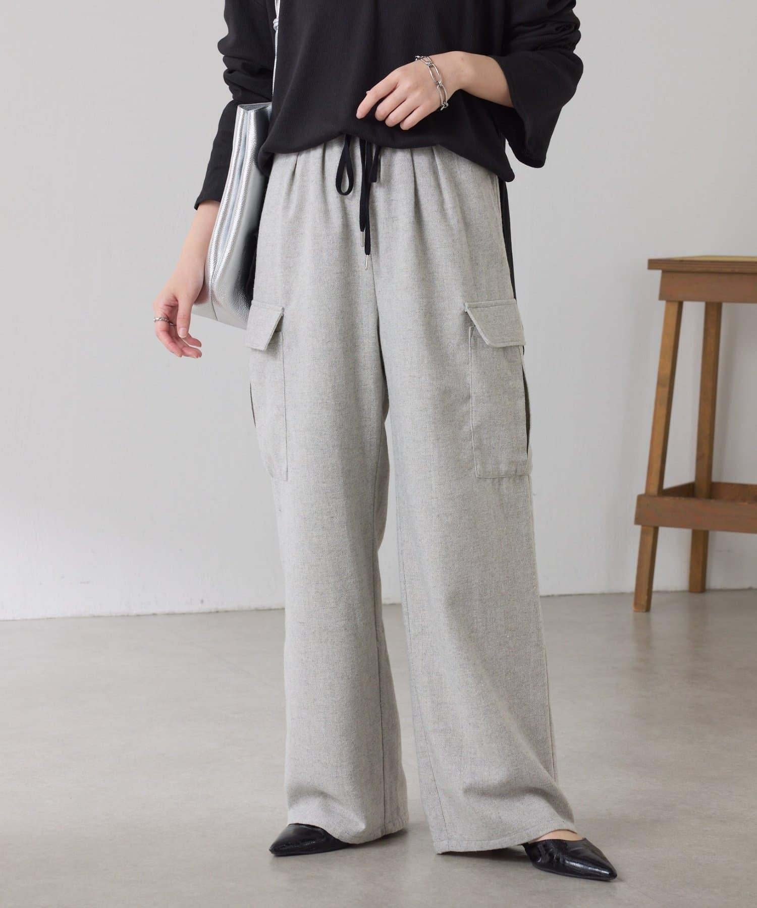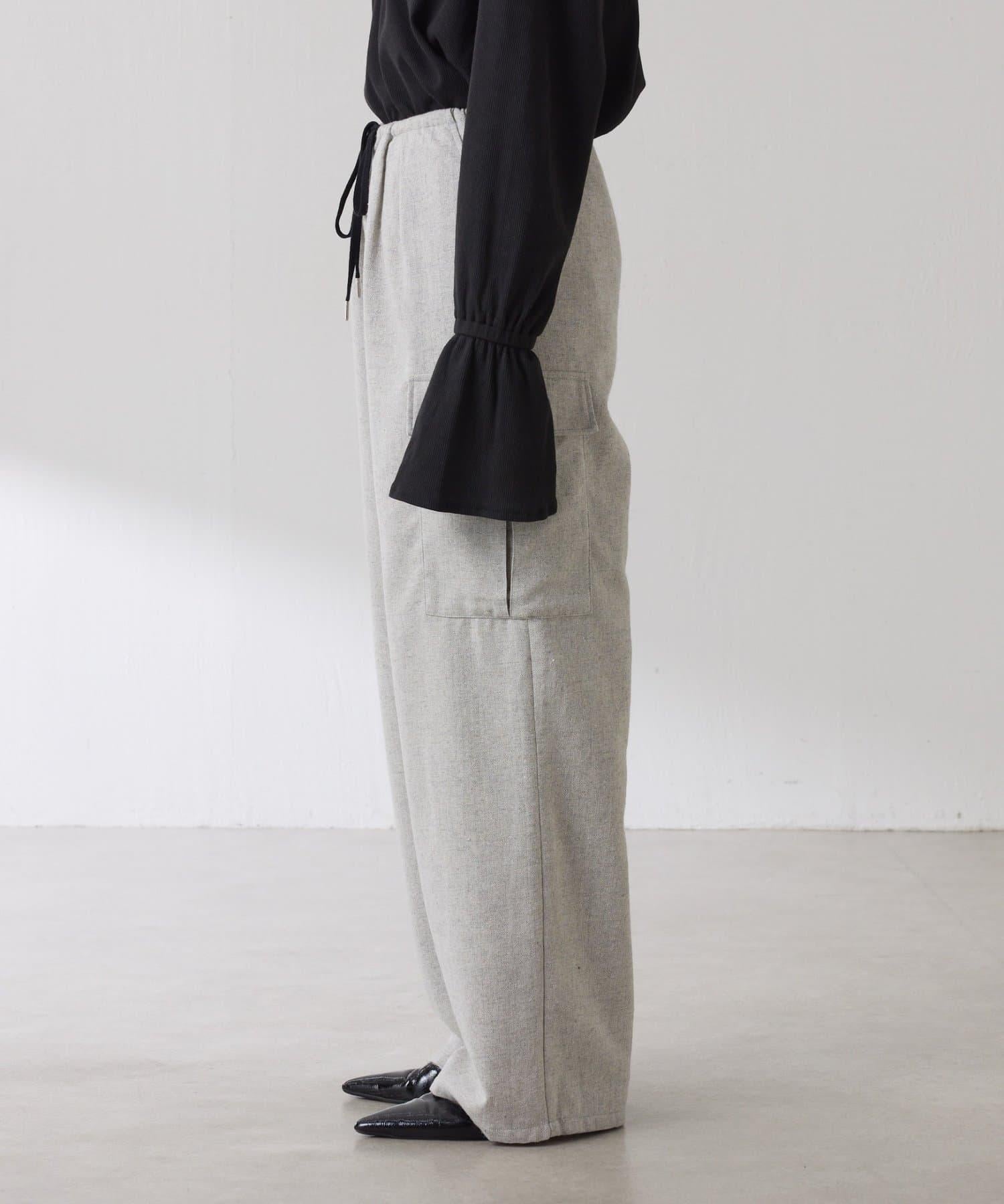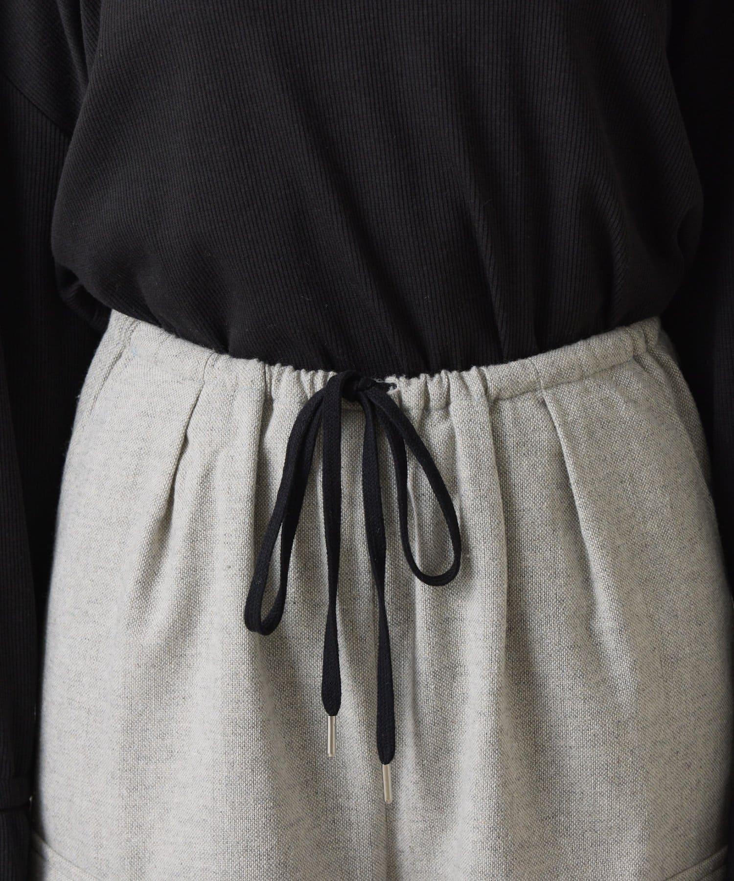 這款簡便褲子採用暖霓綸面料,帶有紗結。