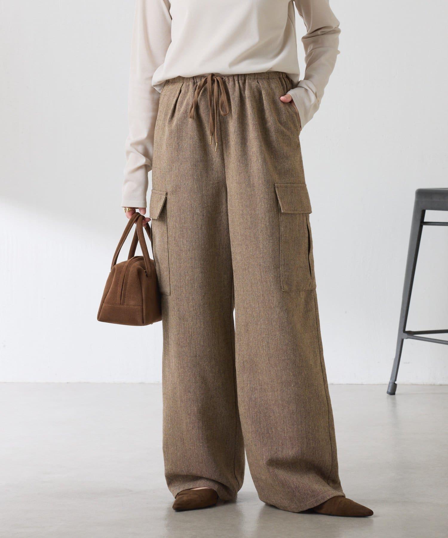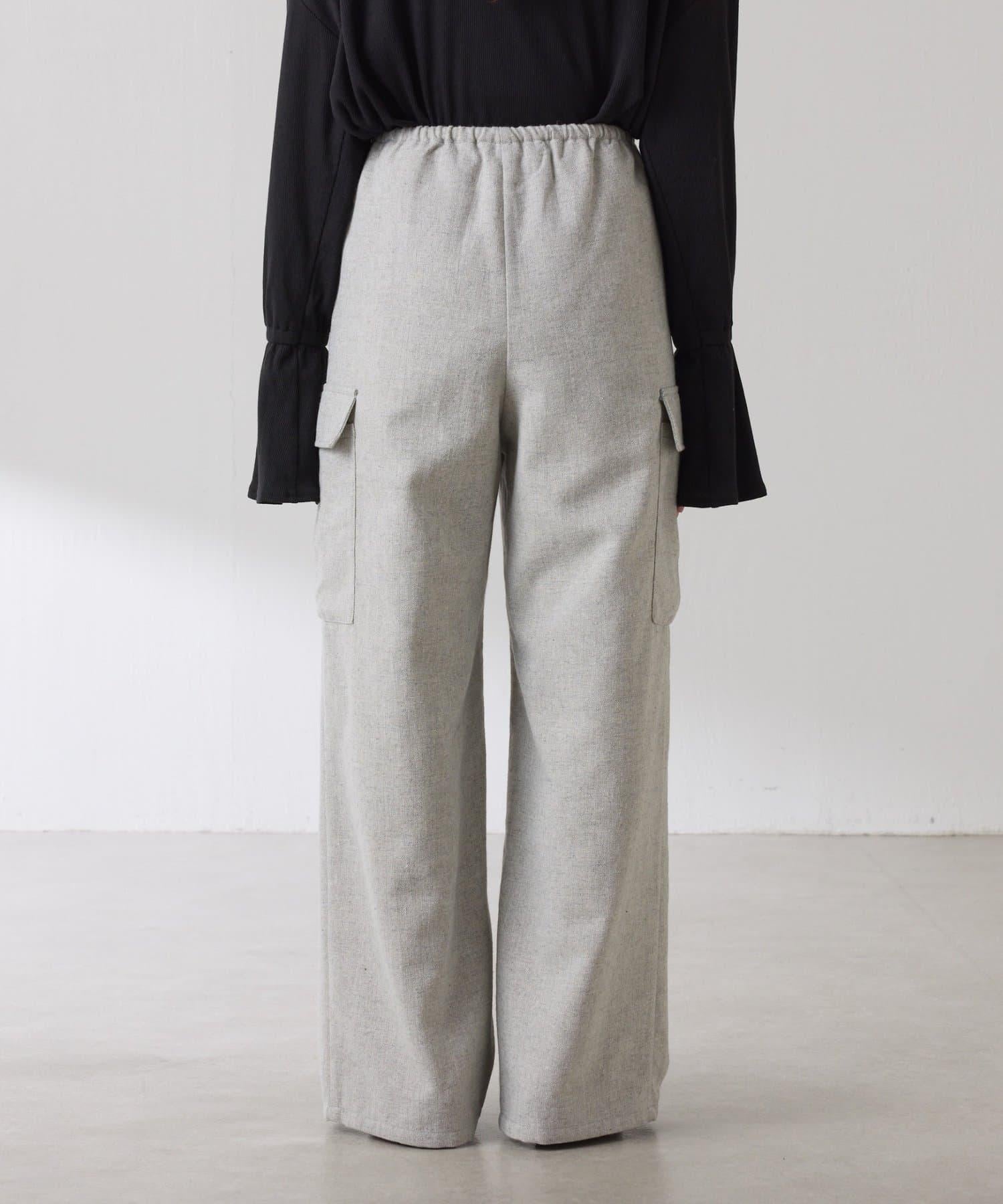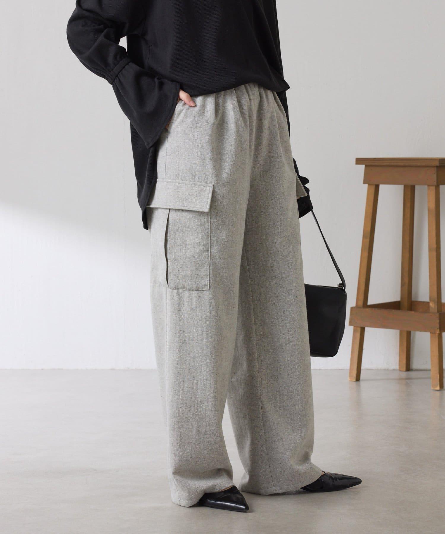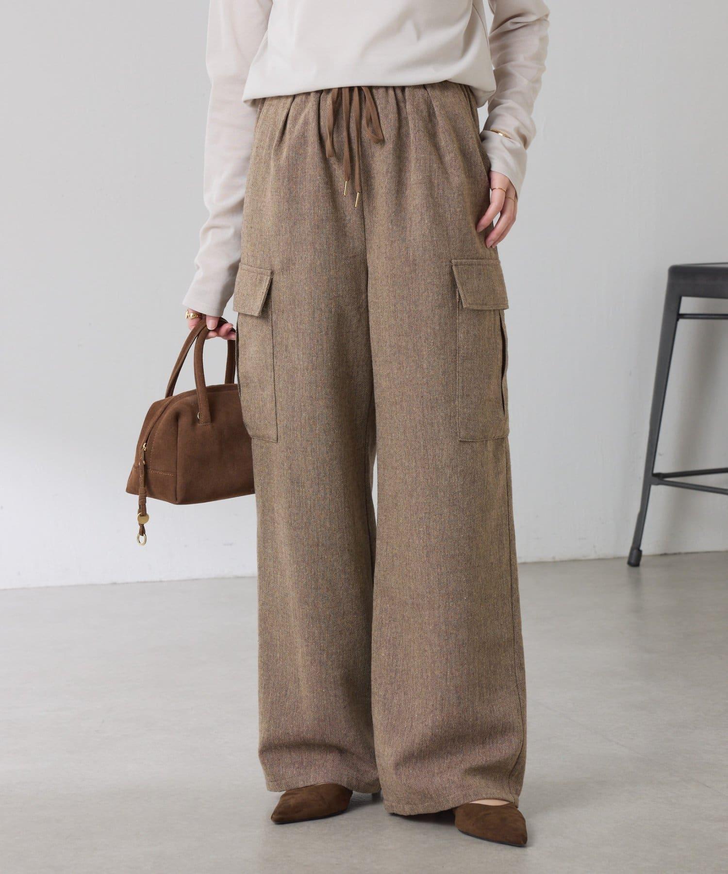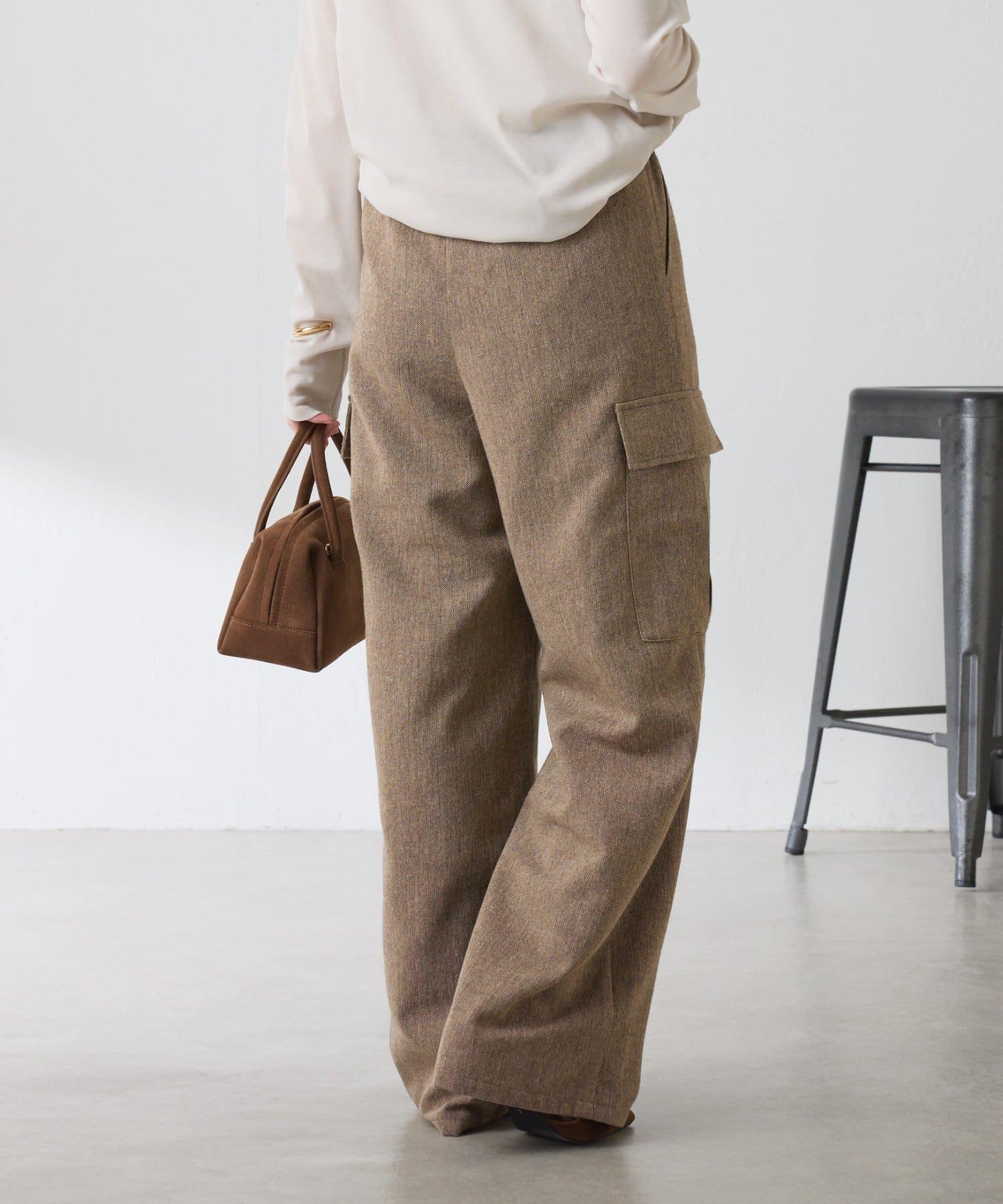 這款簡便褲子採用暖霓綸面料,帶有紗結。
