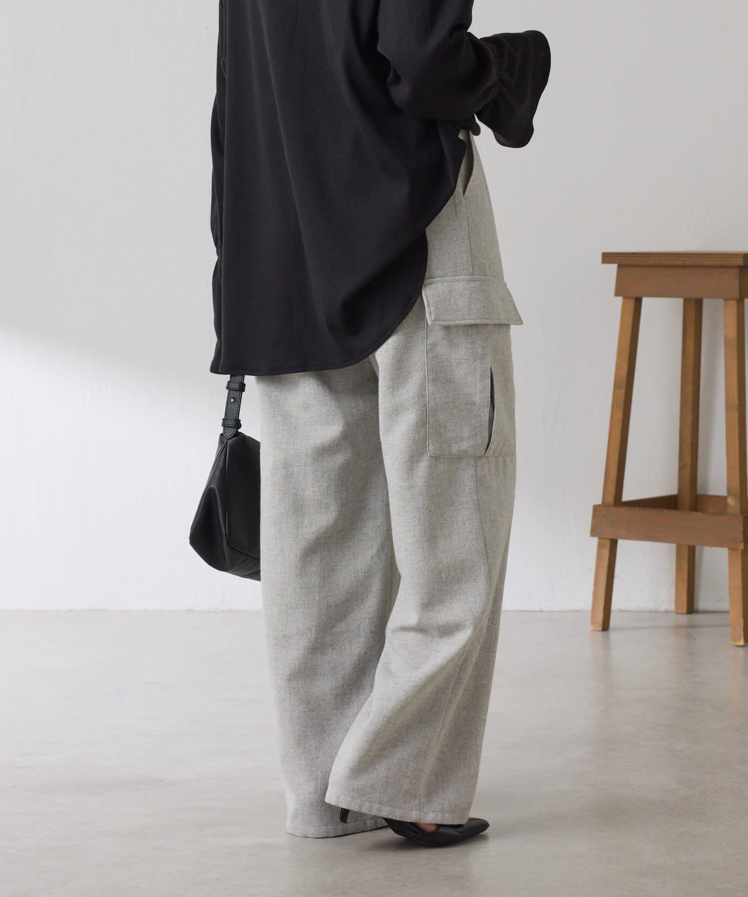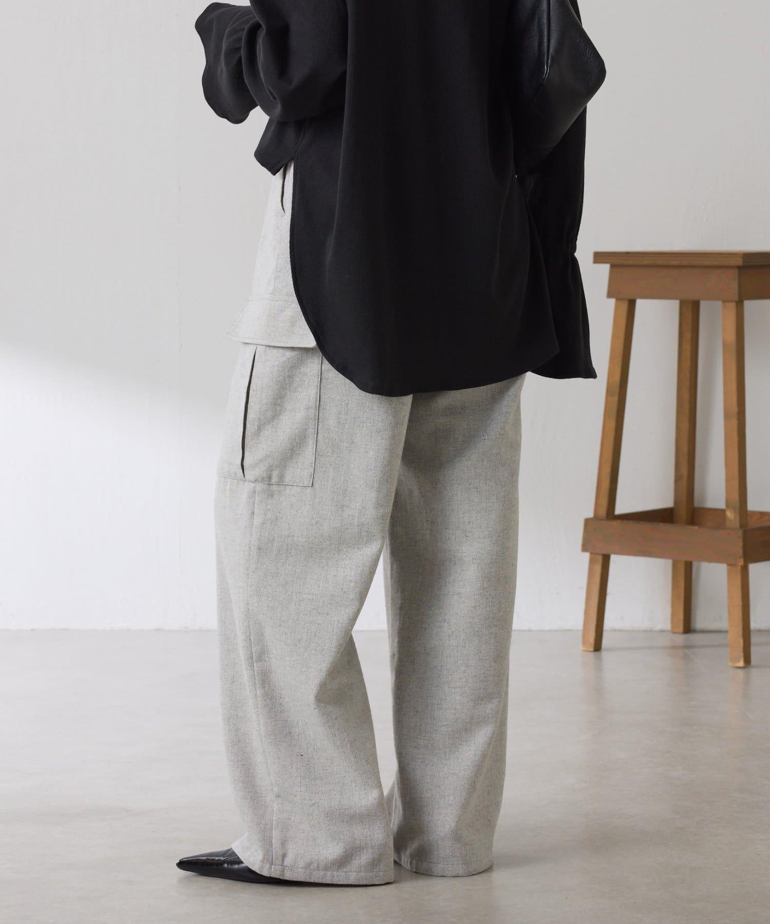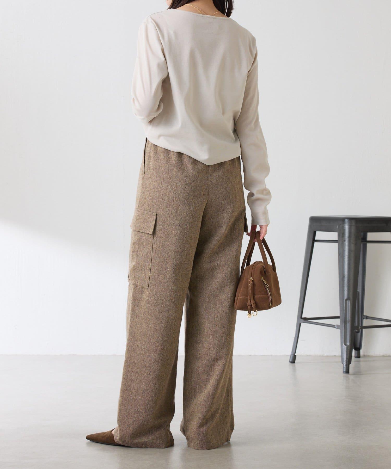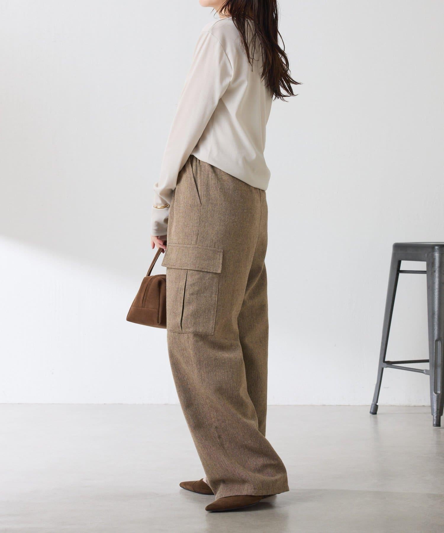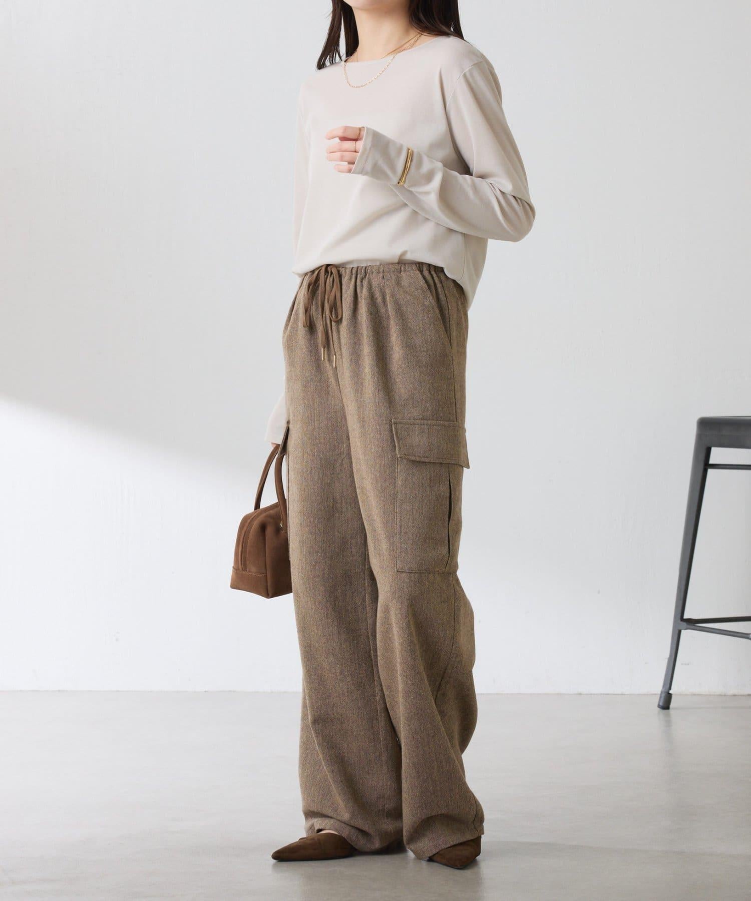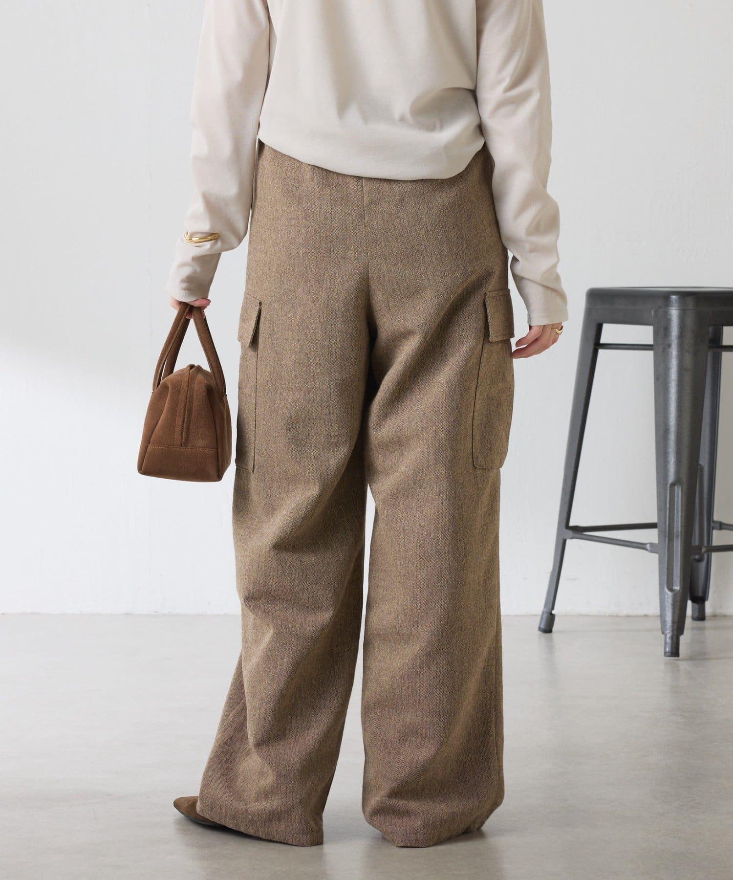 這款簡便褲子採用暖霓綸面料,帶有紗結。